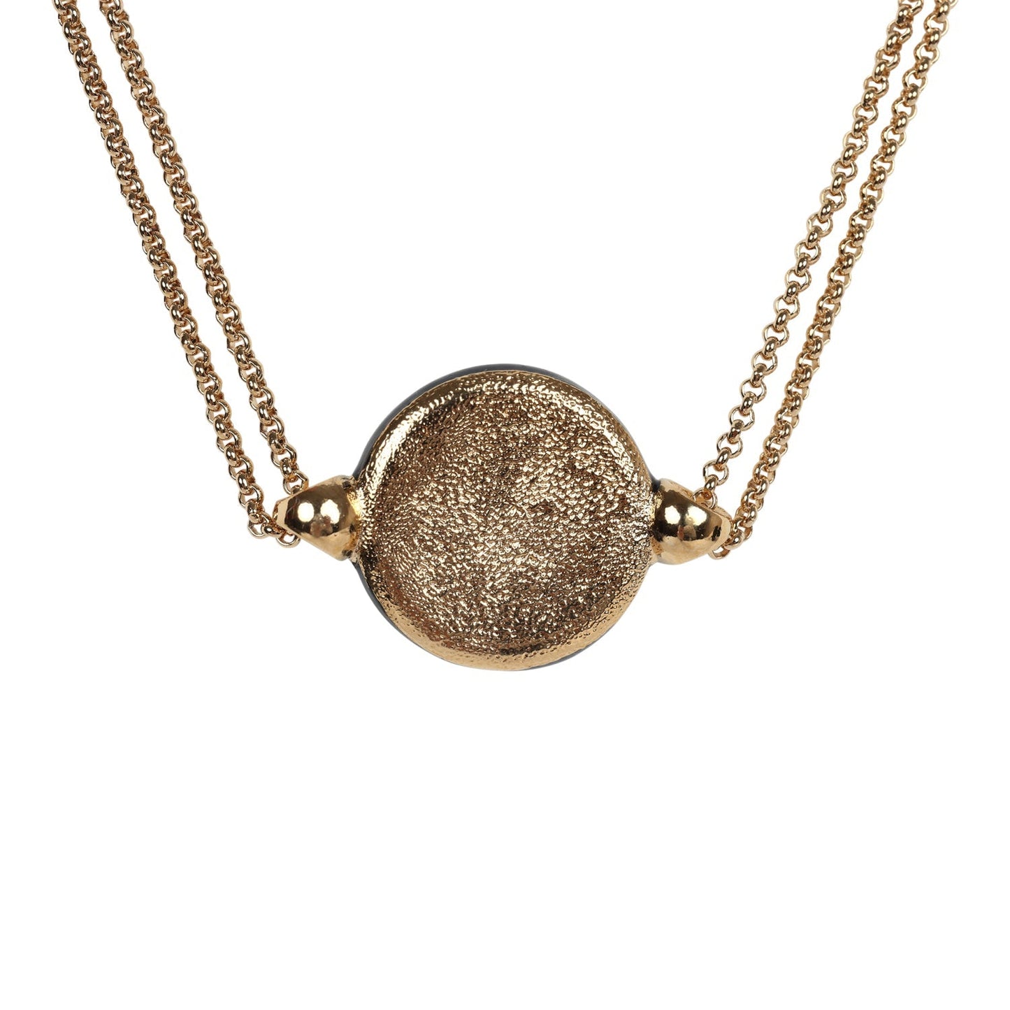 This Chanel round CC enamel pendant choker necklace with gold tone metal hardware features a small round black and white enamel and gold tone pendant and an adjustable doubled chainlink necklace and a lobster clasp closure.