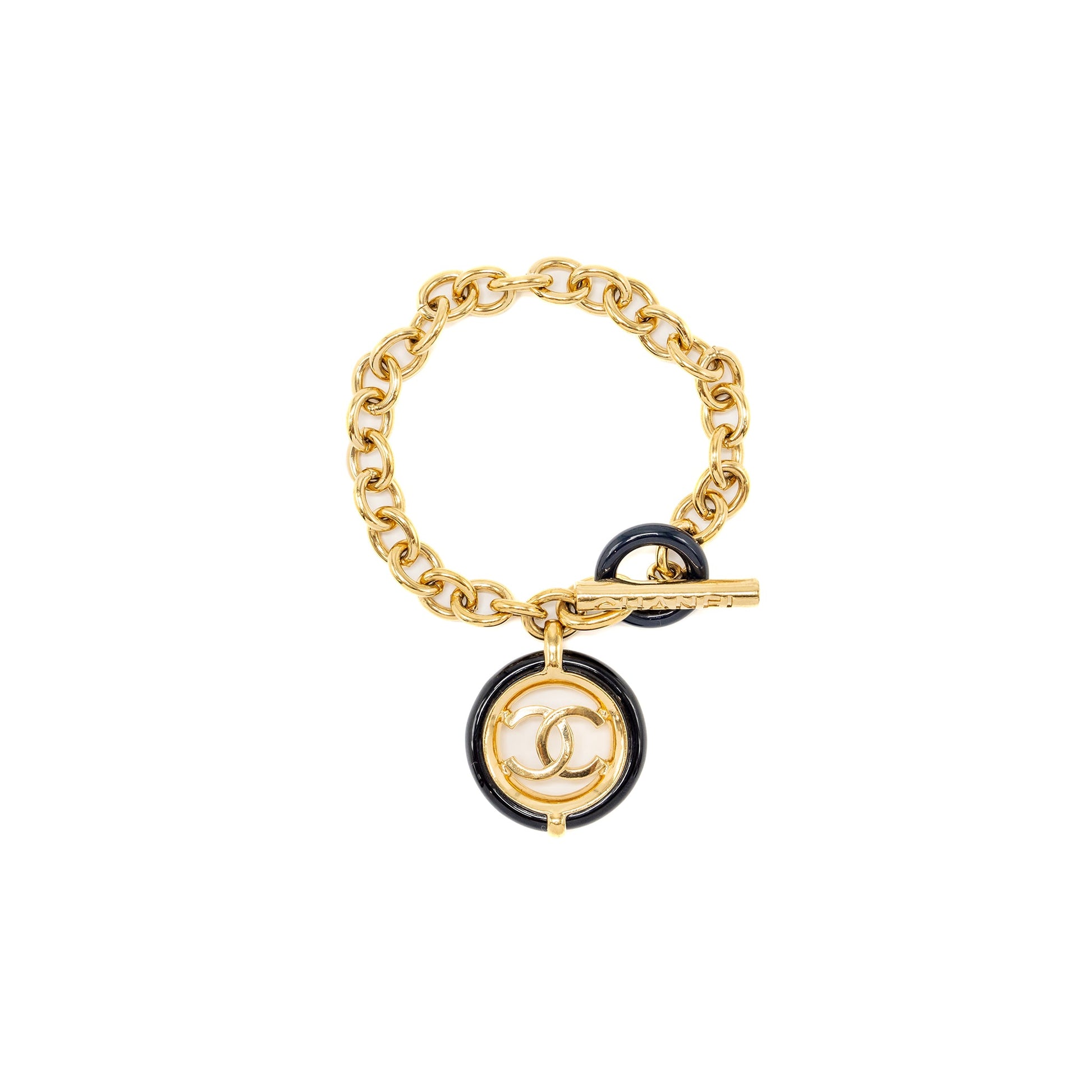 Chanel Round CC Logo Dropped Bracelet Black/Gold Tone