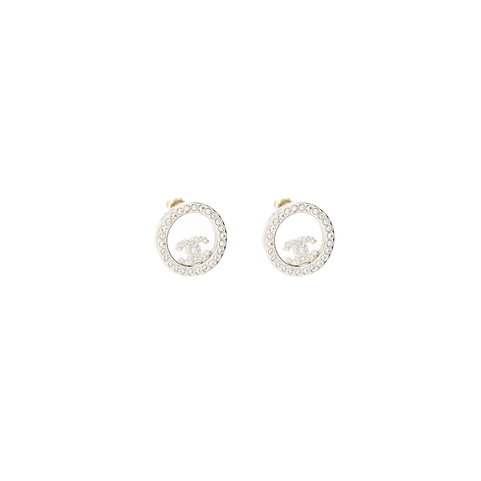 Chanel Round CC Logo Earrings Crystal