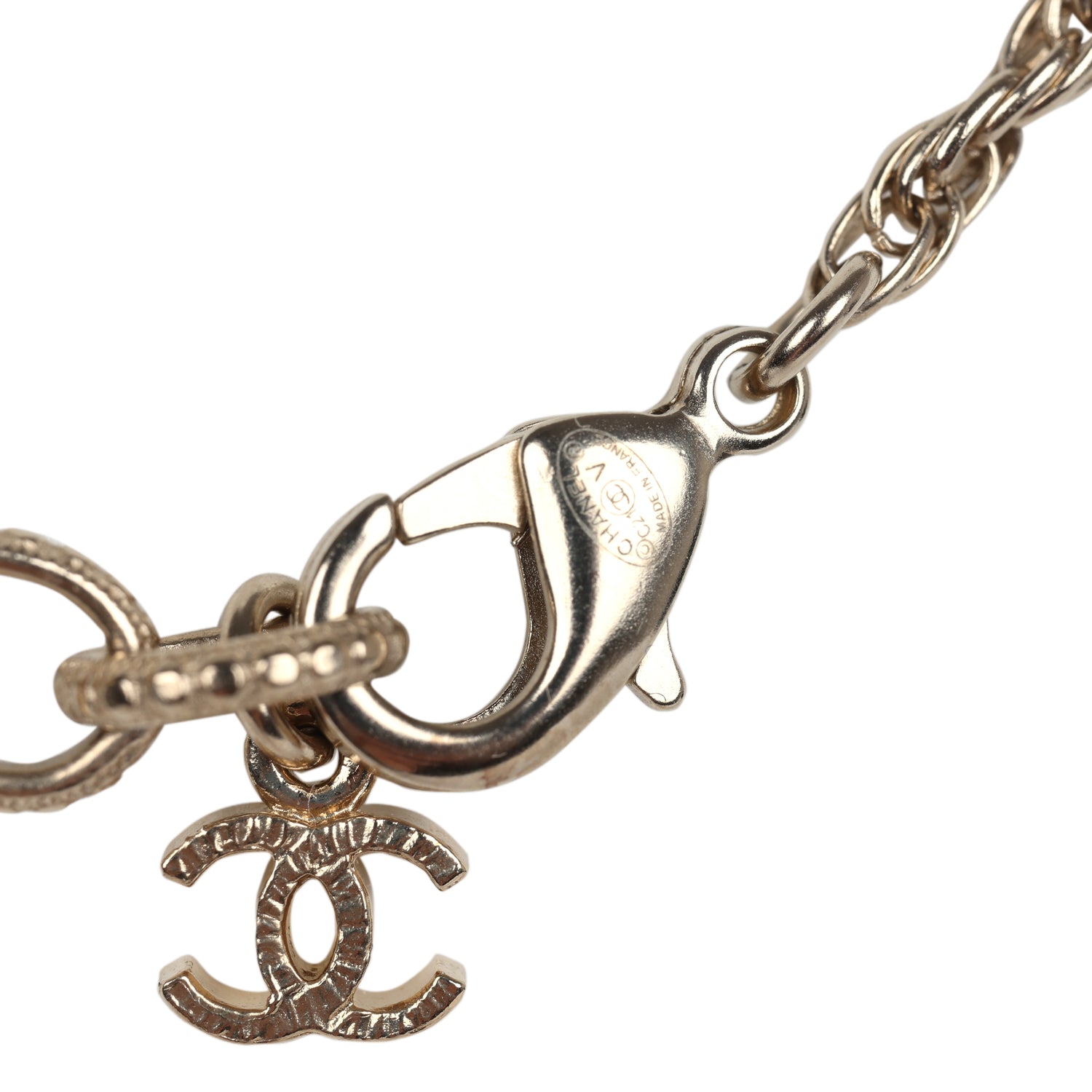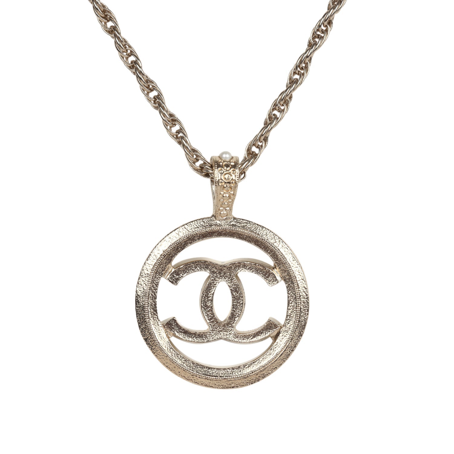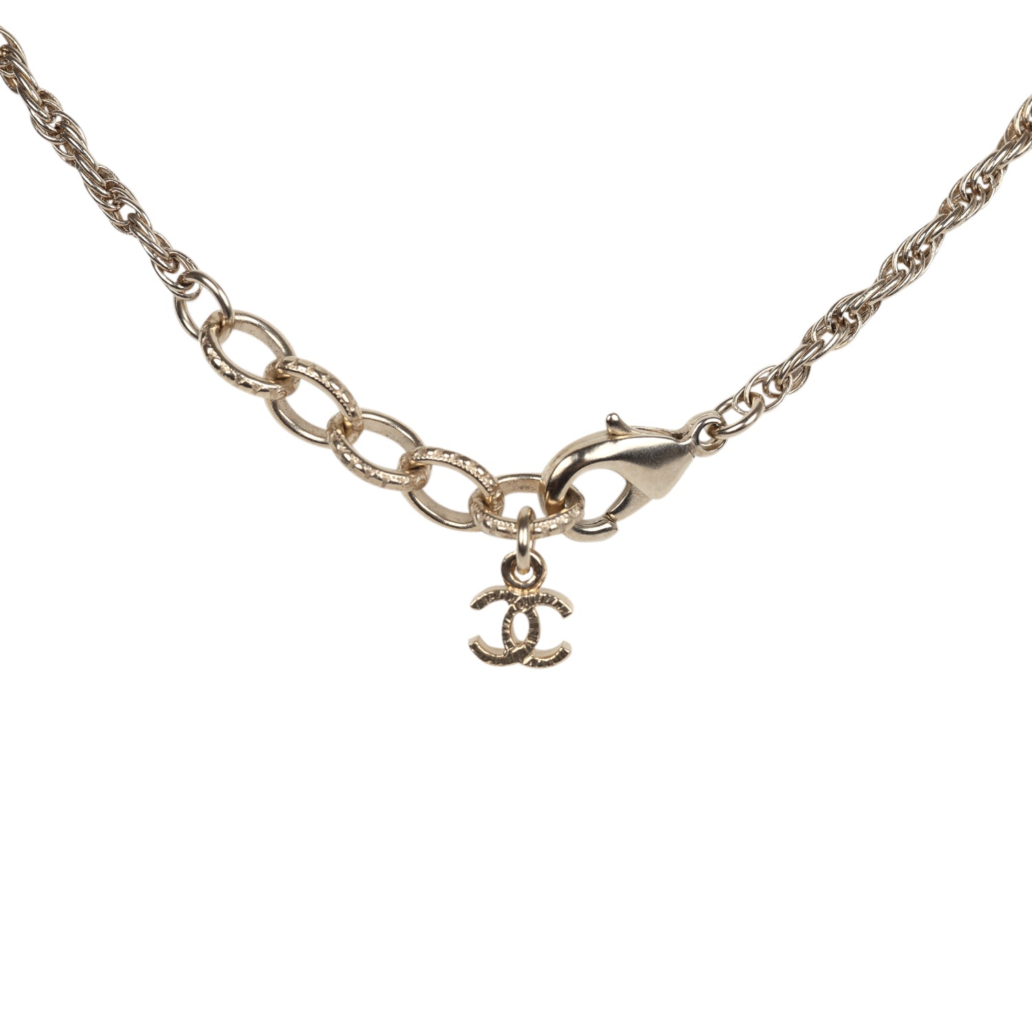 Chanel Round CC Pearl Pendant Necklace Light Gold Hardware