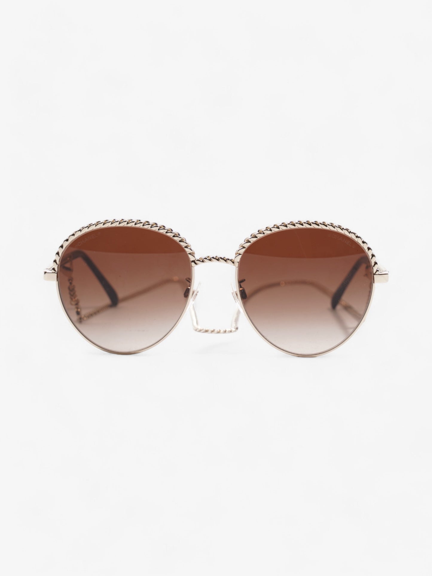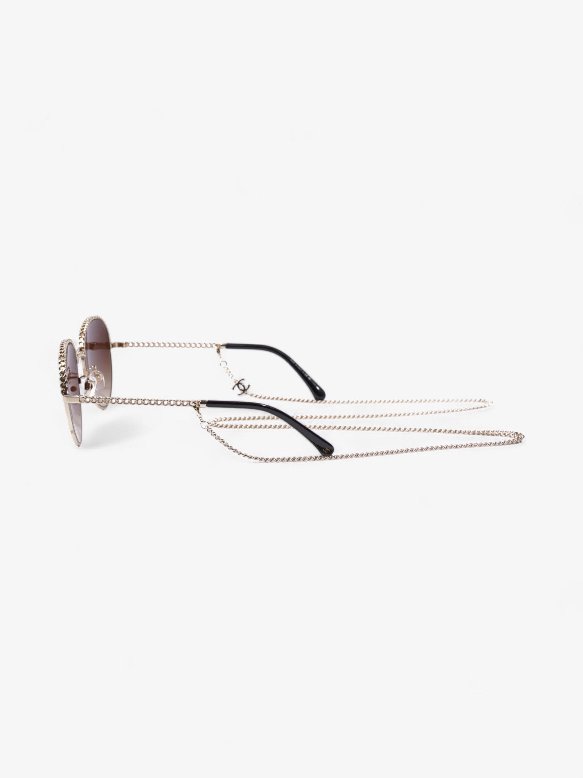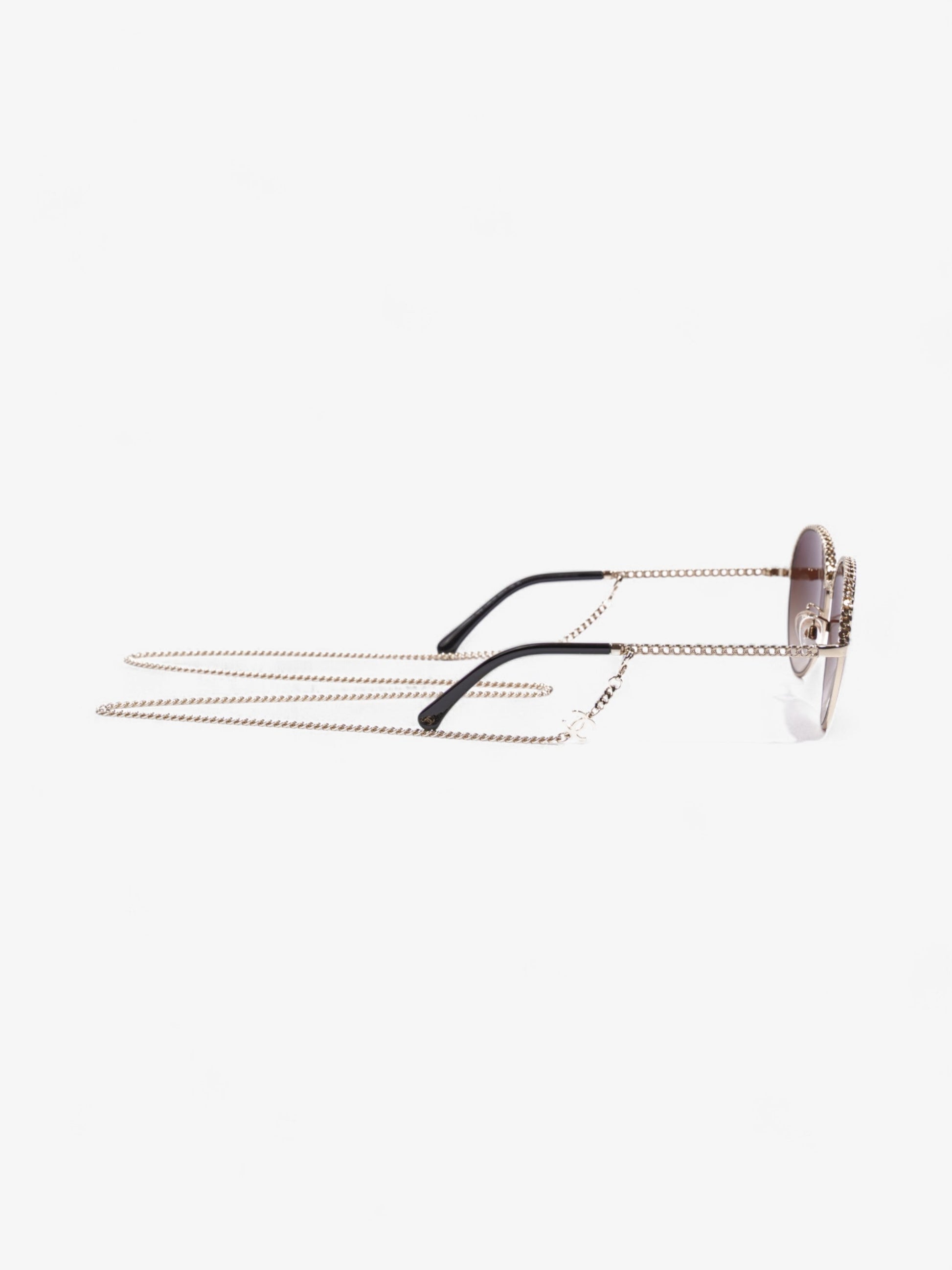Chanel Round Chain Sunglasses Gold Base Metal 135mm