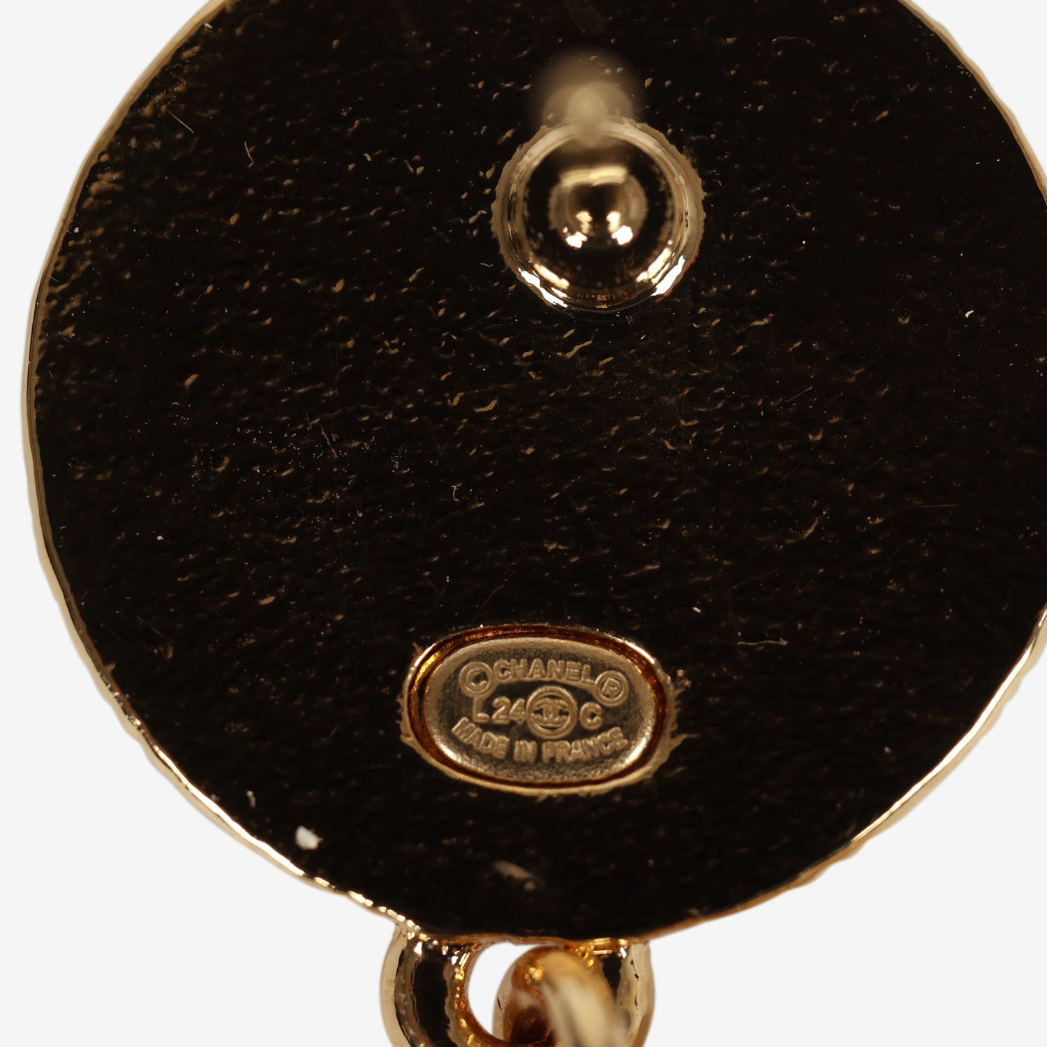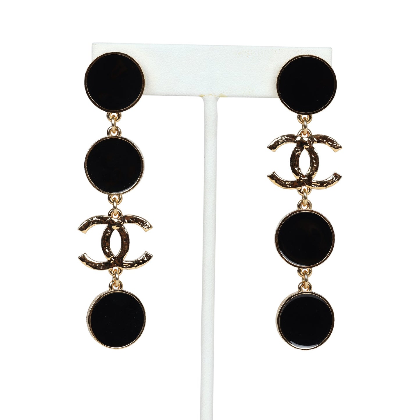 Chanel Round Dangle CC Earrings Black Enamel & Gold Metal
