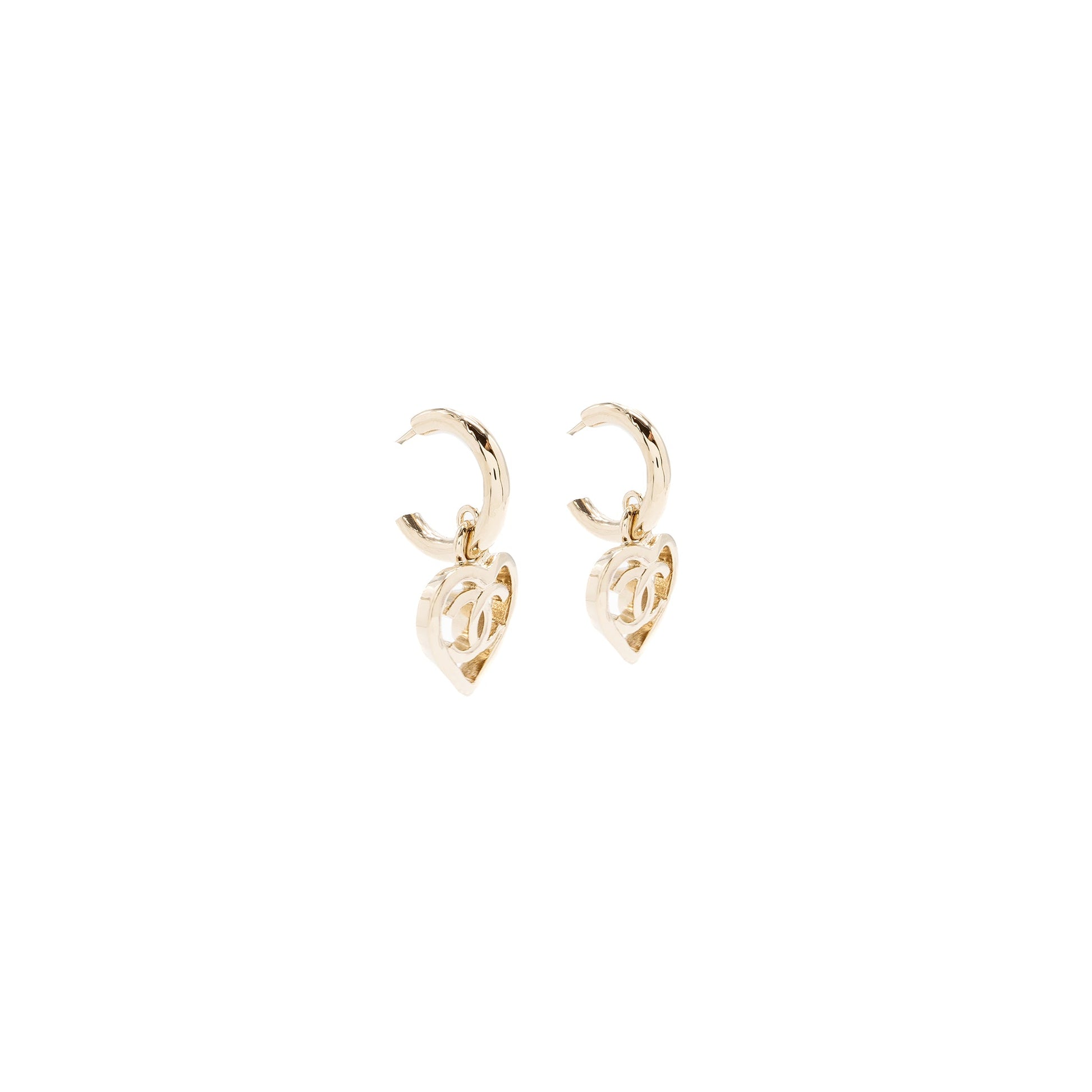 Chanel Round Heart Shape Dropped Earring Light Gold Tone
