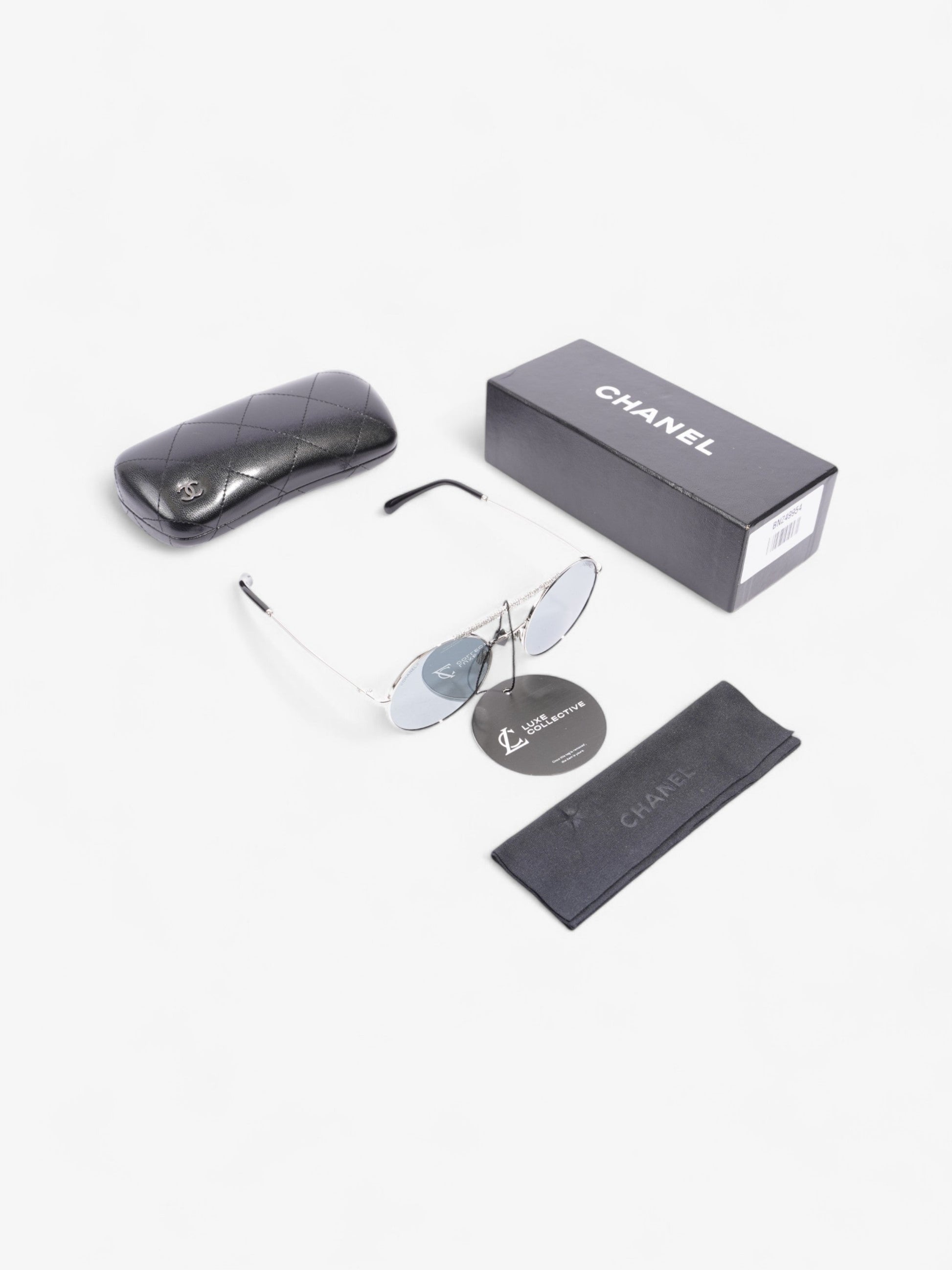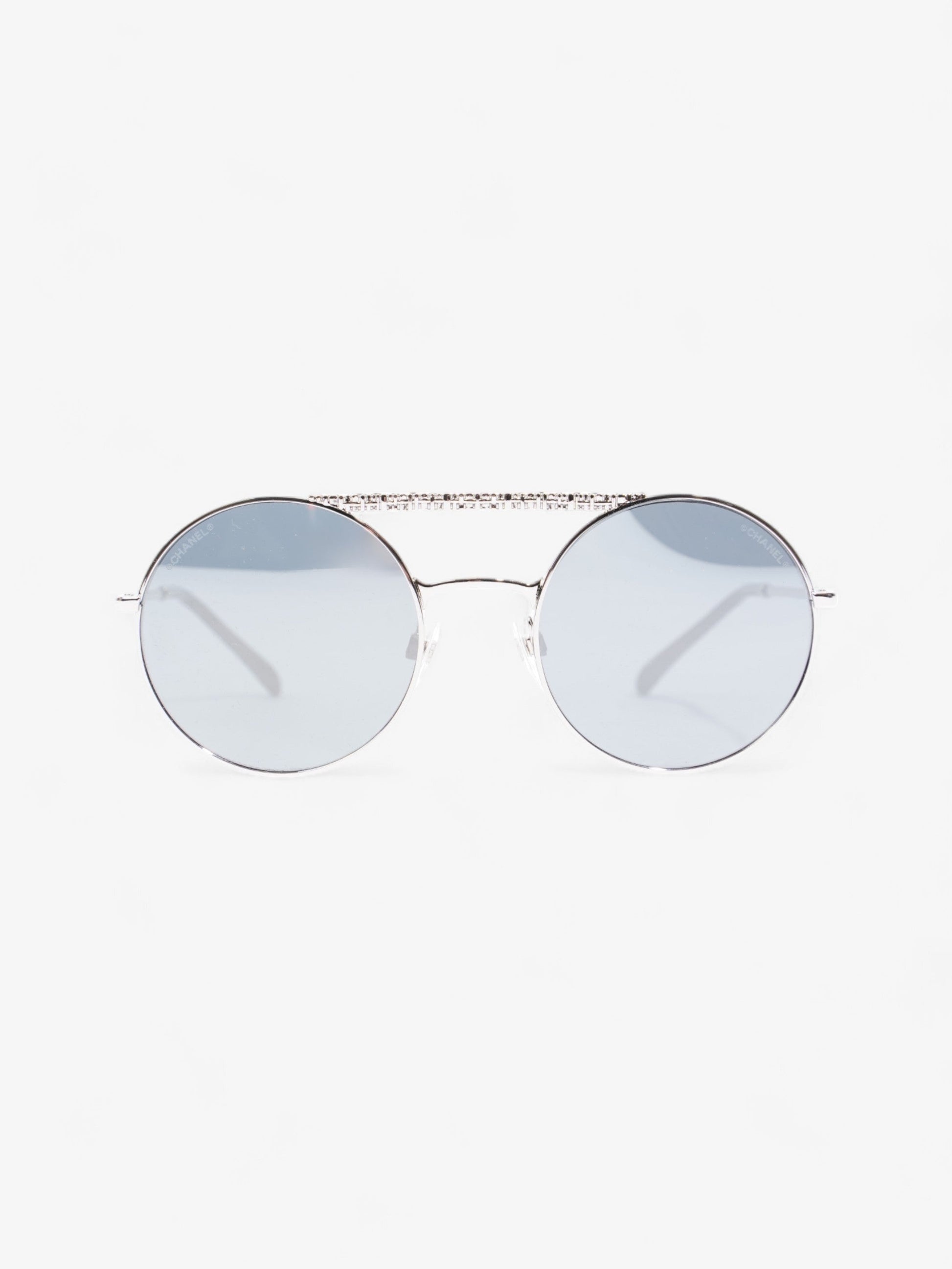 Chanel Round Sunglasses Silver Acetate 140mm