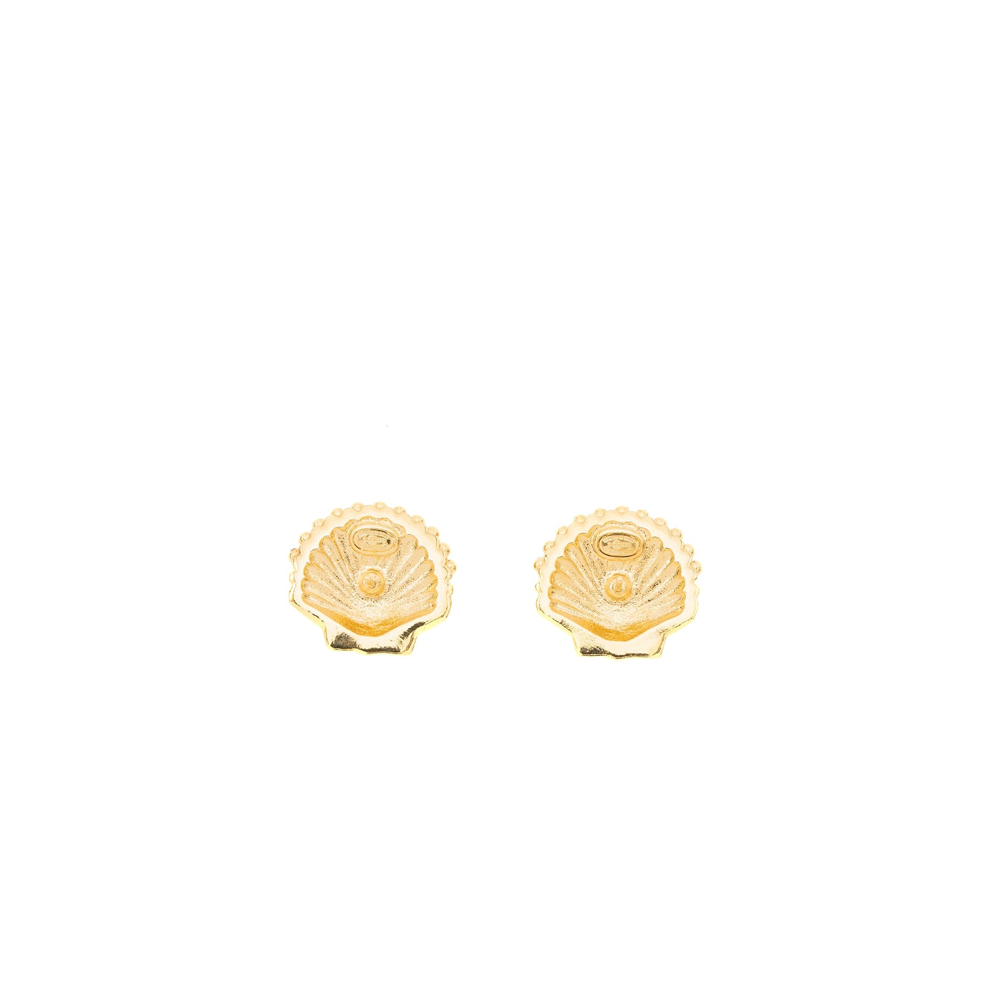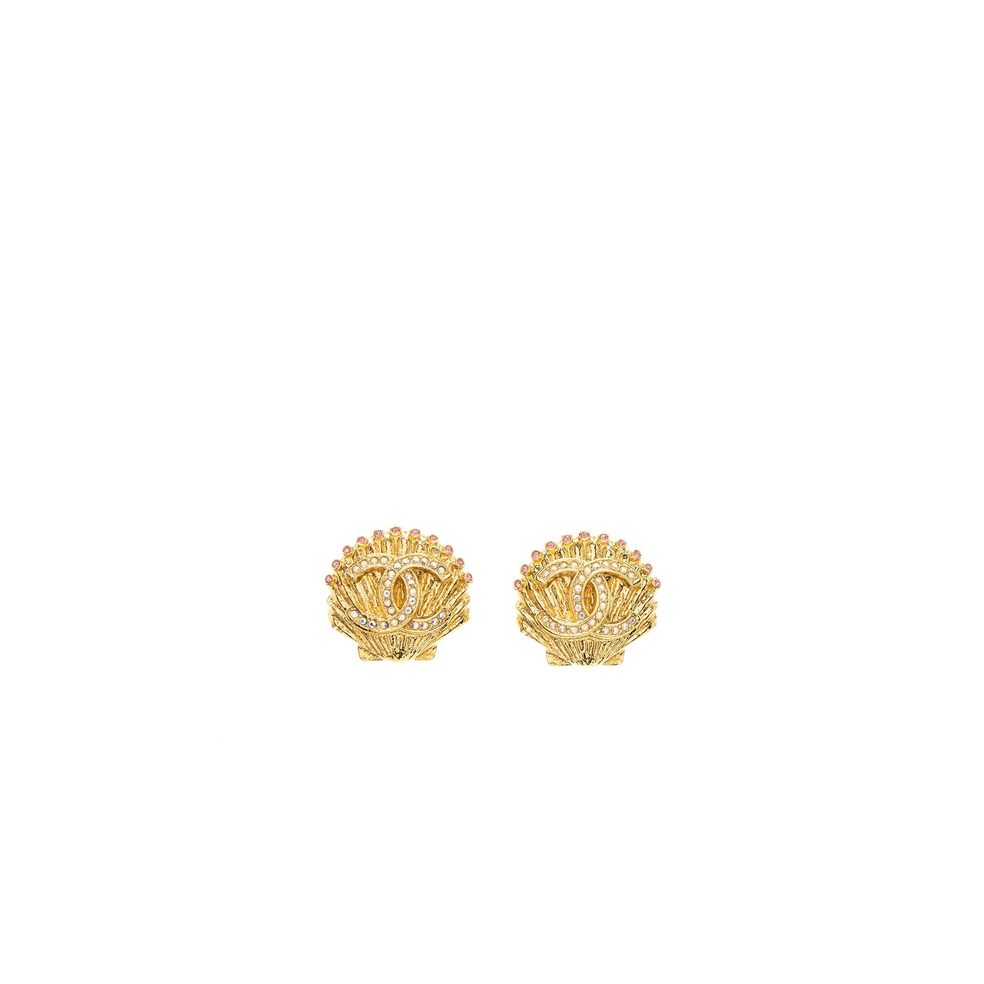 Chanel Shell CC Logo Earrings Crystal Gold Tone