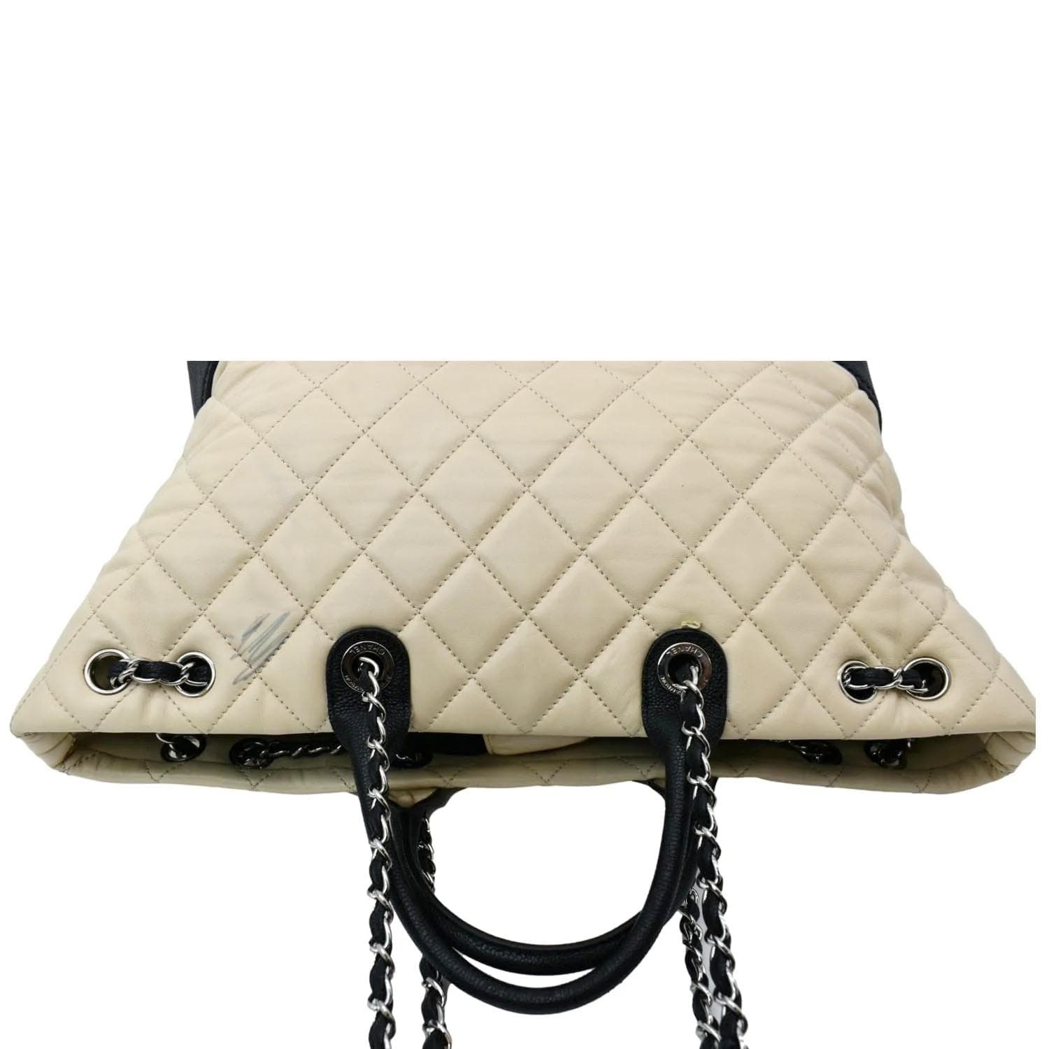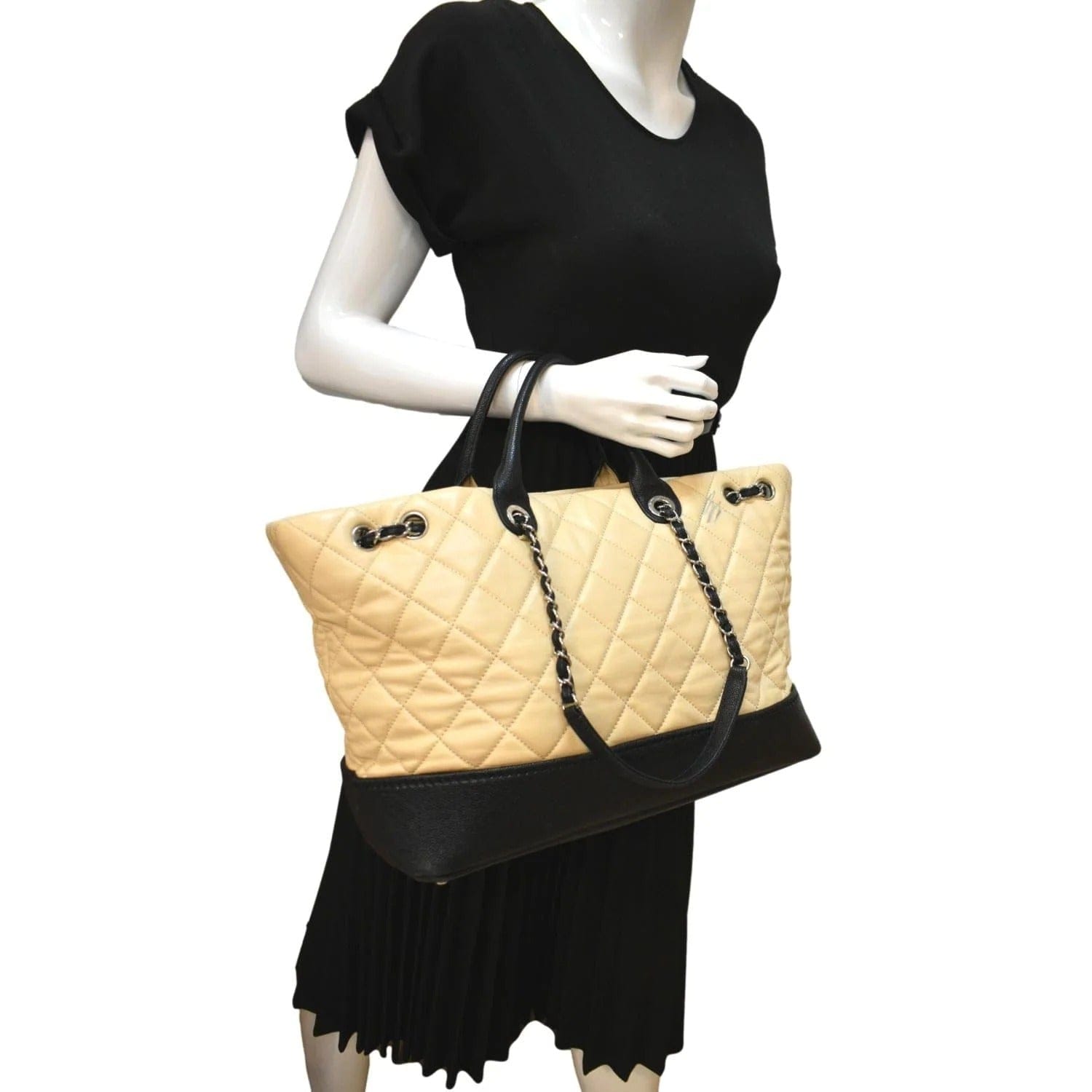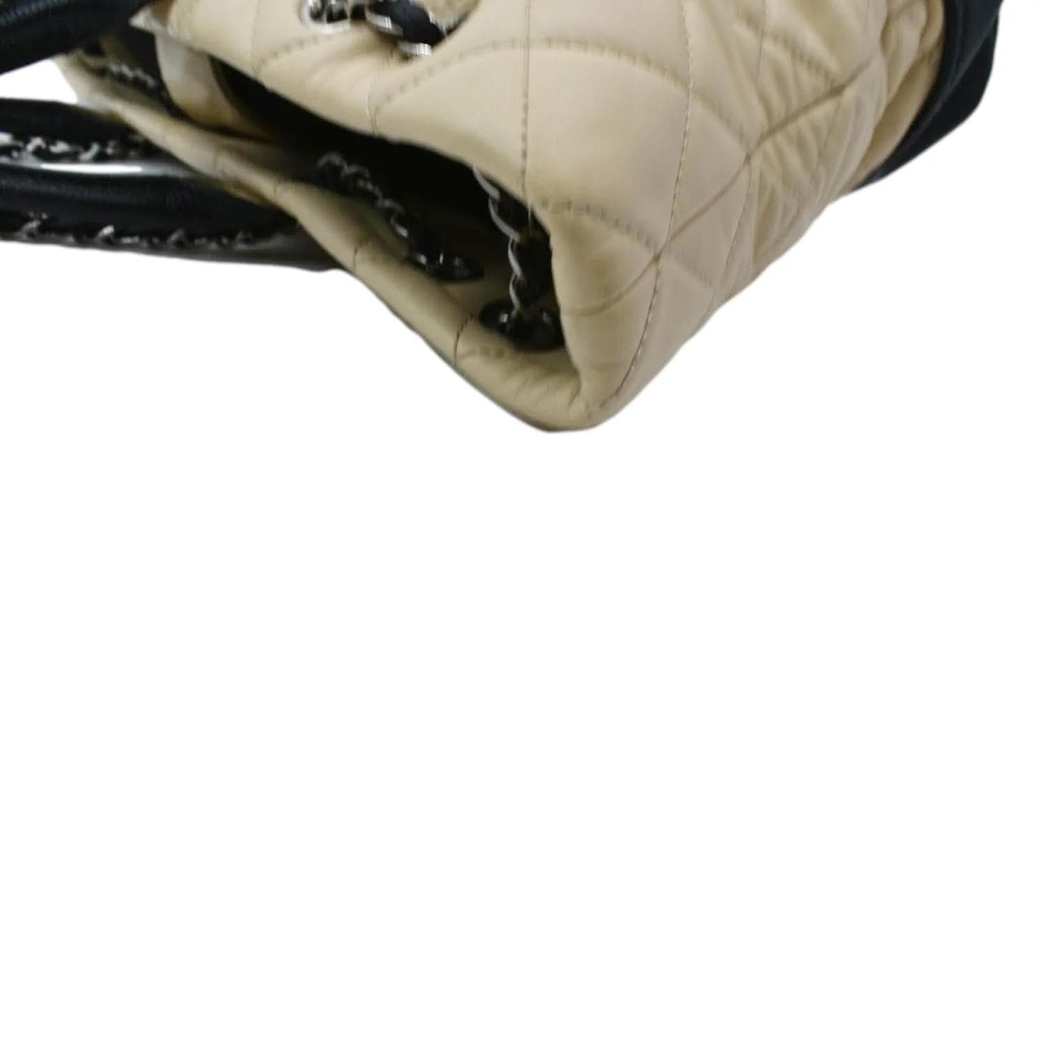 CHANEL Drawstring Large Quilted Calfskin & Caviar Shopping Tote Bag Beige