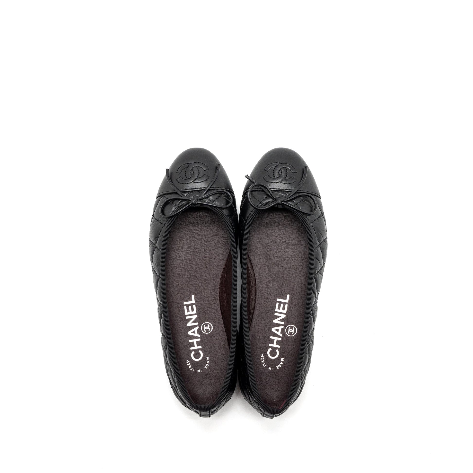 Chanel Size 34 Ballerina Quilted flat Shoes Calfskin Black