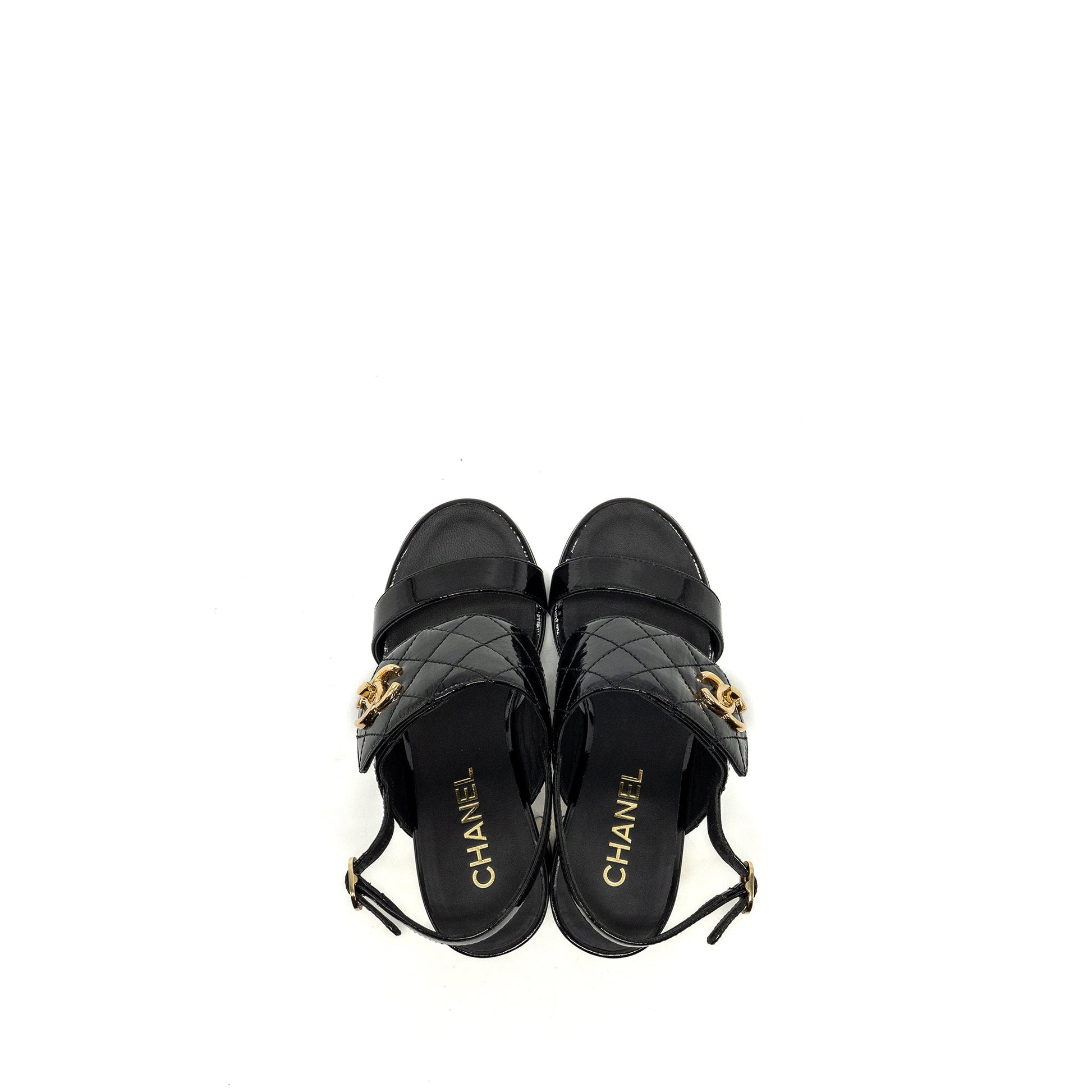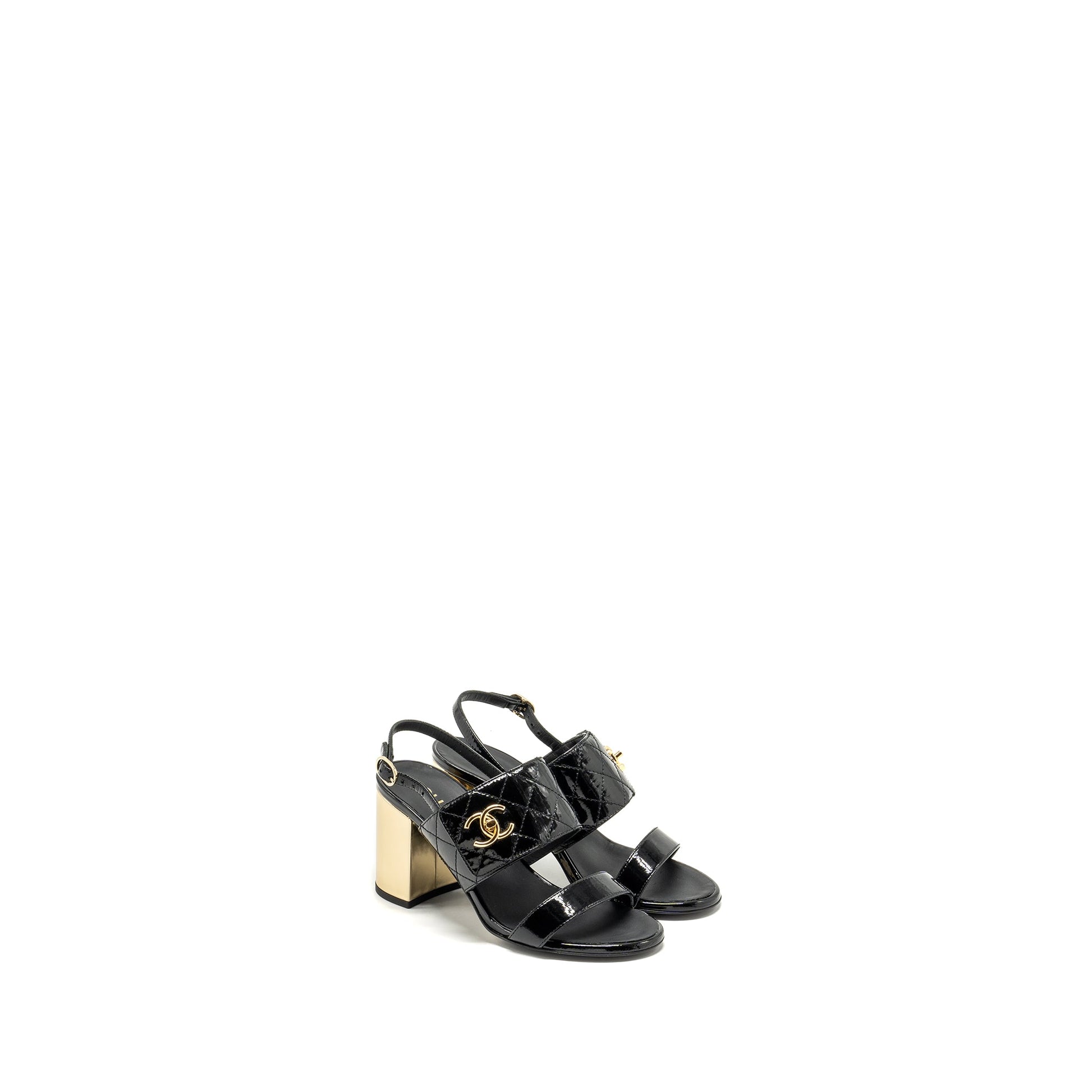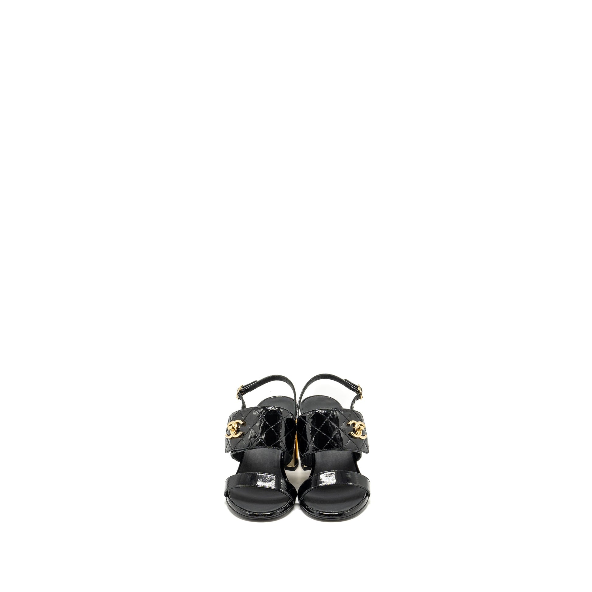 Chanel Size 35 23P CC Logo Sandals Patent Goatskin Black