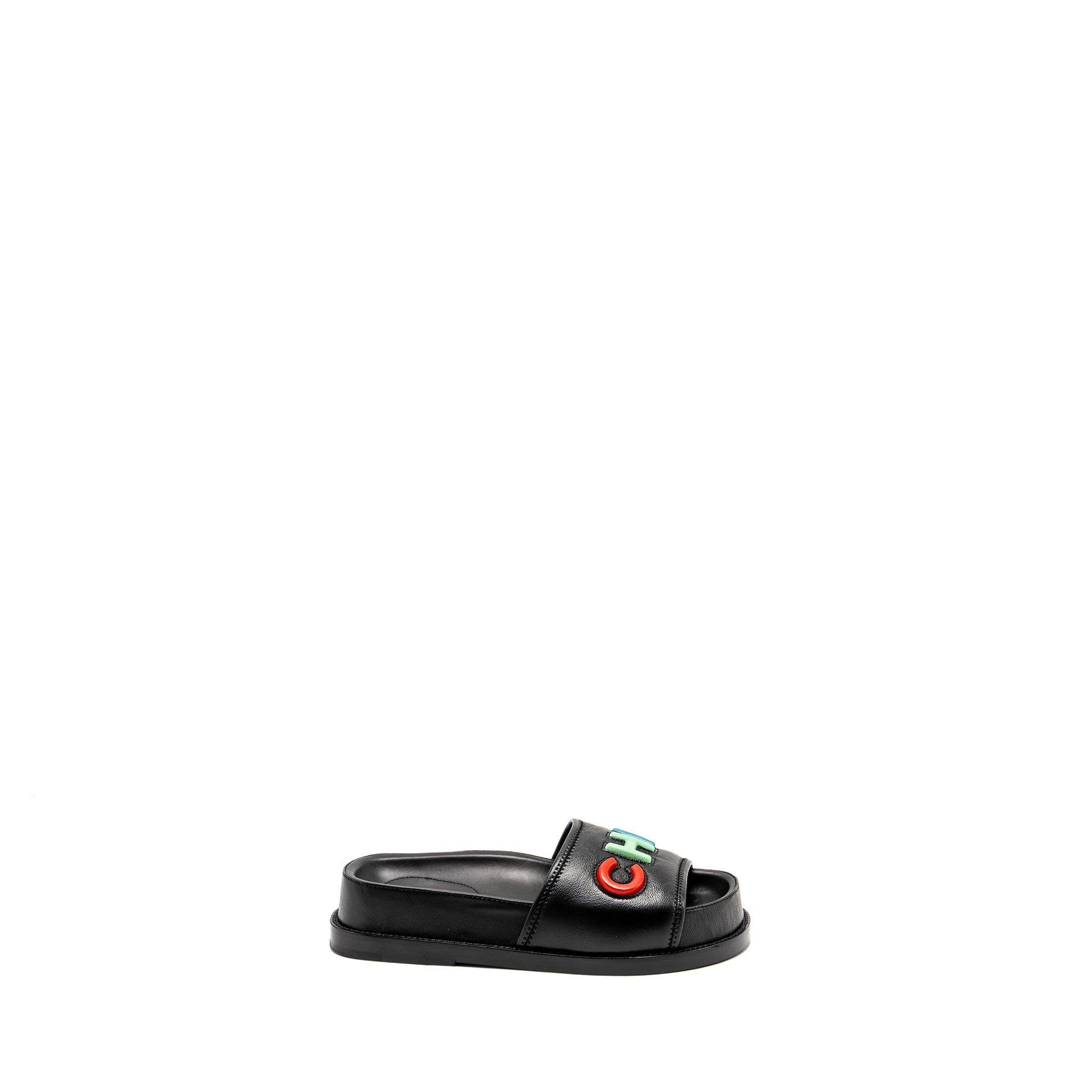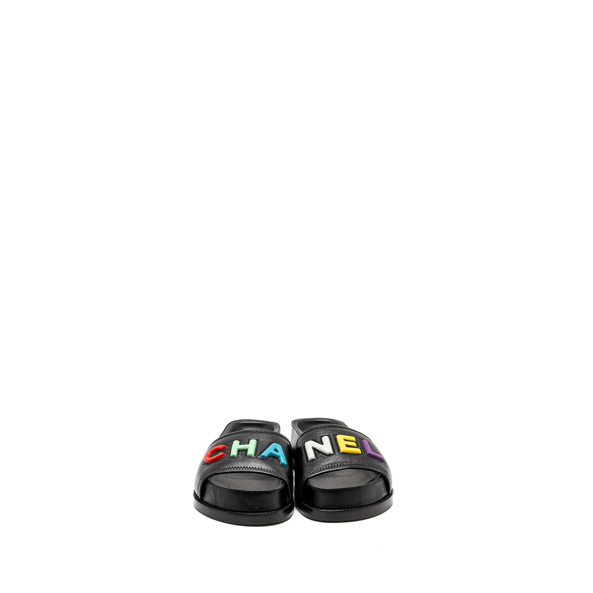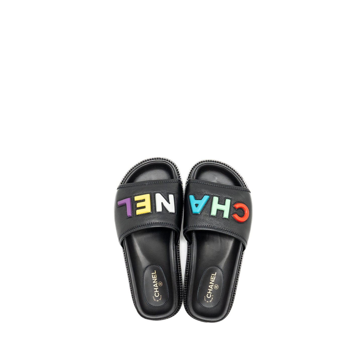 Chanel Size 35 Logo Letters Sandals/Mules Lambskin Black/ Multicolour