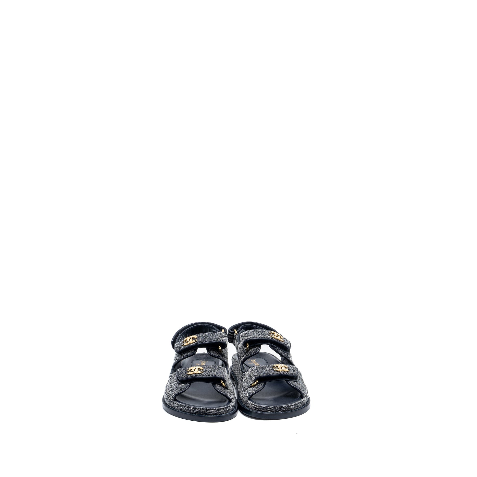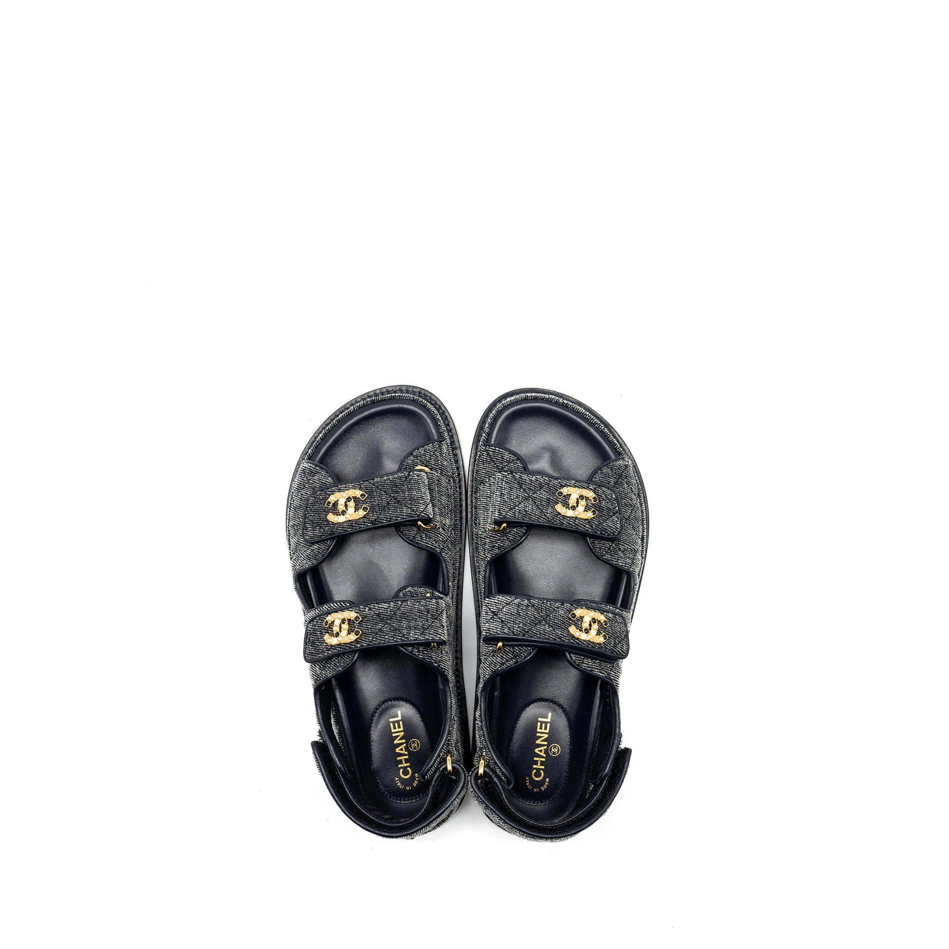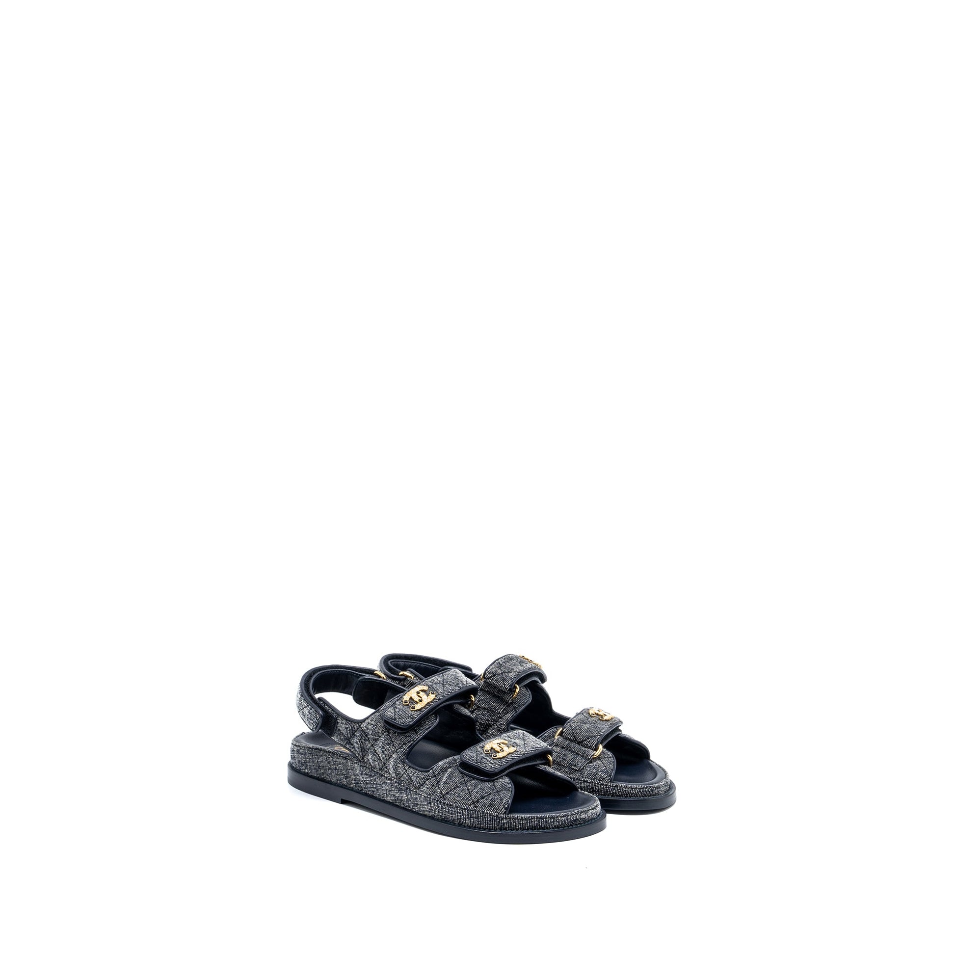 Chanel Size 36.5 Dad Sandals Denim Grey Multicolour Hardware