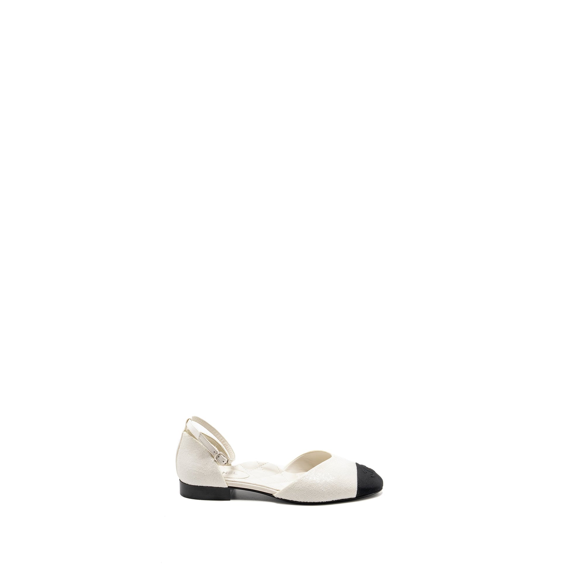 Chanel Size 36.5 Logo Detailed Sandals Sequin White/Black