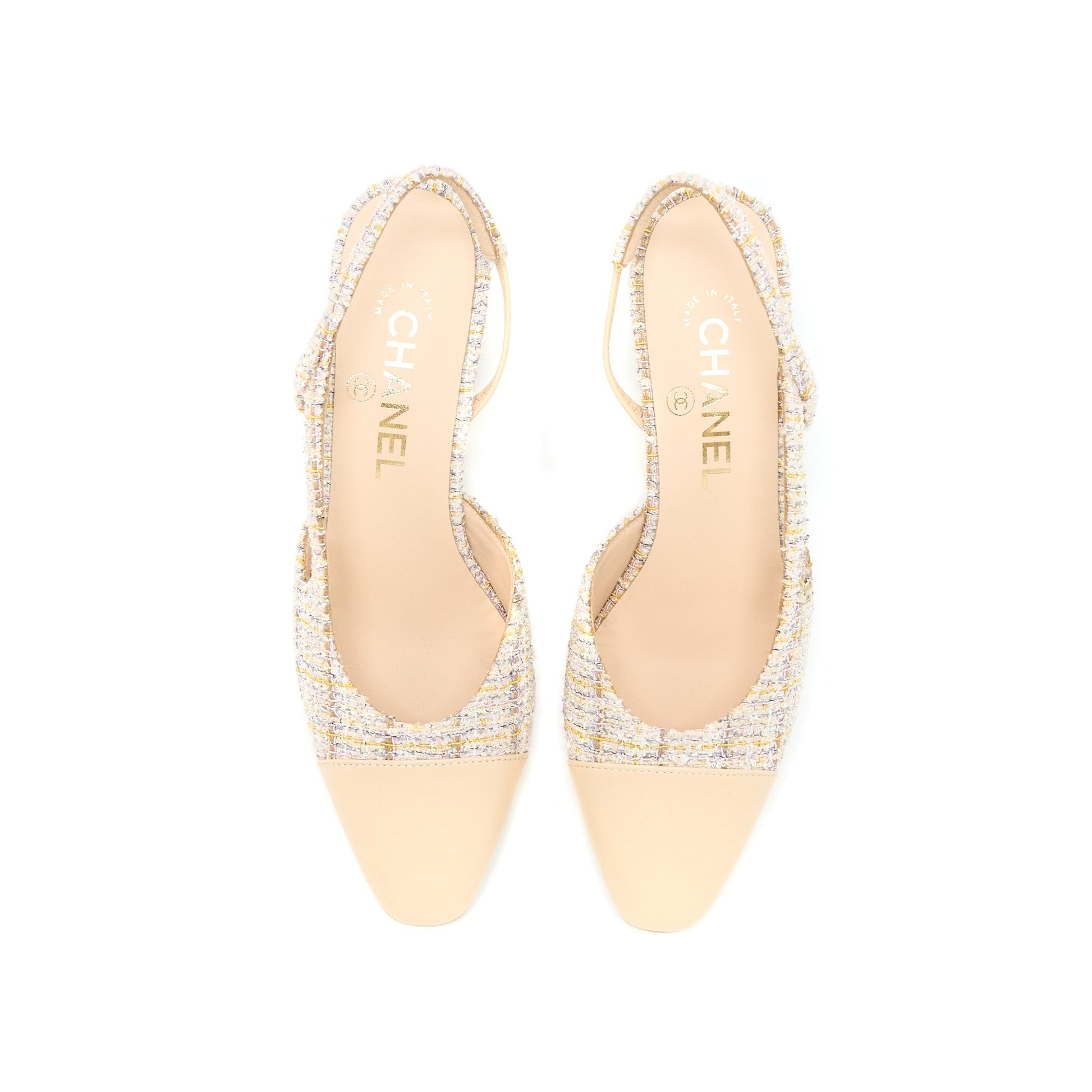 Chanel Size 36.5 Slings Shoes Tweed/Leather Multicolour