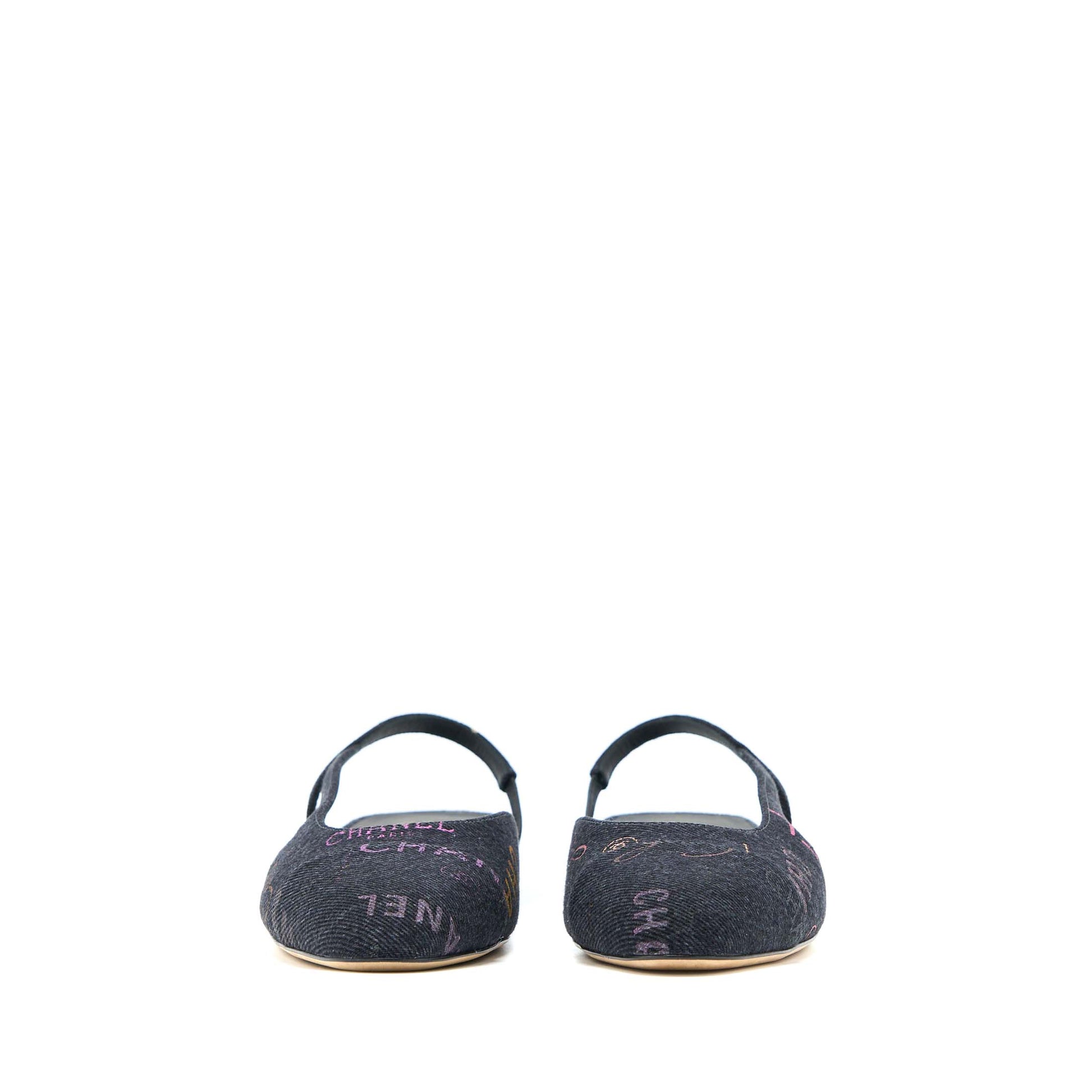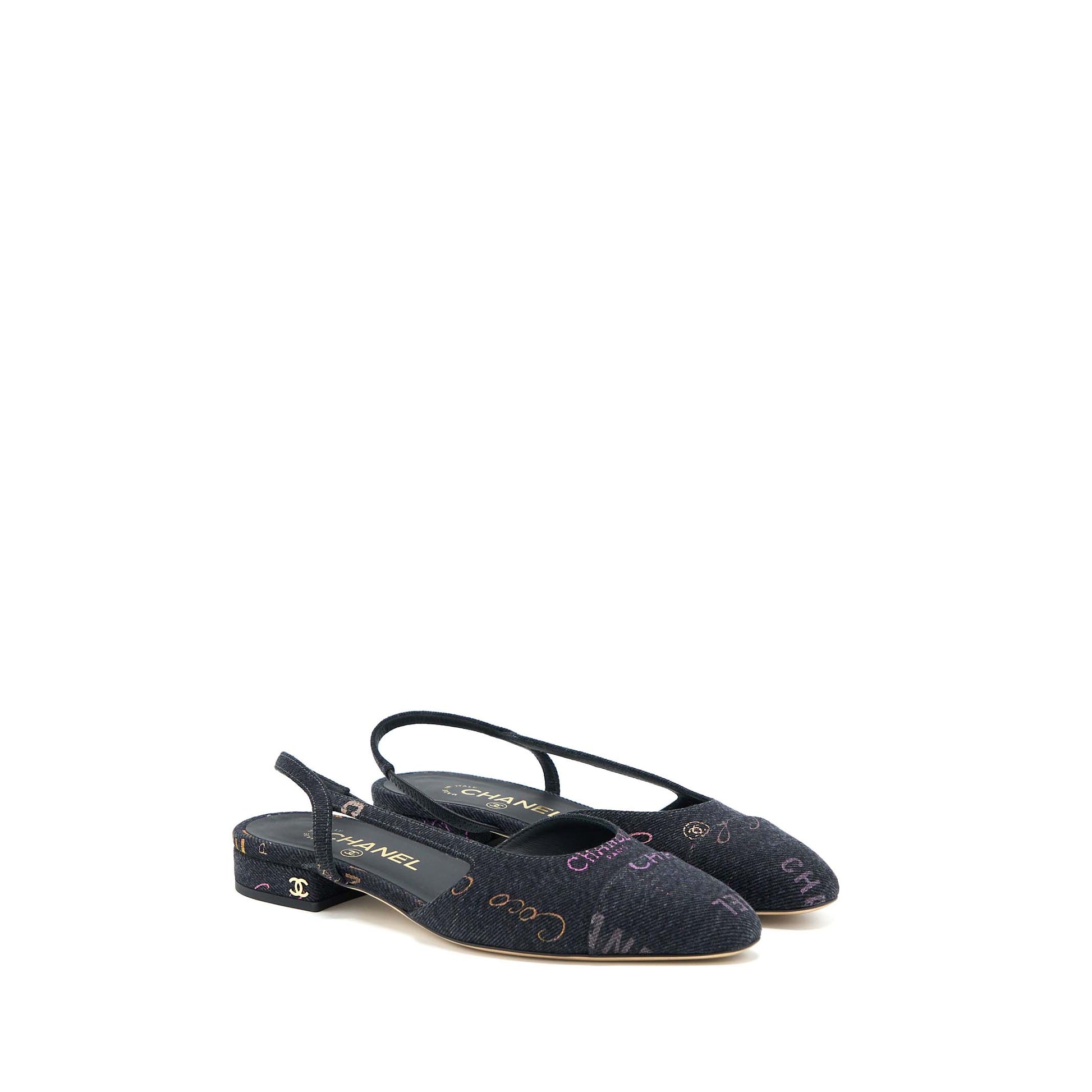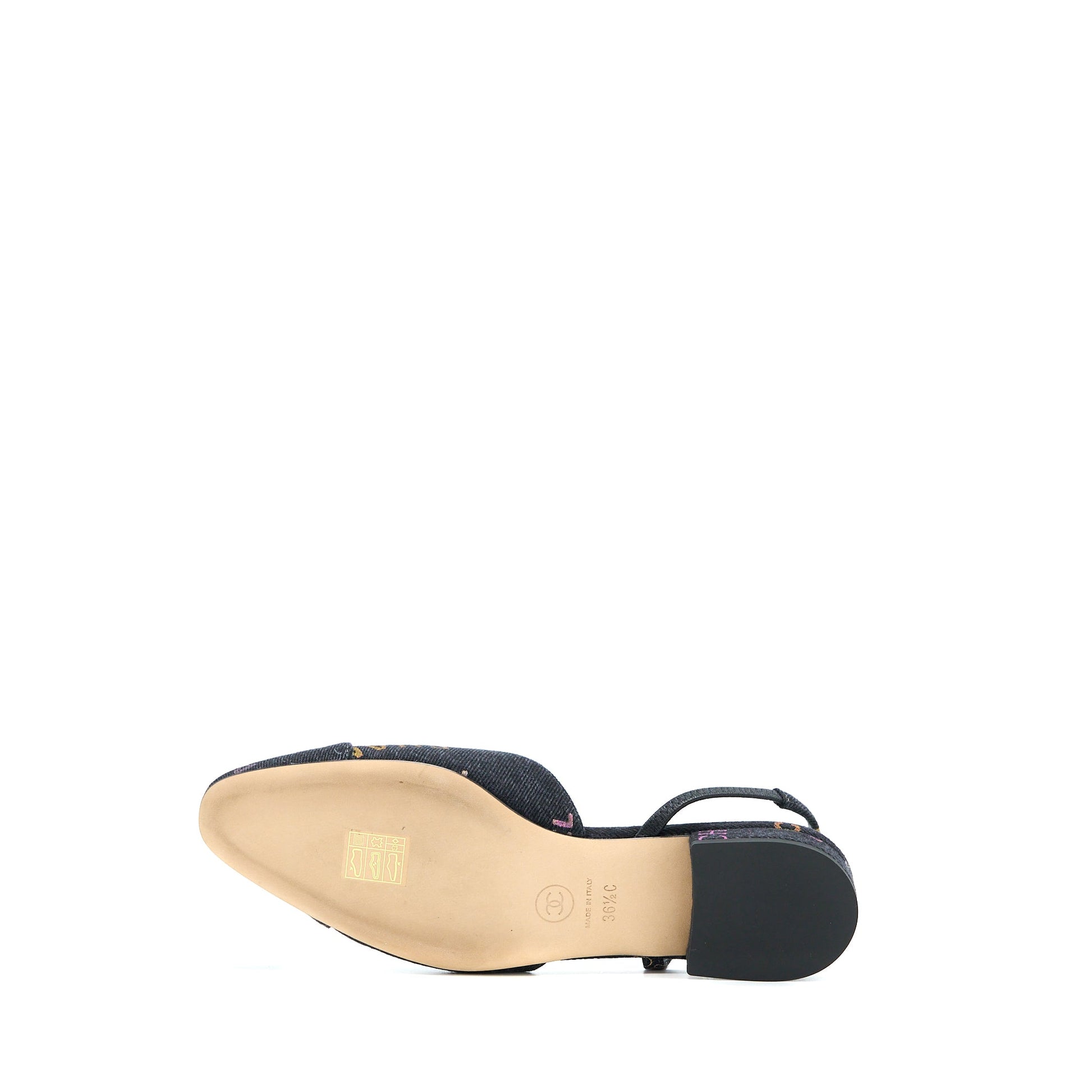 Chanel Size 36.5C Sling Back Flap Shoes Denim/ Leather Black