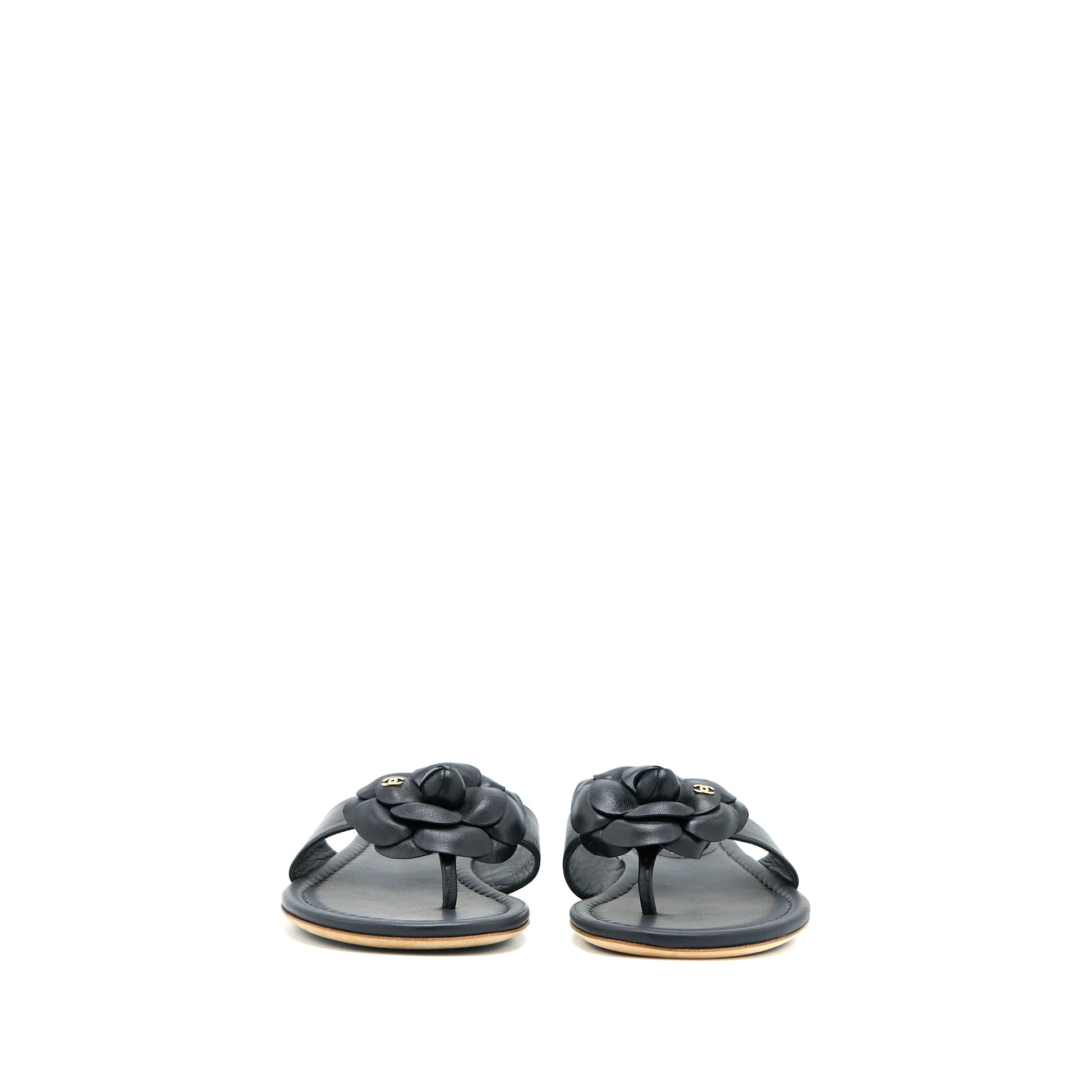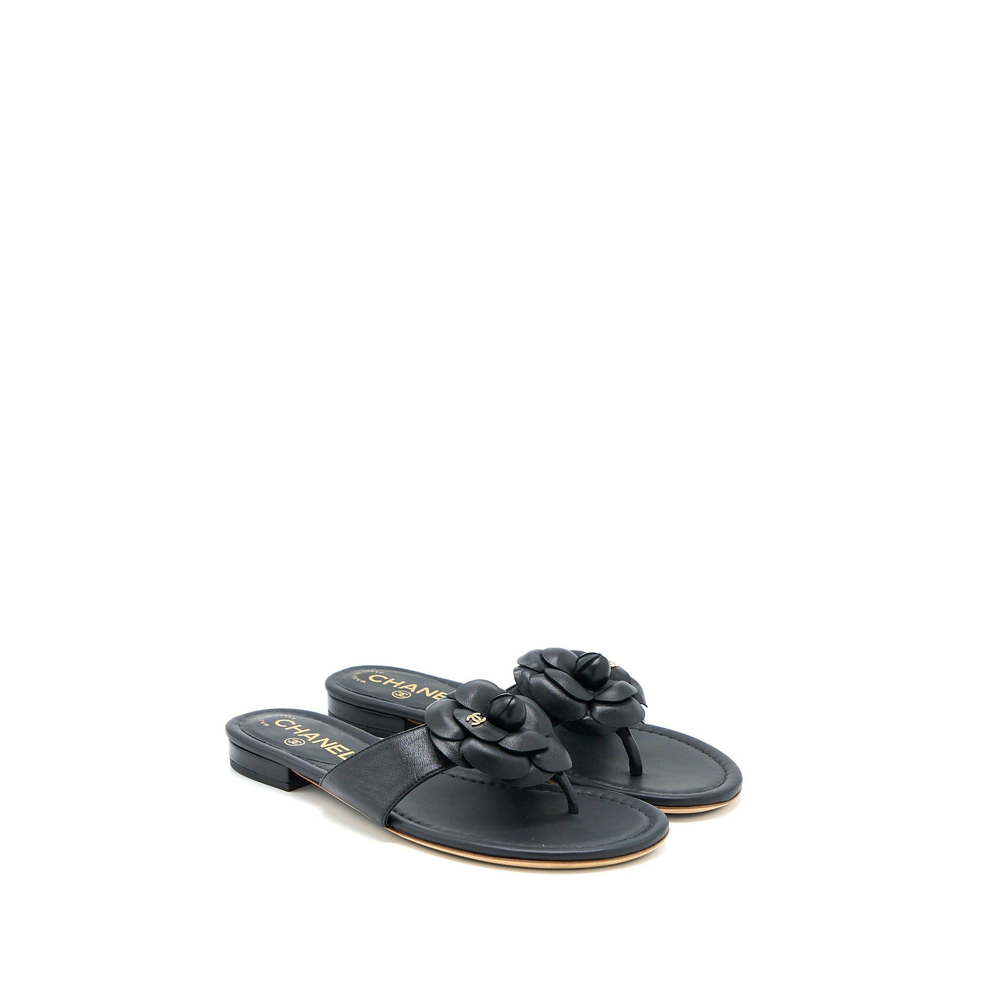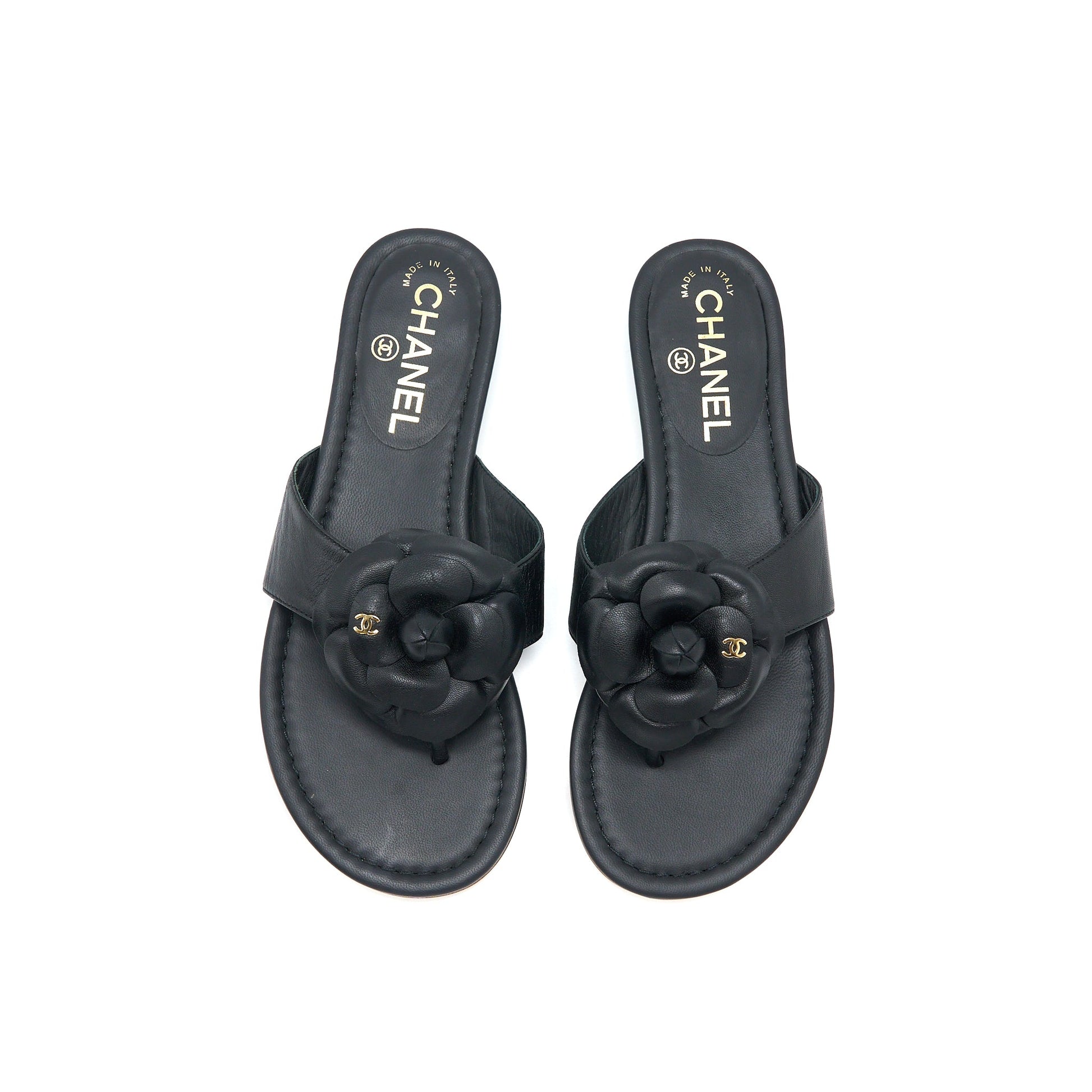 Chanel Size 36 Camelia Sandal Black Gold Tone