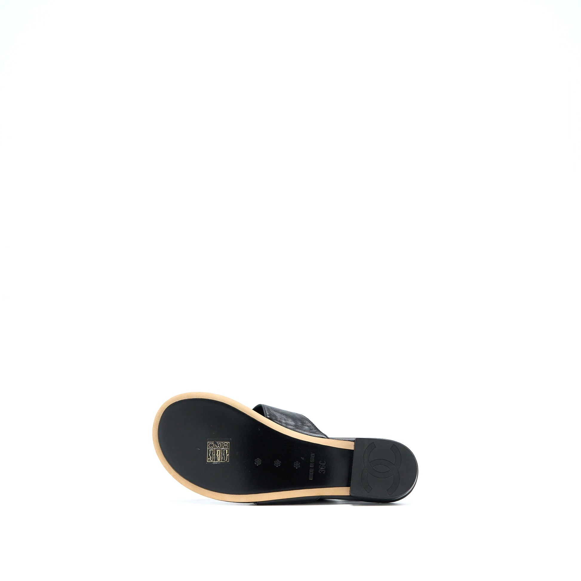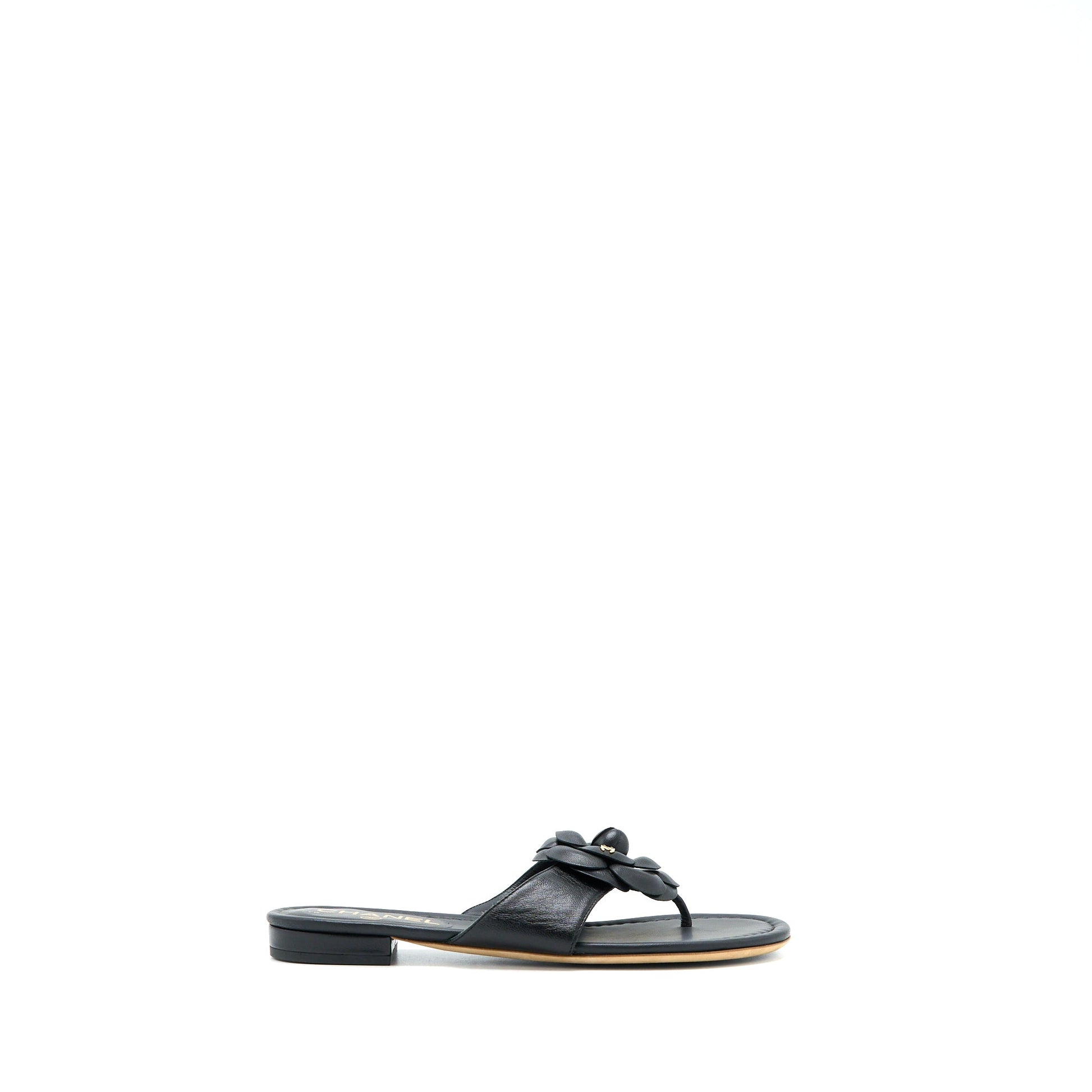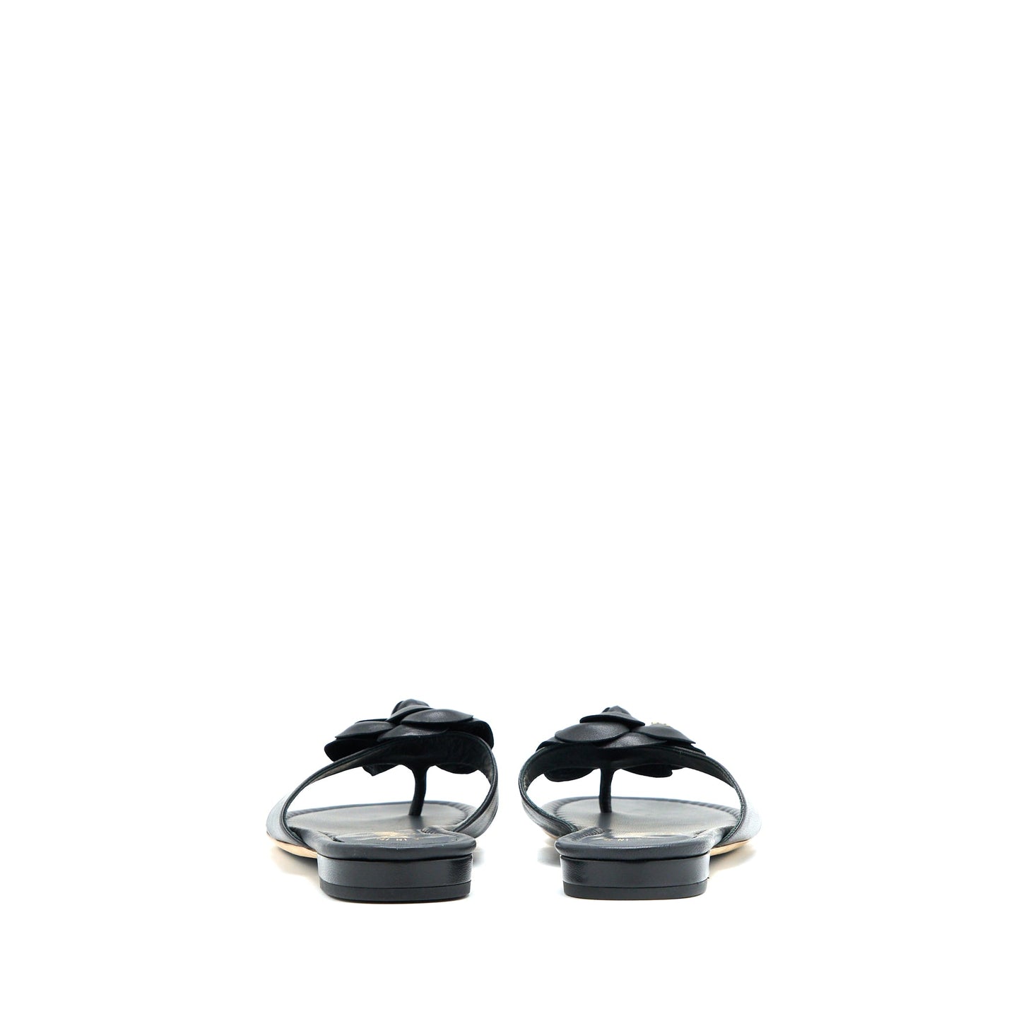 Chanel Size 36 Camelia Sandal Black Gold Tone