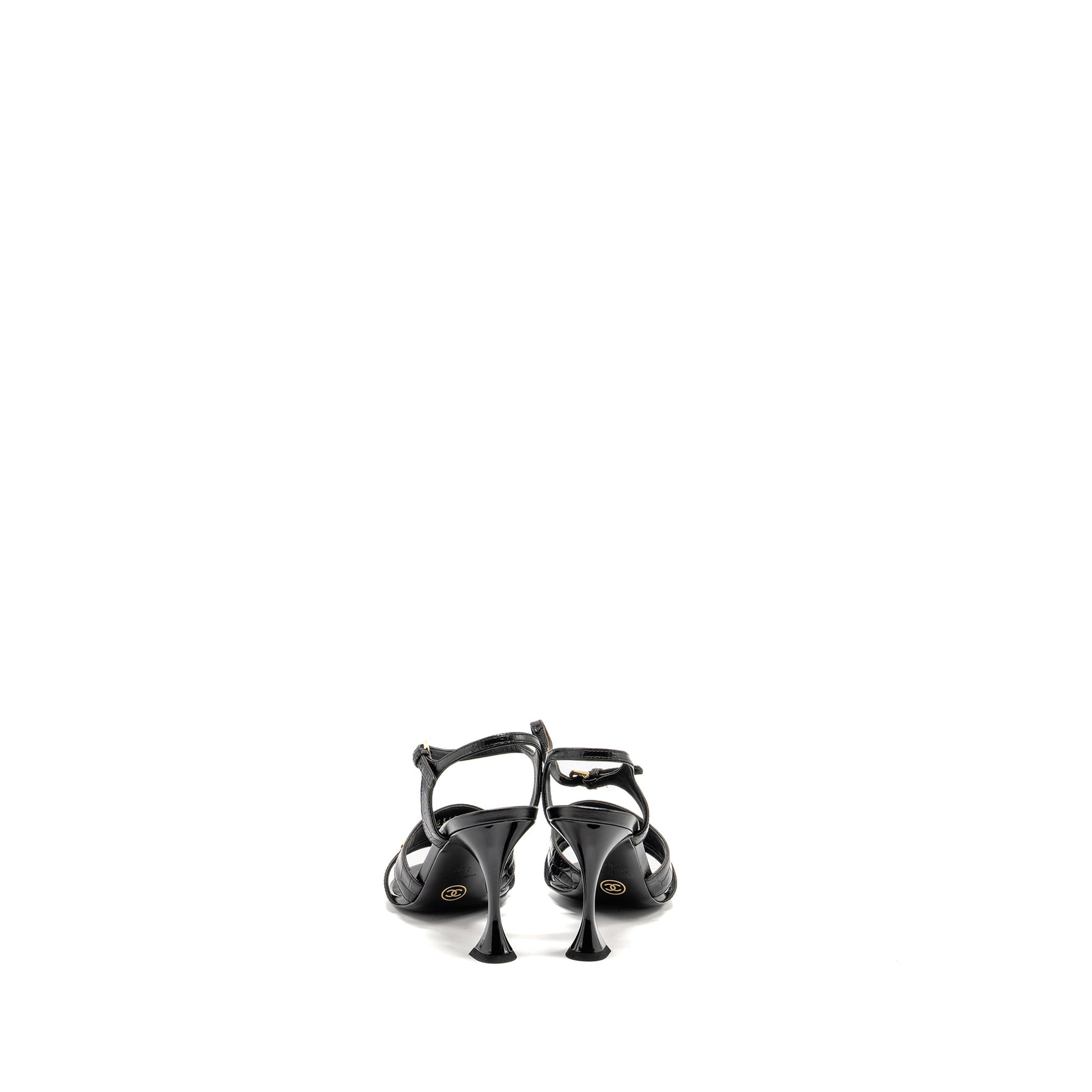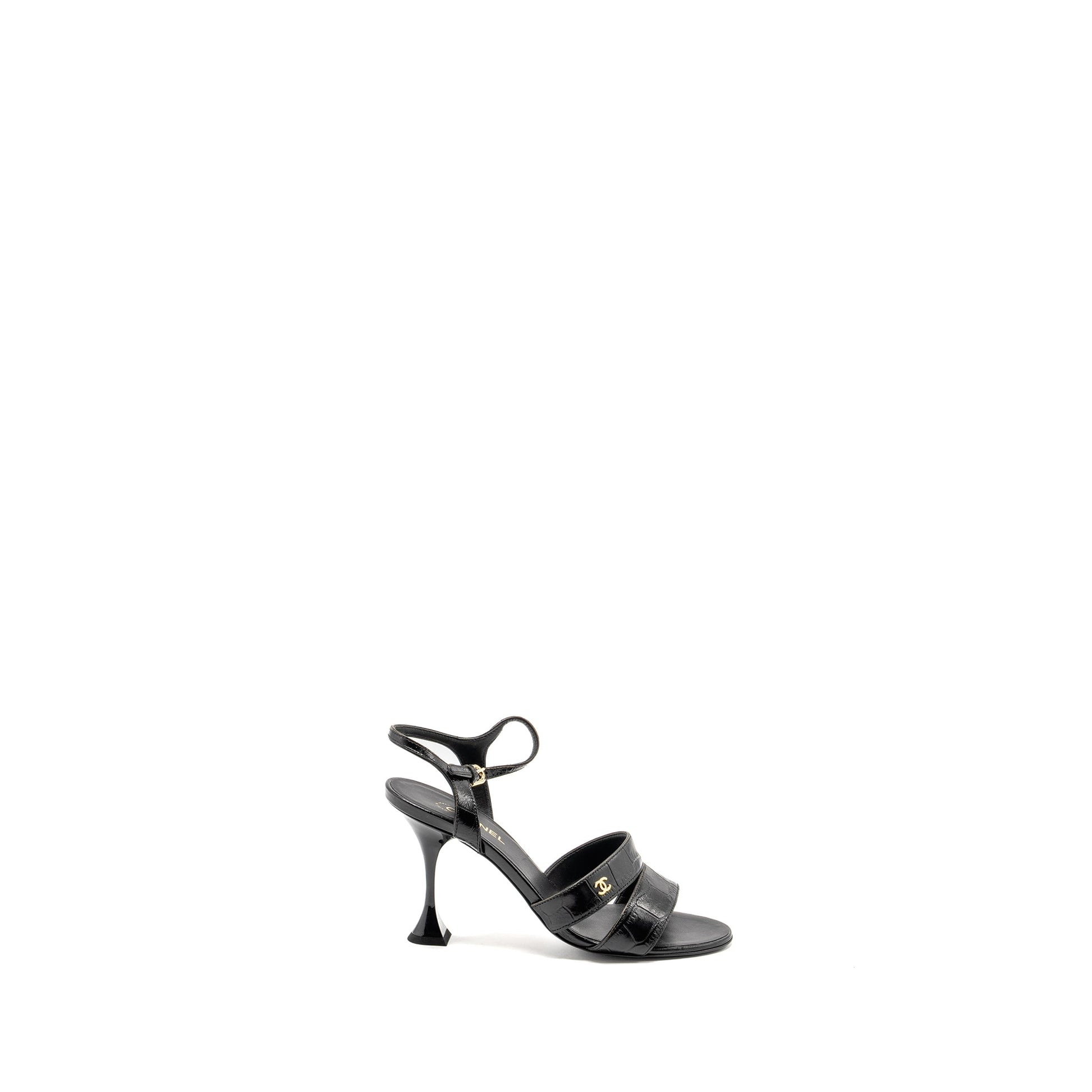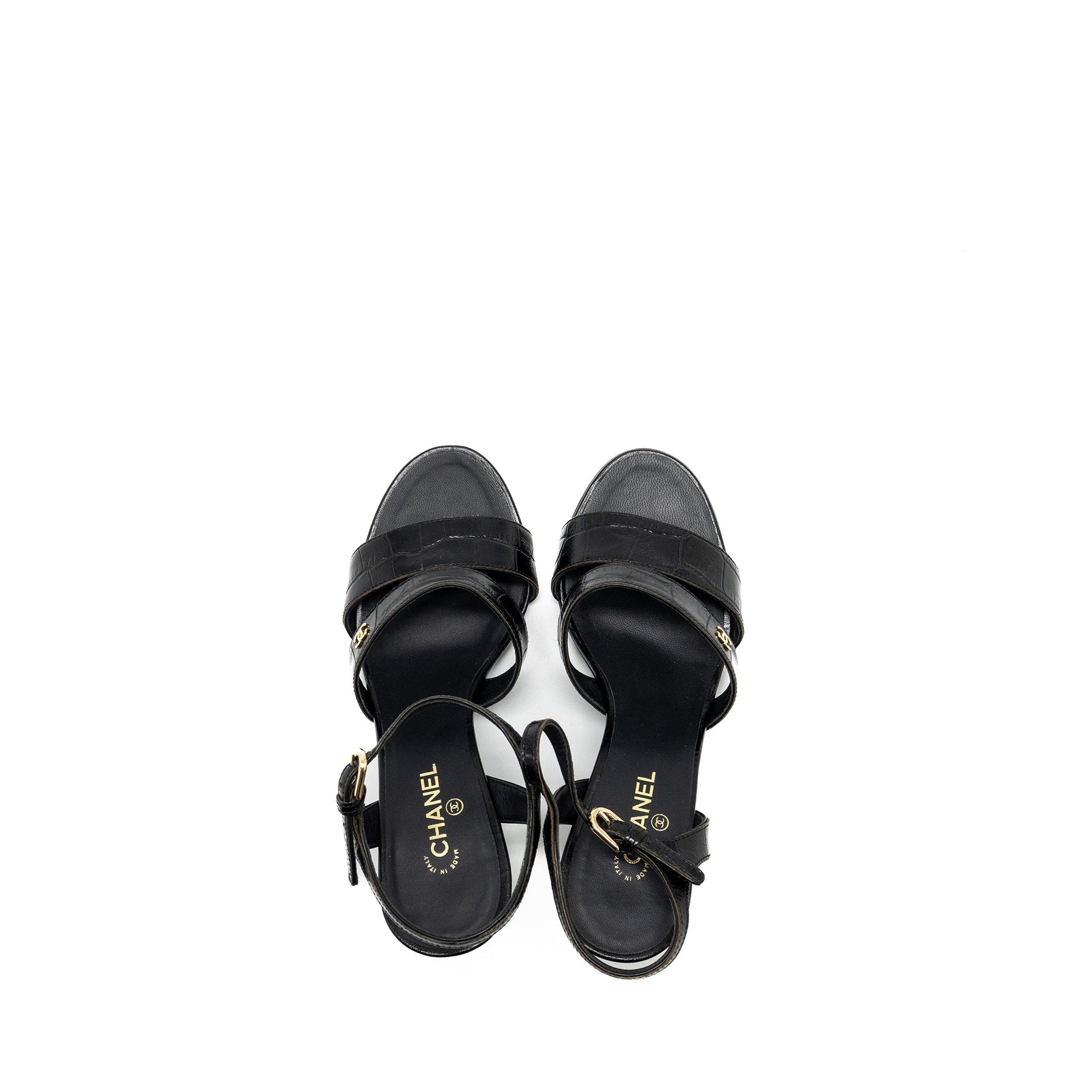 Chanel Size 36 CC Sandals Matte Crocodile-Embossed Calfskin Black