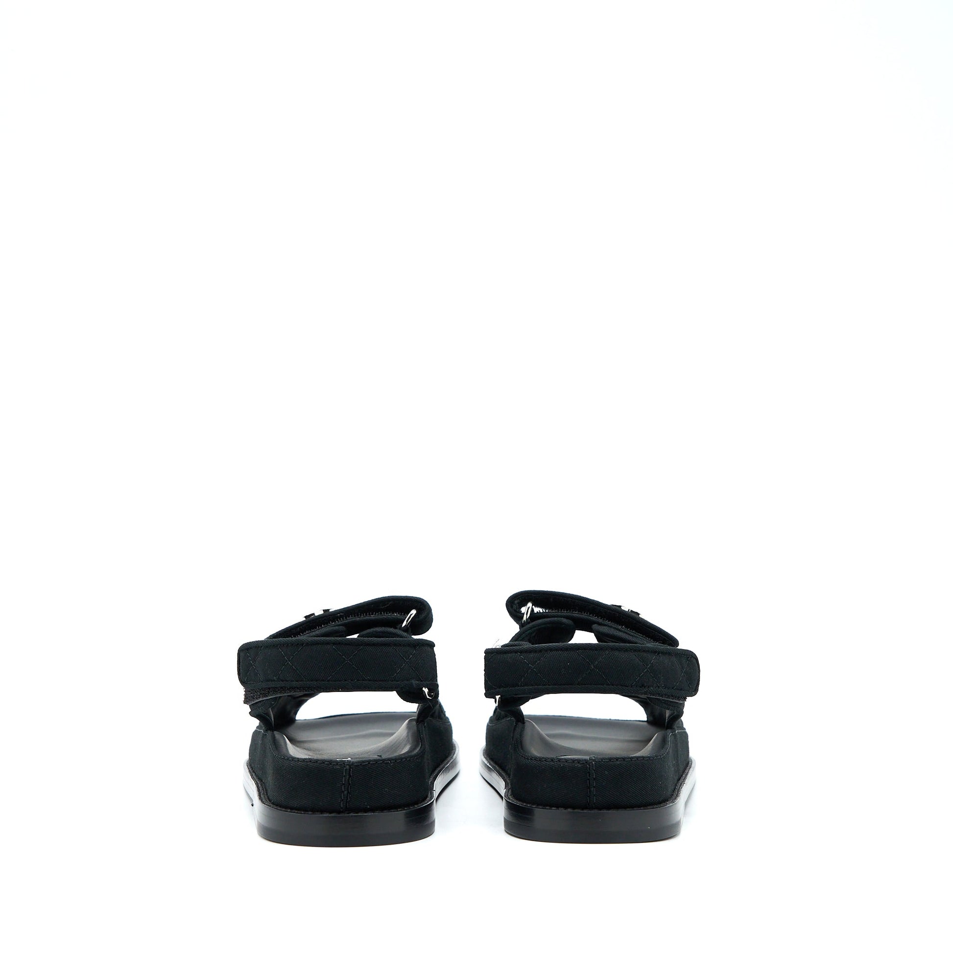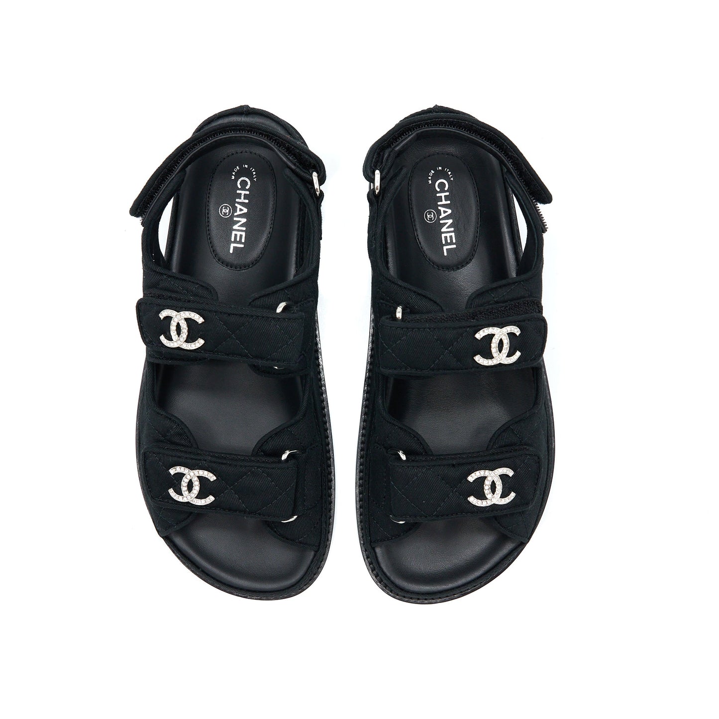 Chanel Size 36 Dad Sandals Crystal Logo Fabric Black