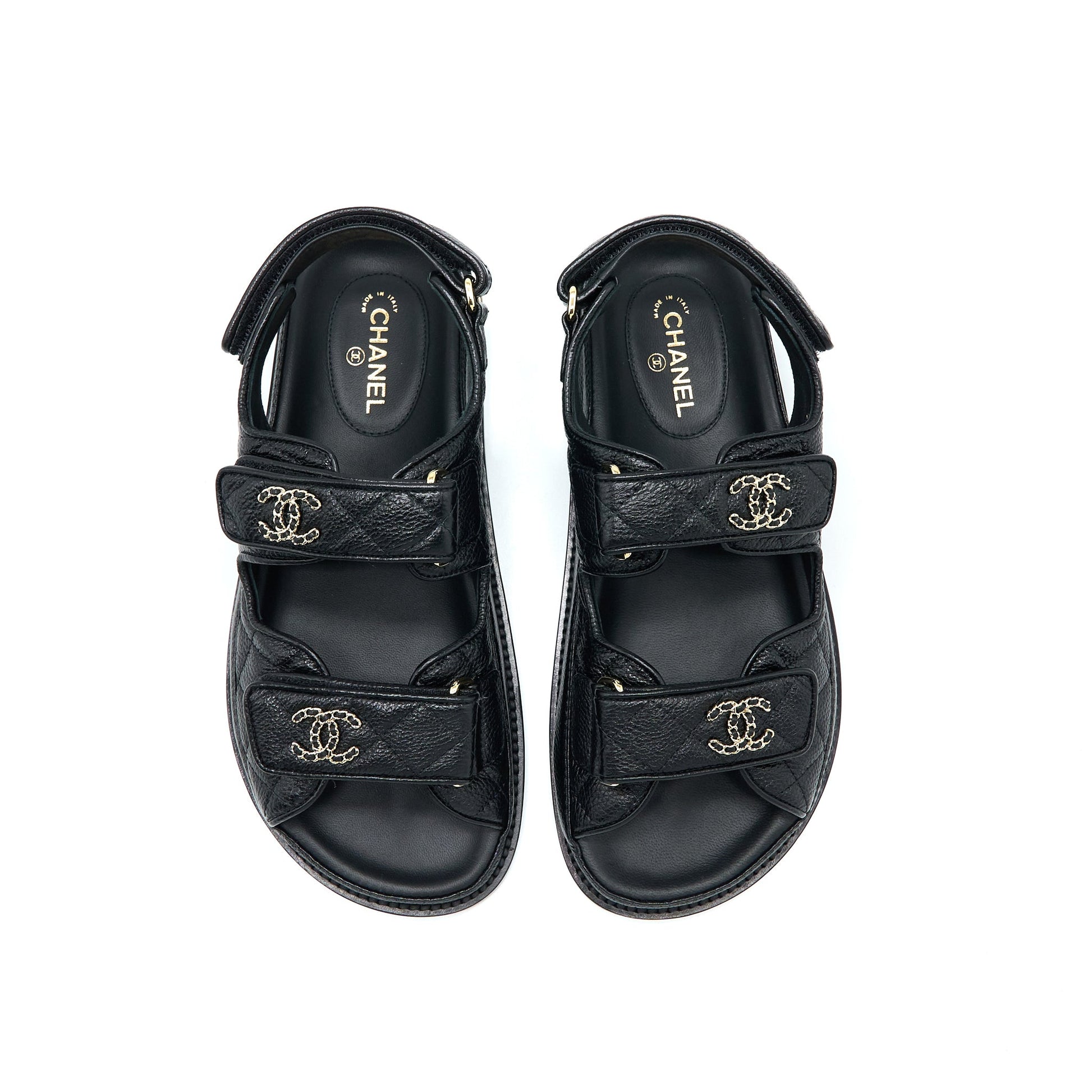 Chanel Size 36 Dad Sandals Leather Black Light Gold Tone