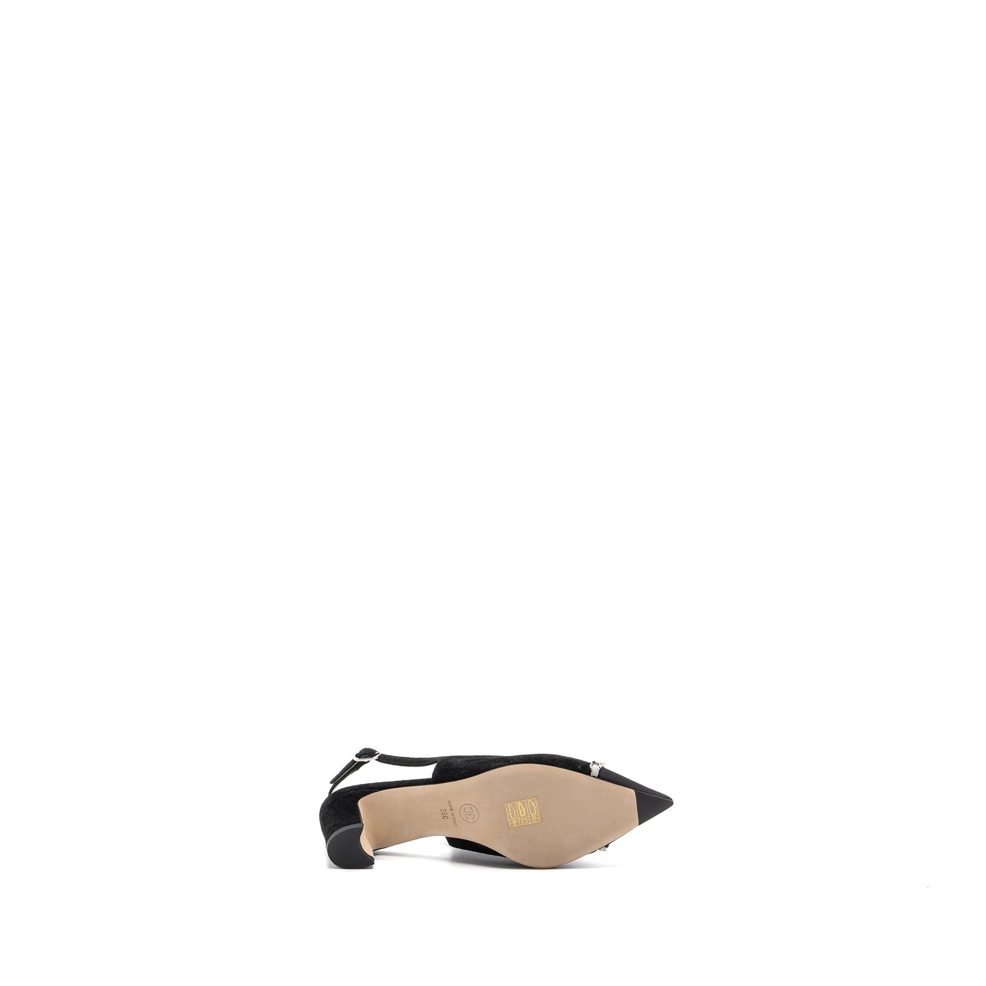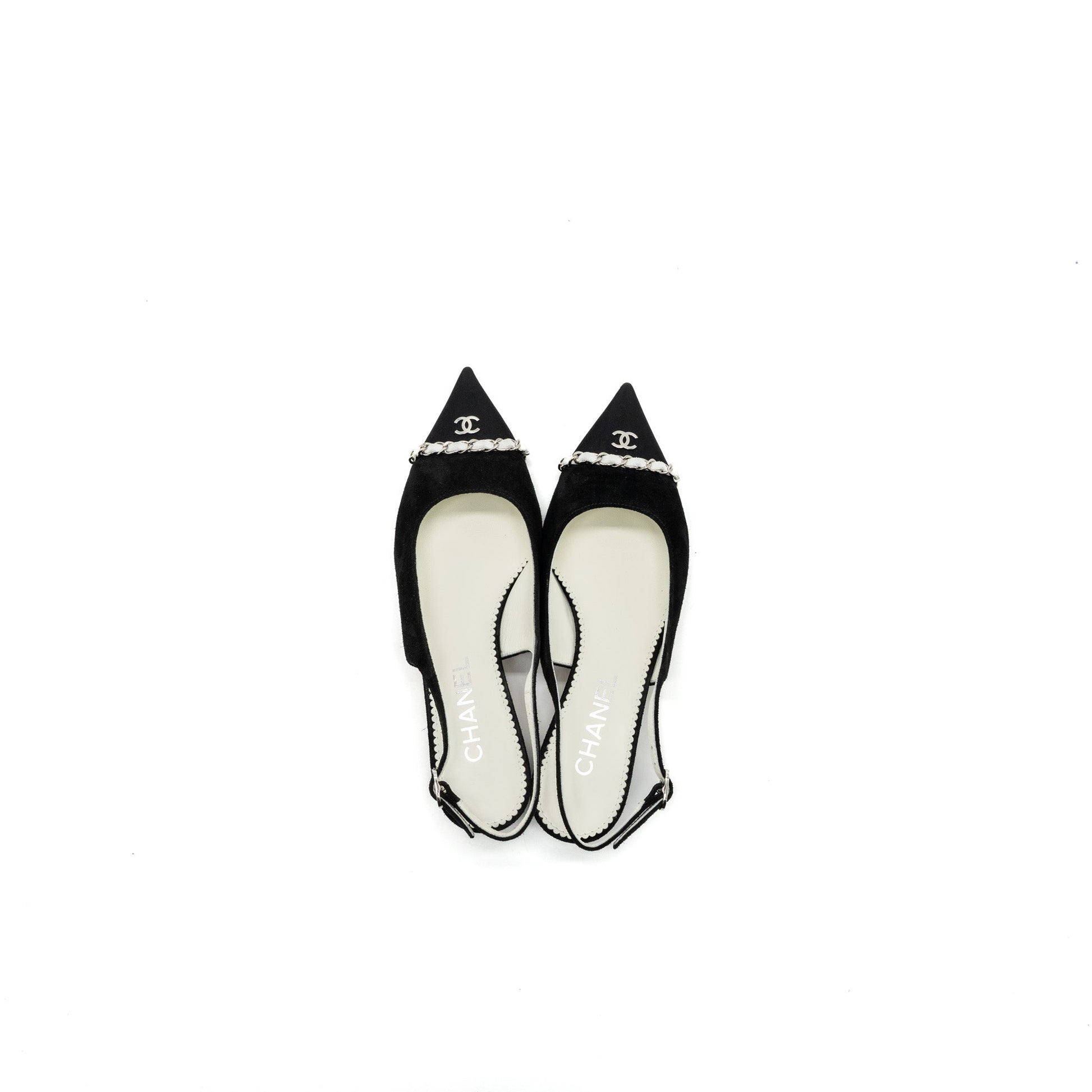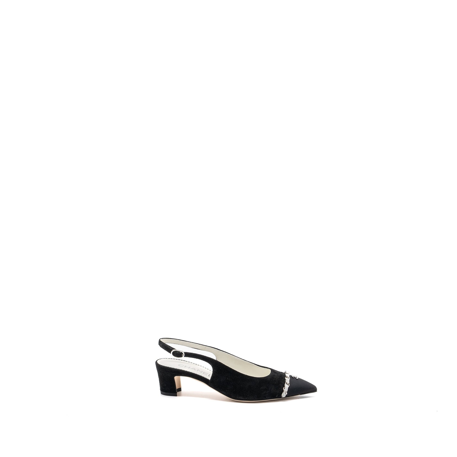 CHANEL SIZE 36 SLINGS SHOES Suede Calfskin/ Grosgrain Metal Black and Light Grey
