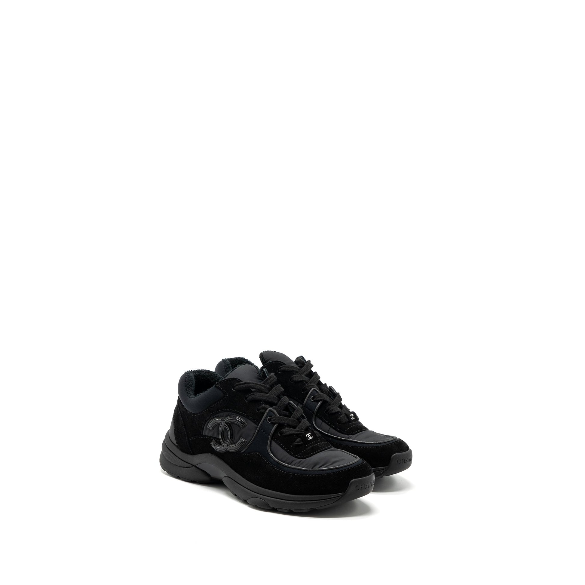 Chanel size 37.5 trainers/ sneakers nylon / suede leather black