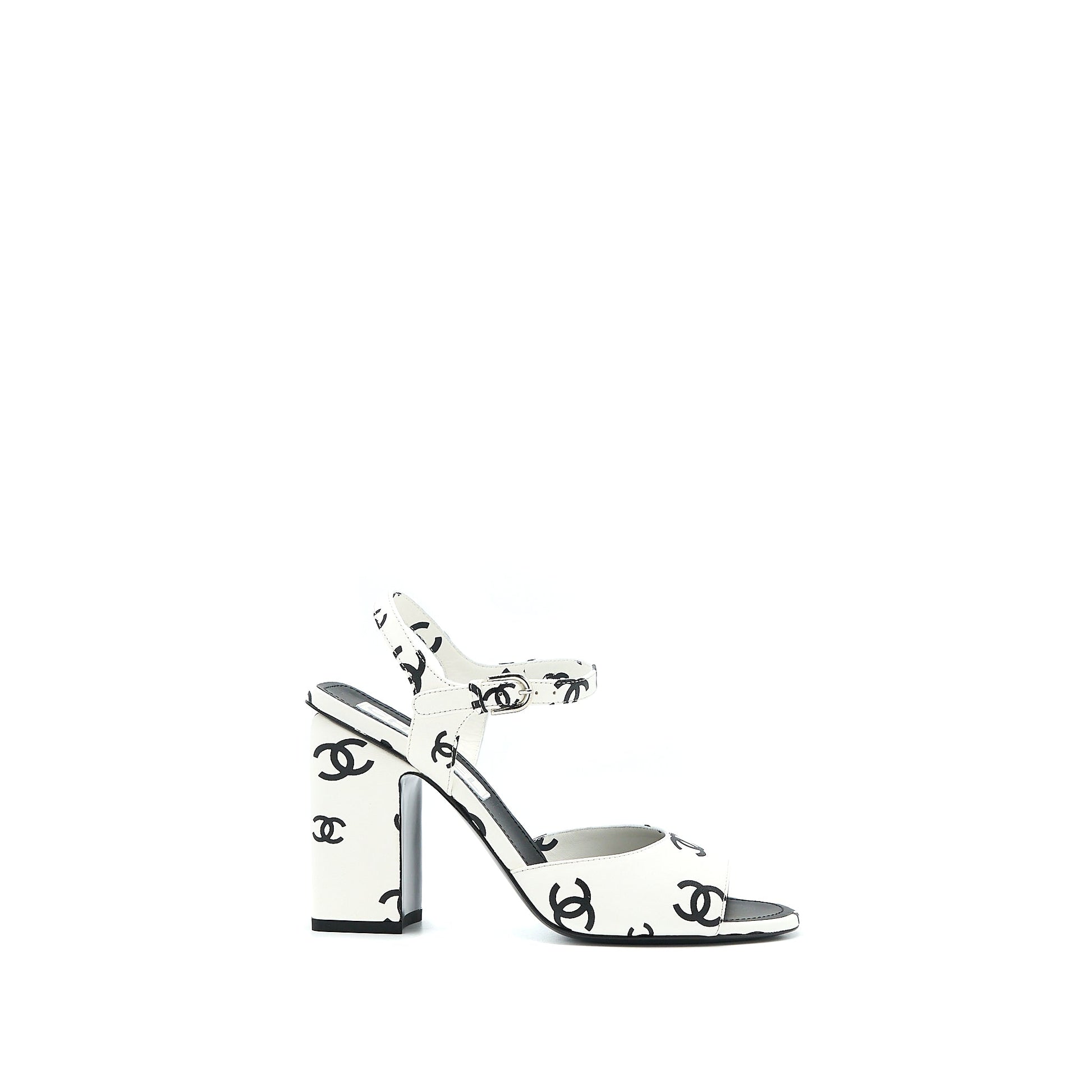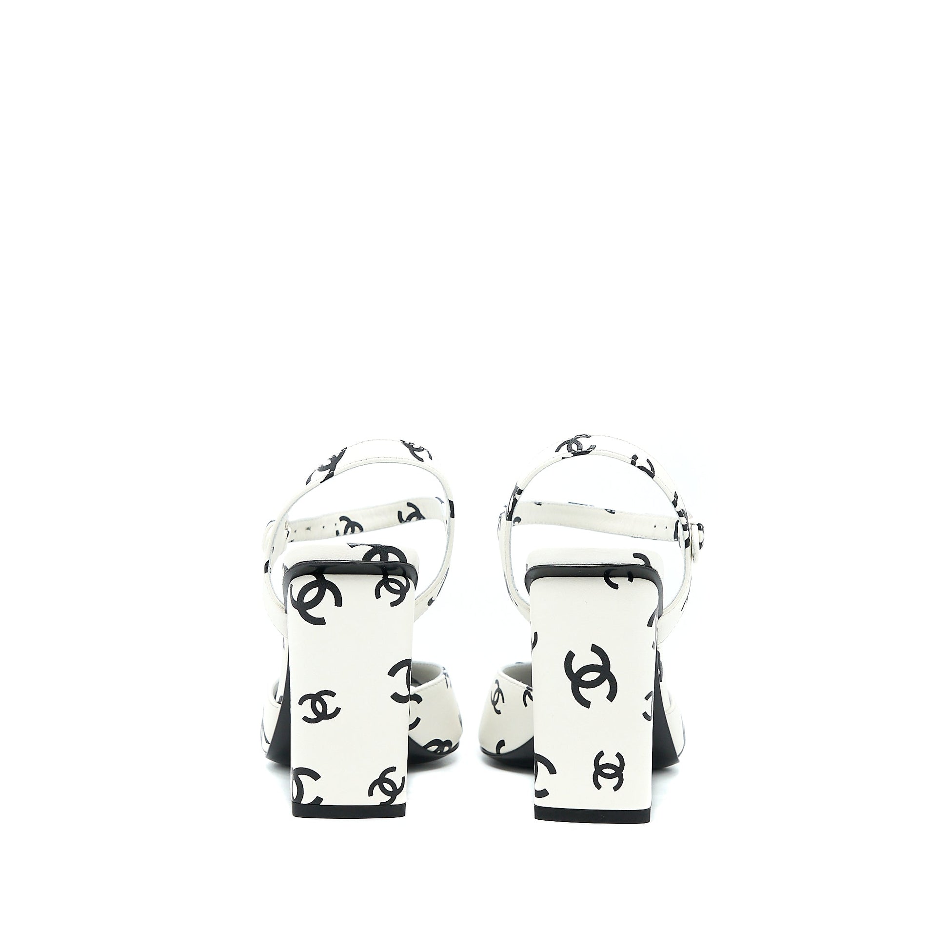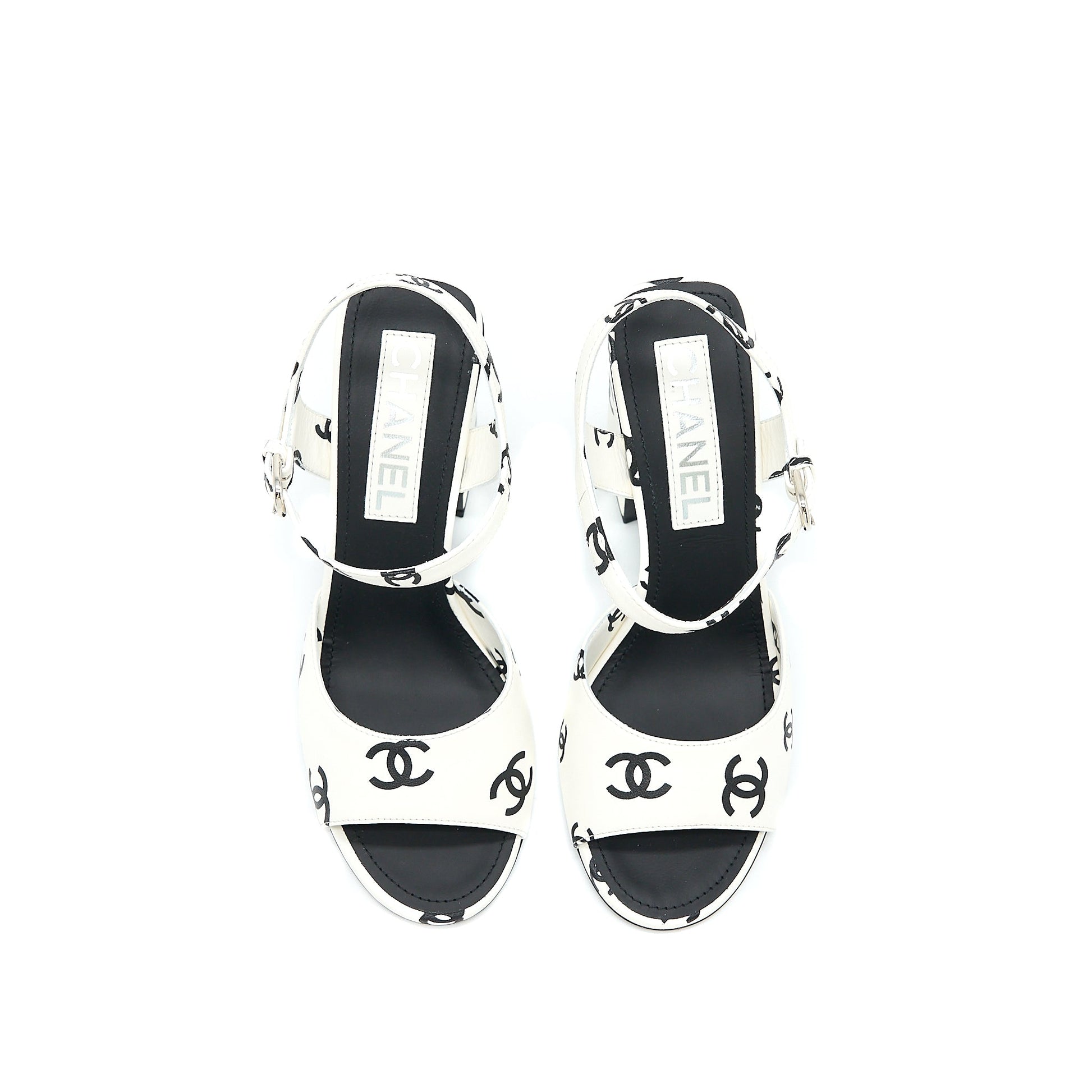 Chanel Size 37 CC Logo Leather Sandal Black/White