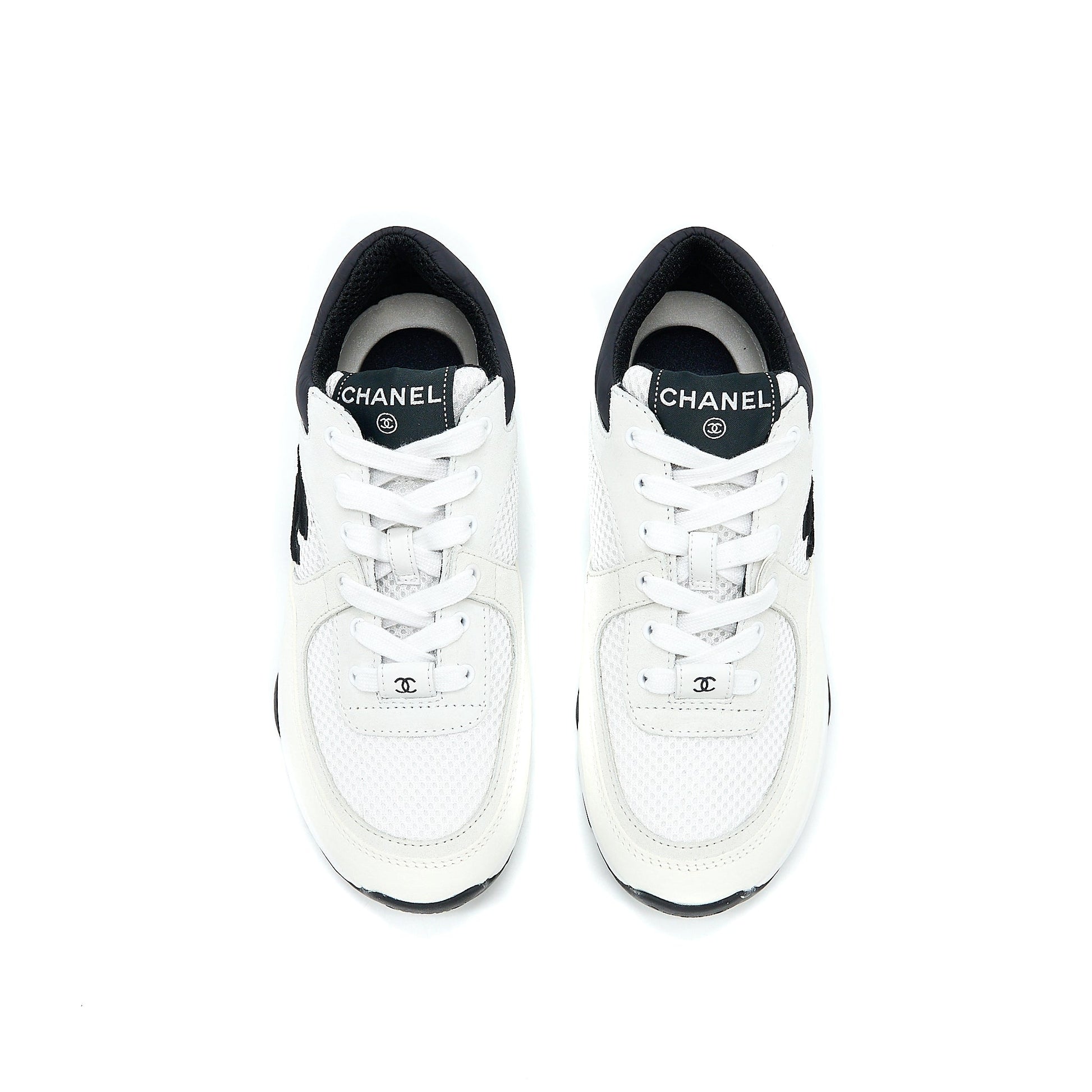 Chanel Size 37 CC Logo Sneaker Calfskin/Suede Black/White