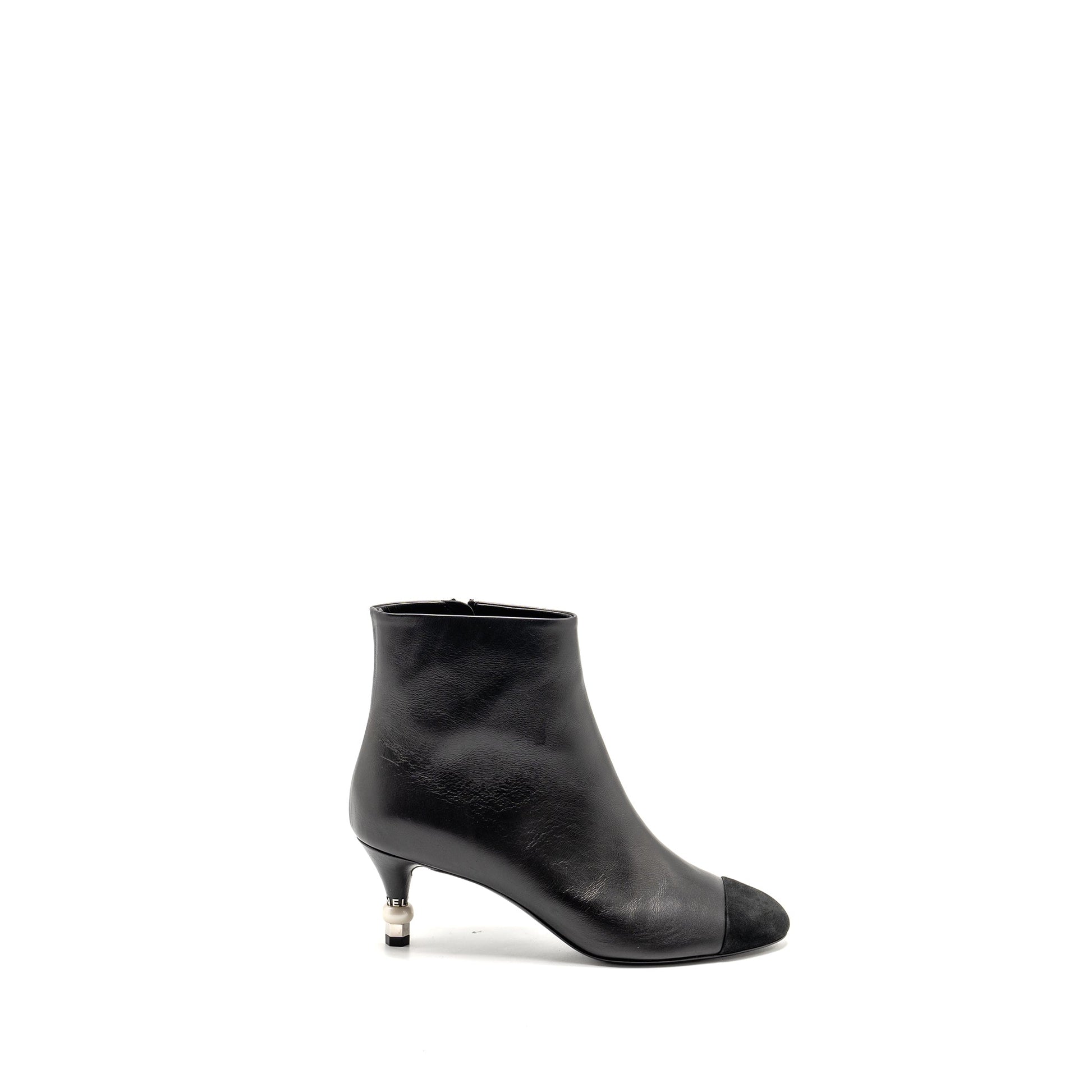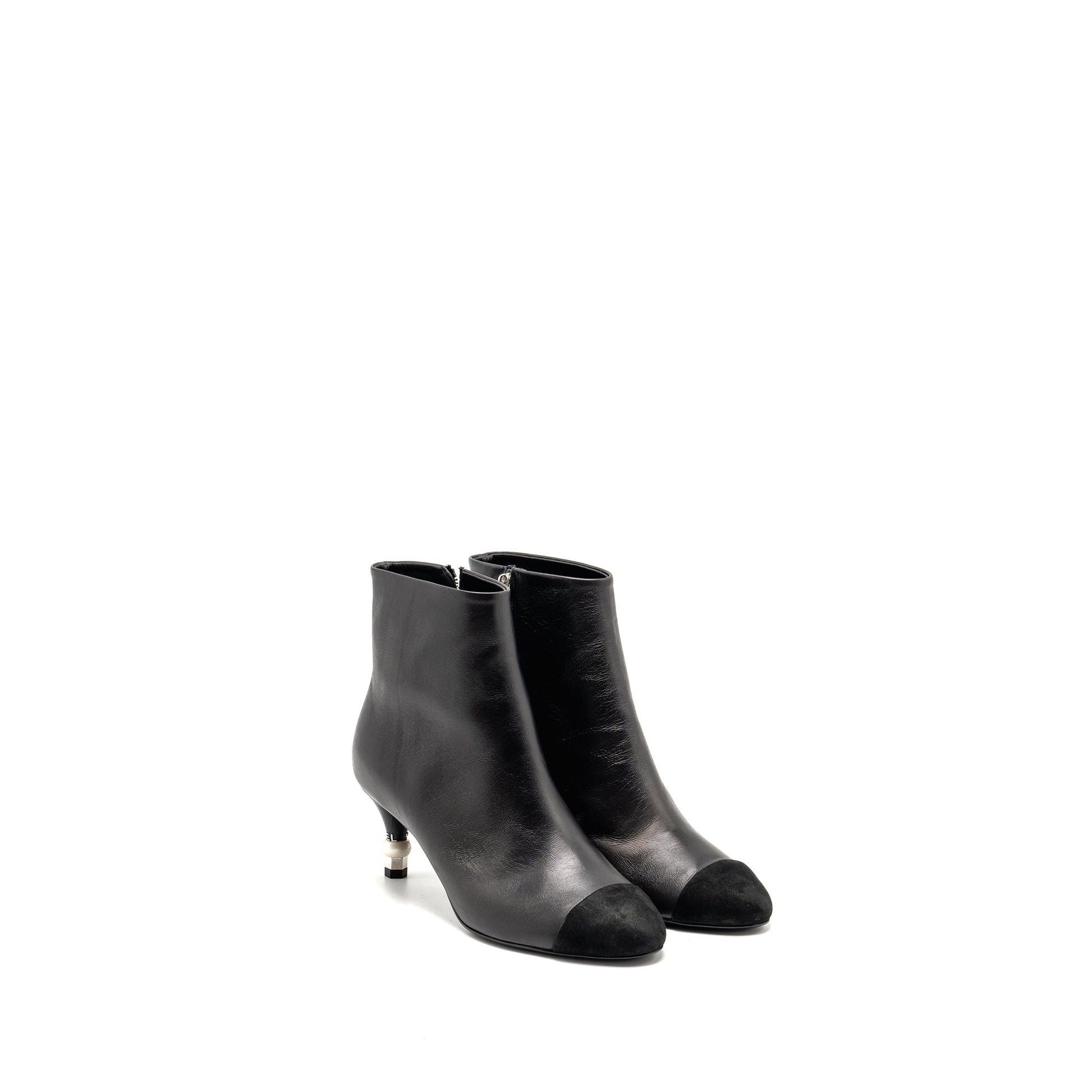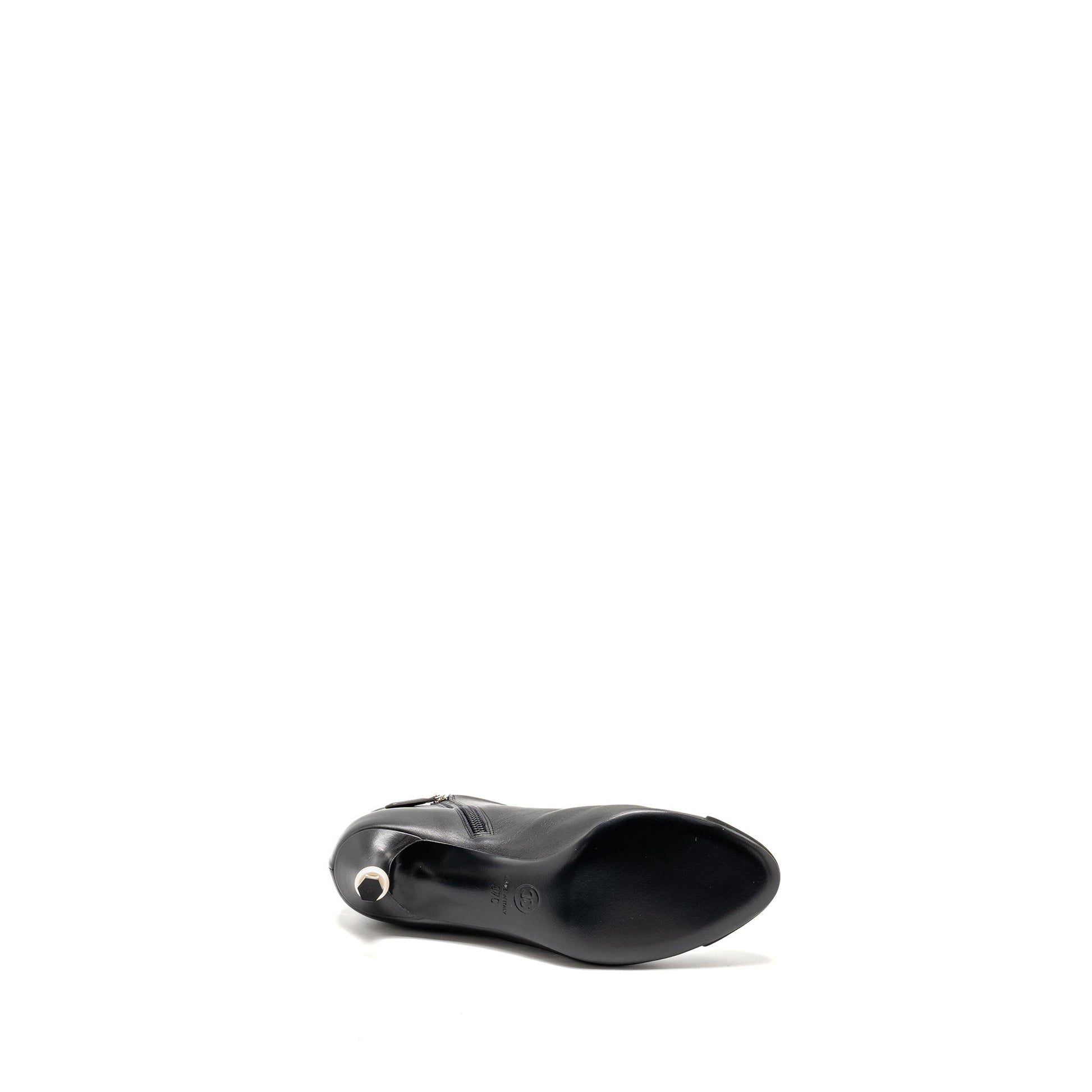 Chanel Size 37 Interlocking Boots Letter/Pearl Leather Black