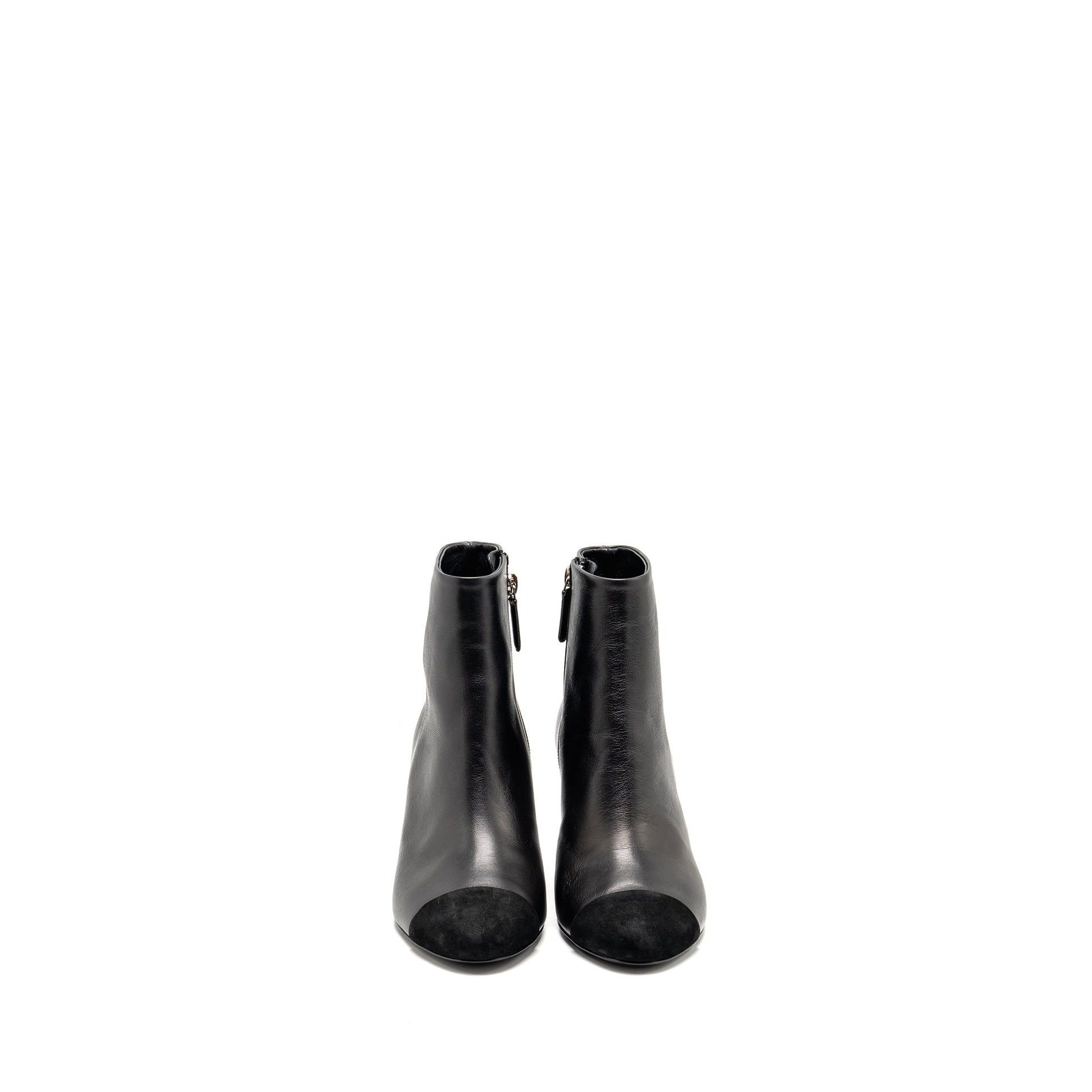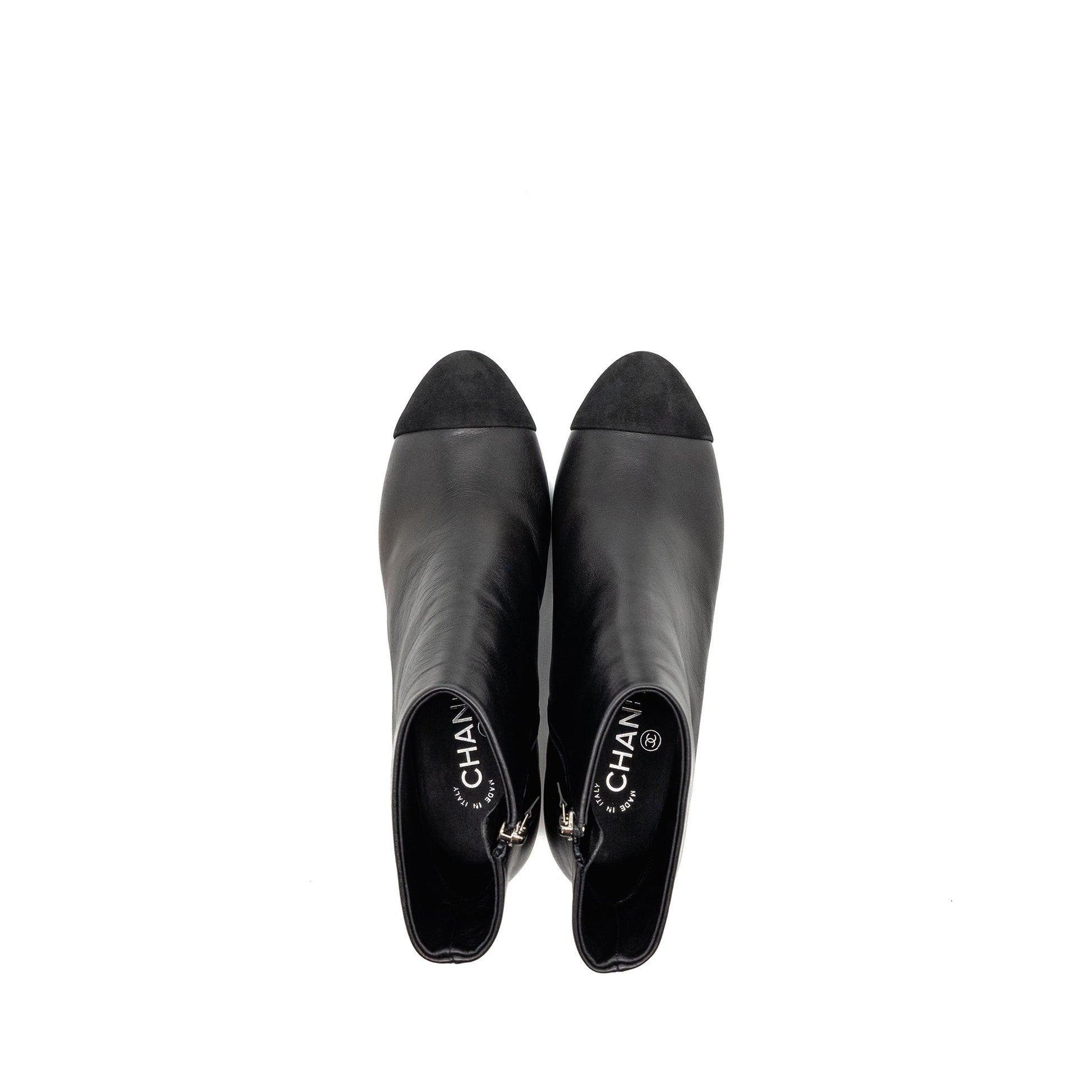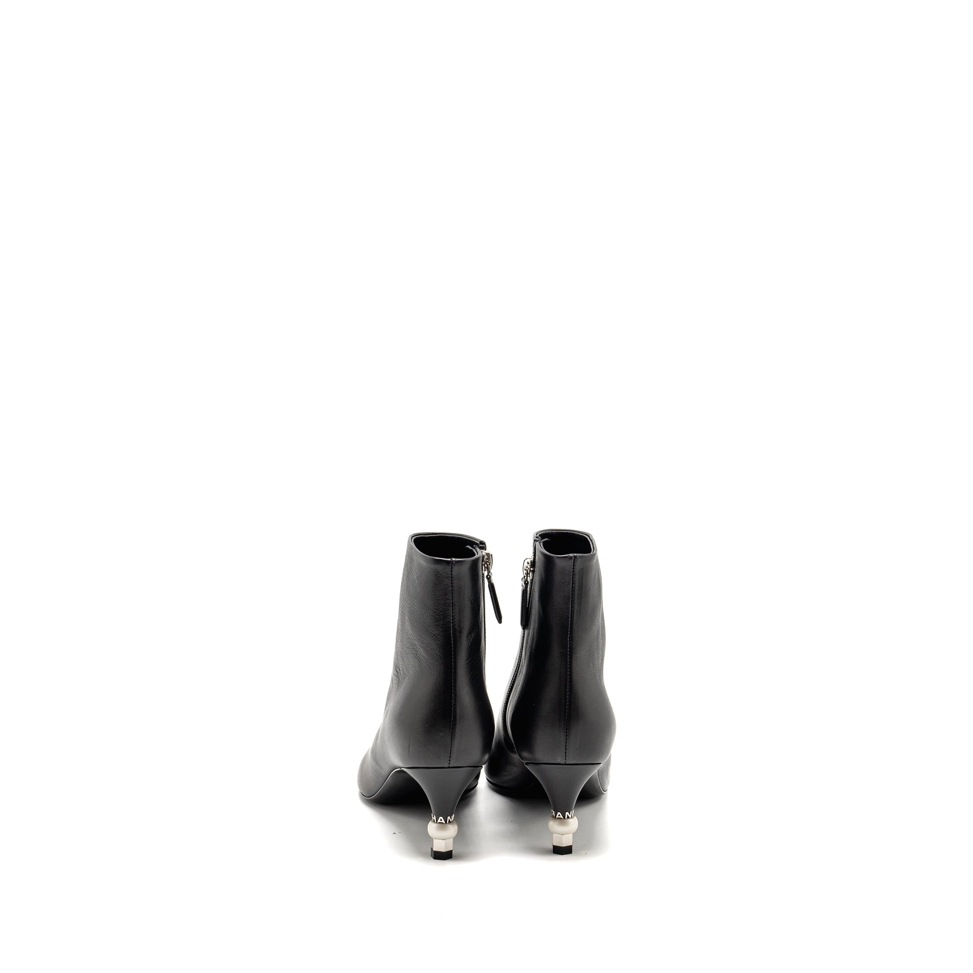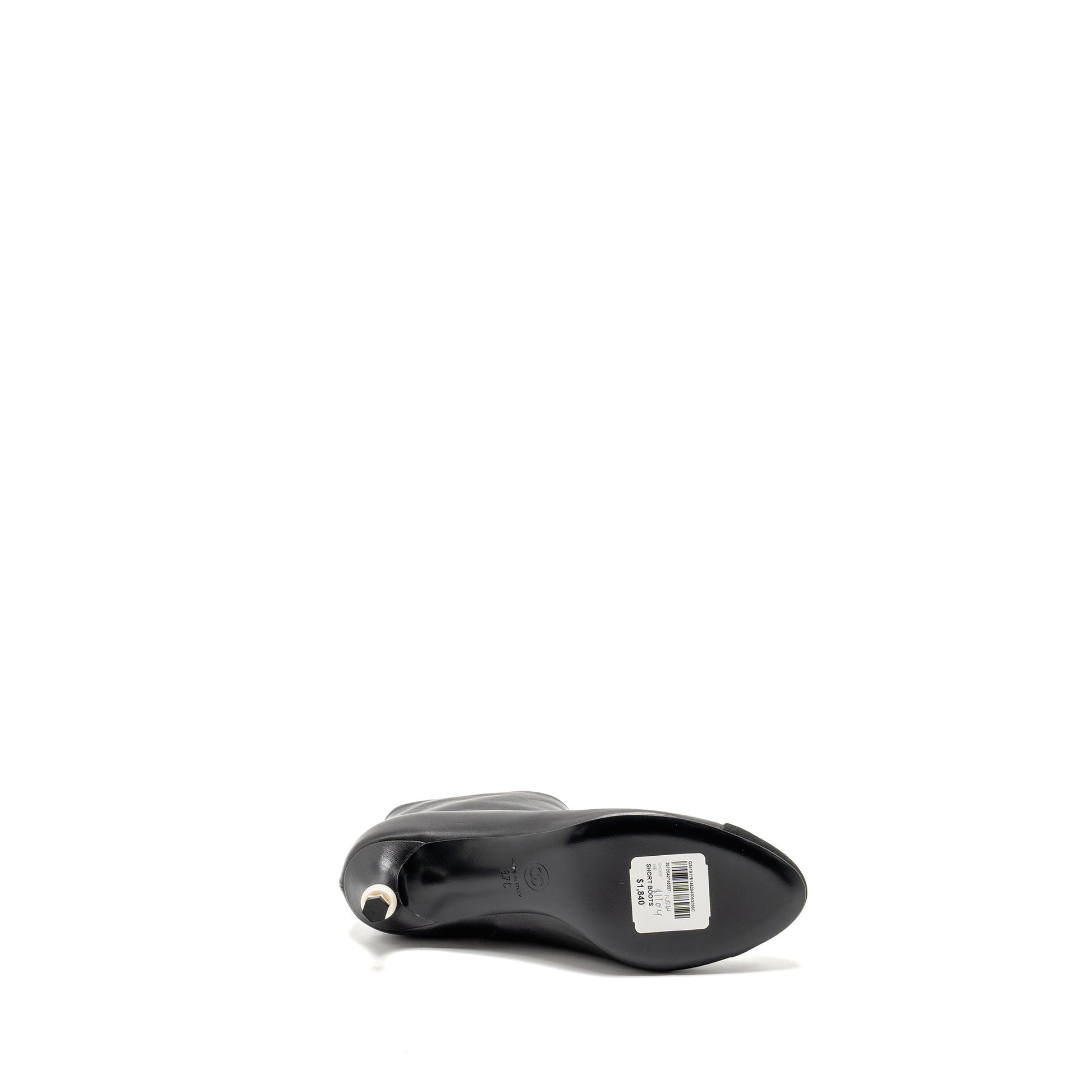 Chanel Size 37 Interlocking Boots Letter/Pearl Leather Black