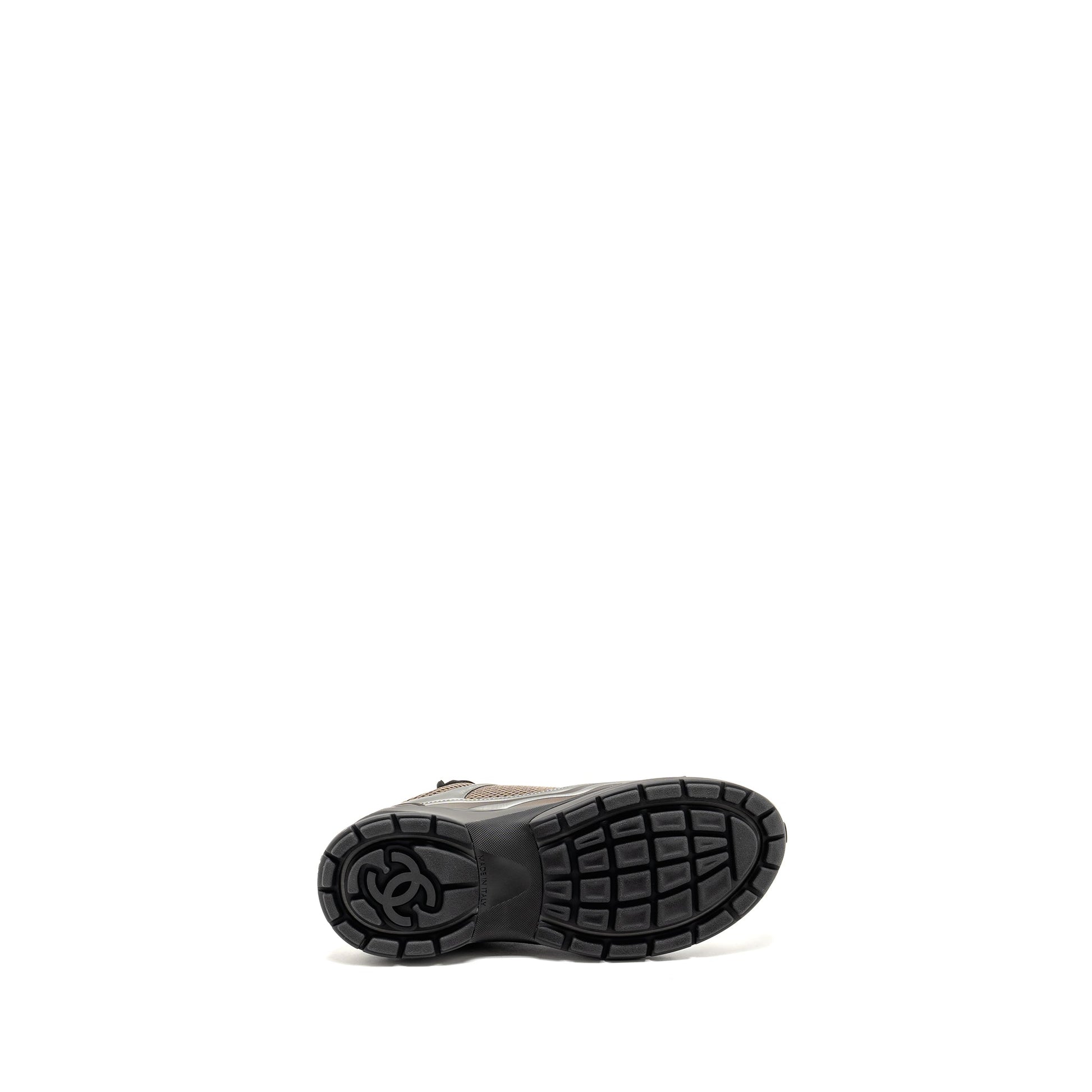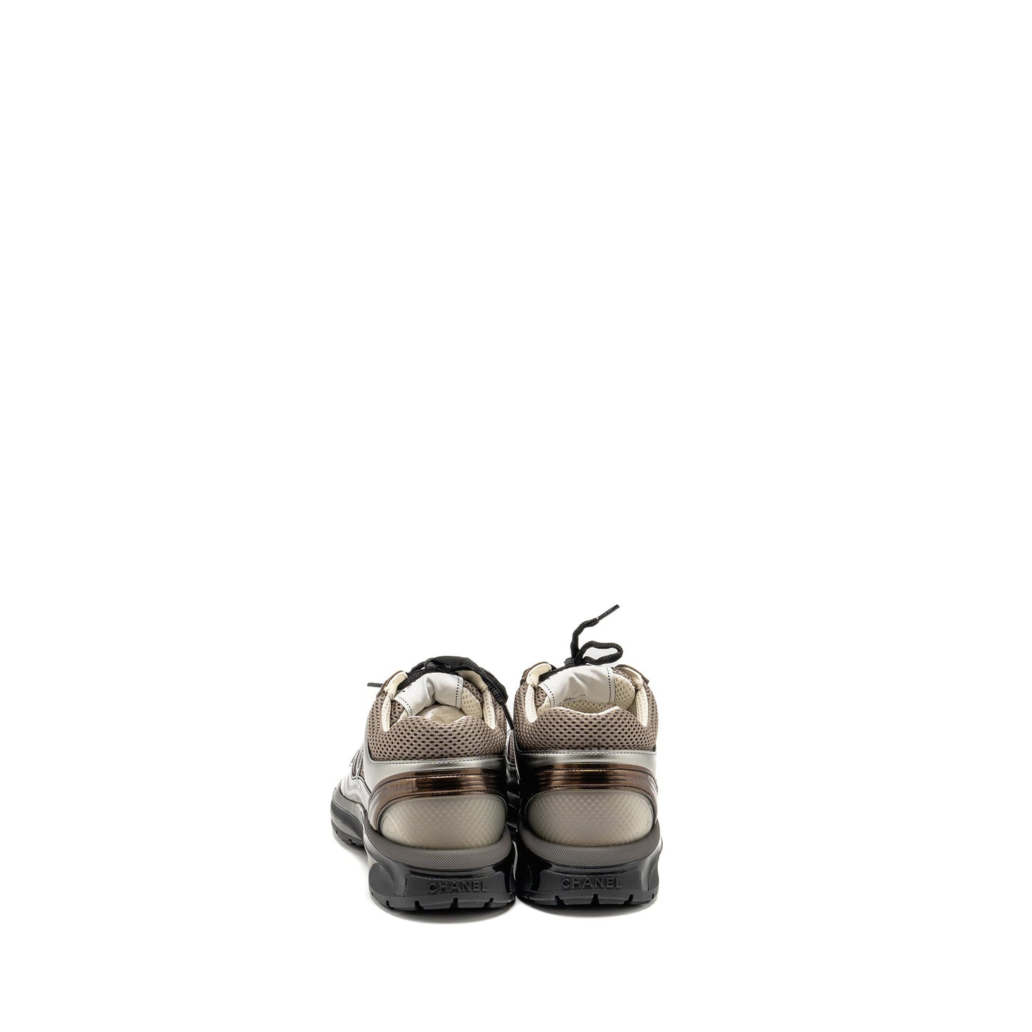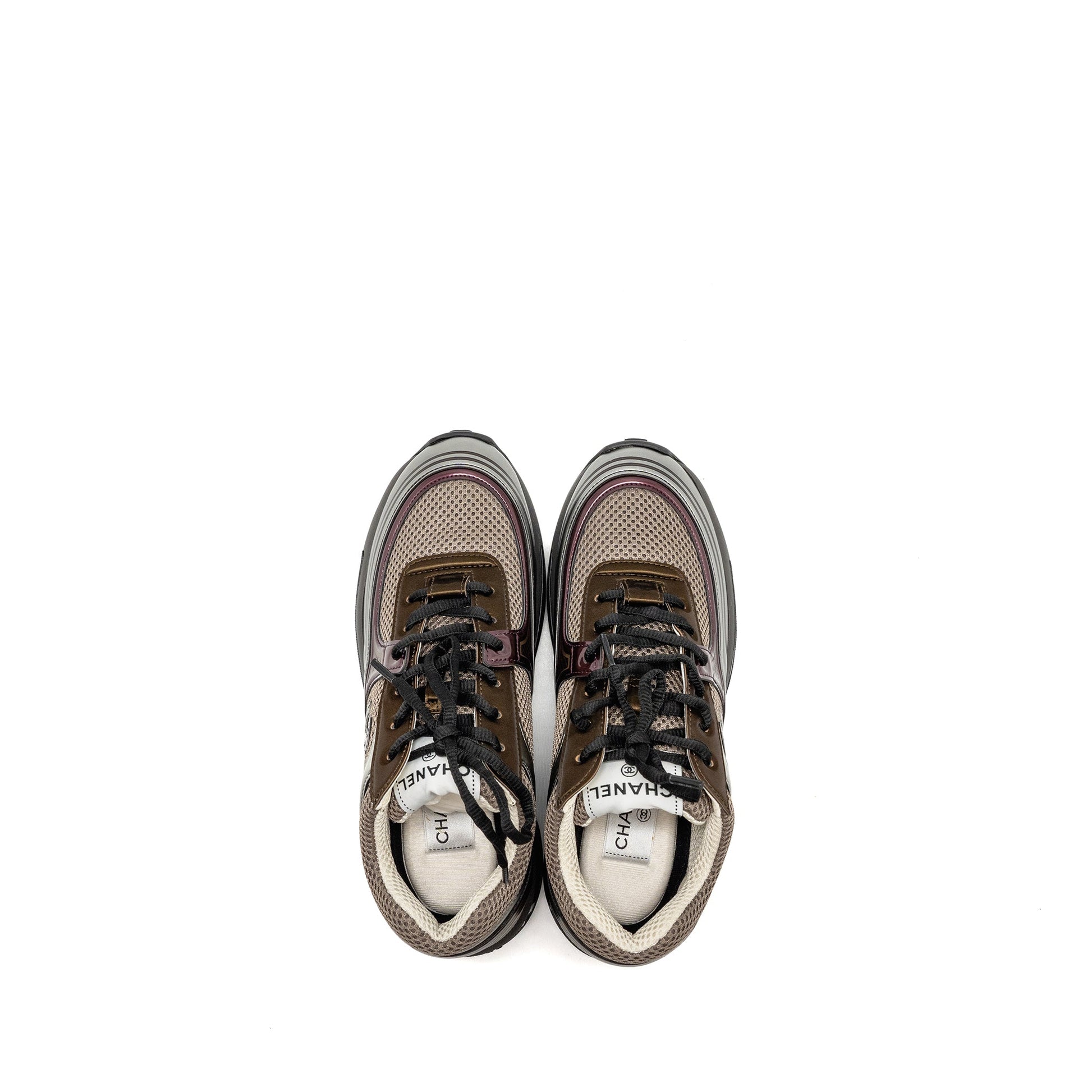 Chanel Size 38 23A CC Logo Sneakers Fabric/Laminated Khaki/Silver/Dark Purple