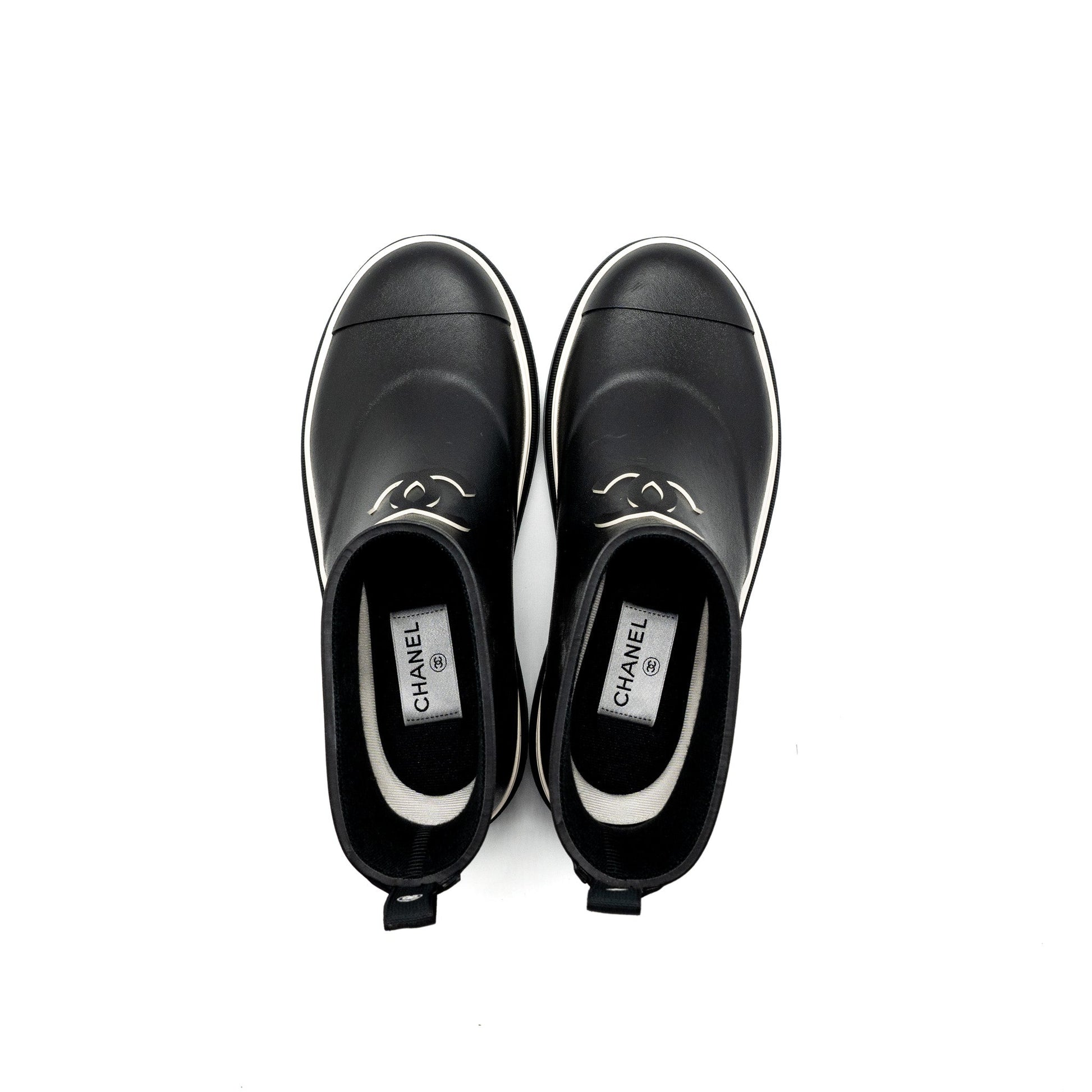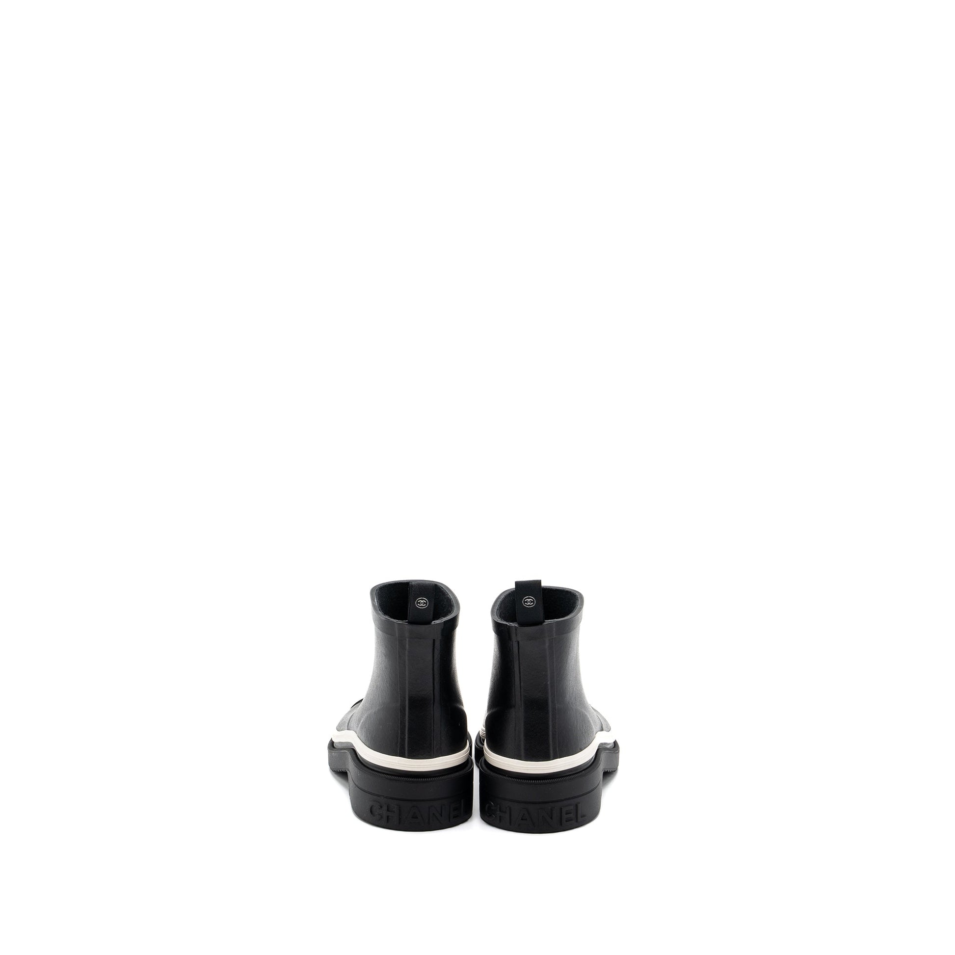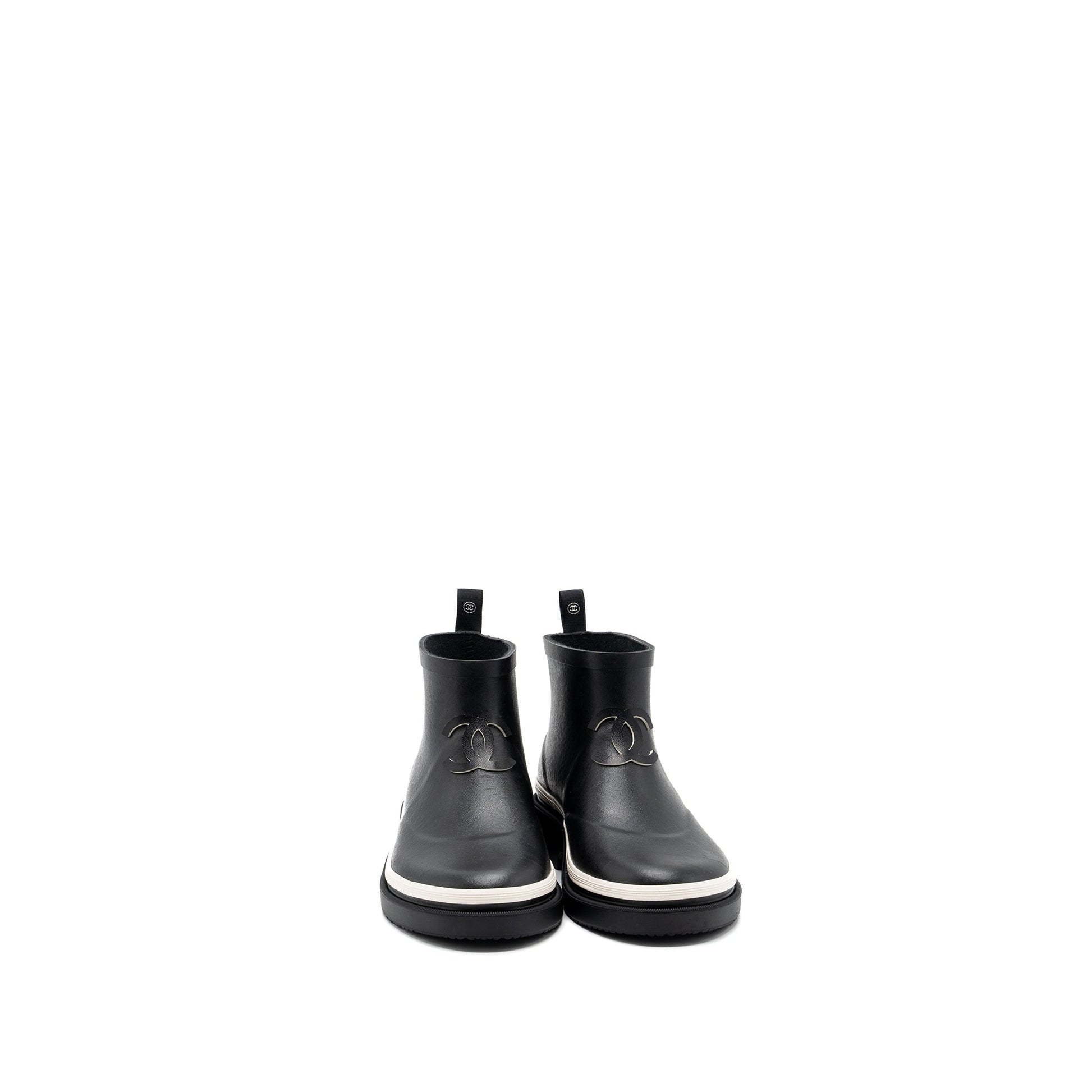 Chanel Size 38 Rubber Ankle Boots Black/ White