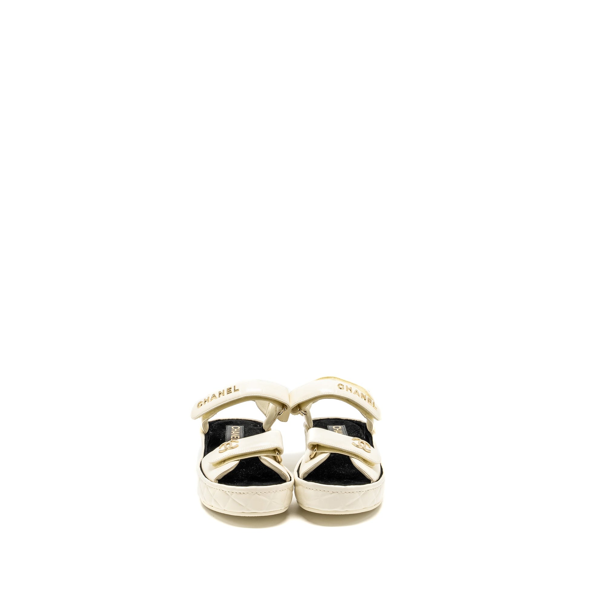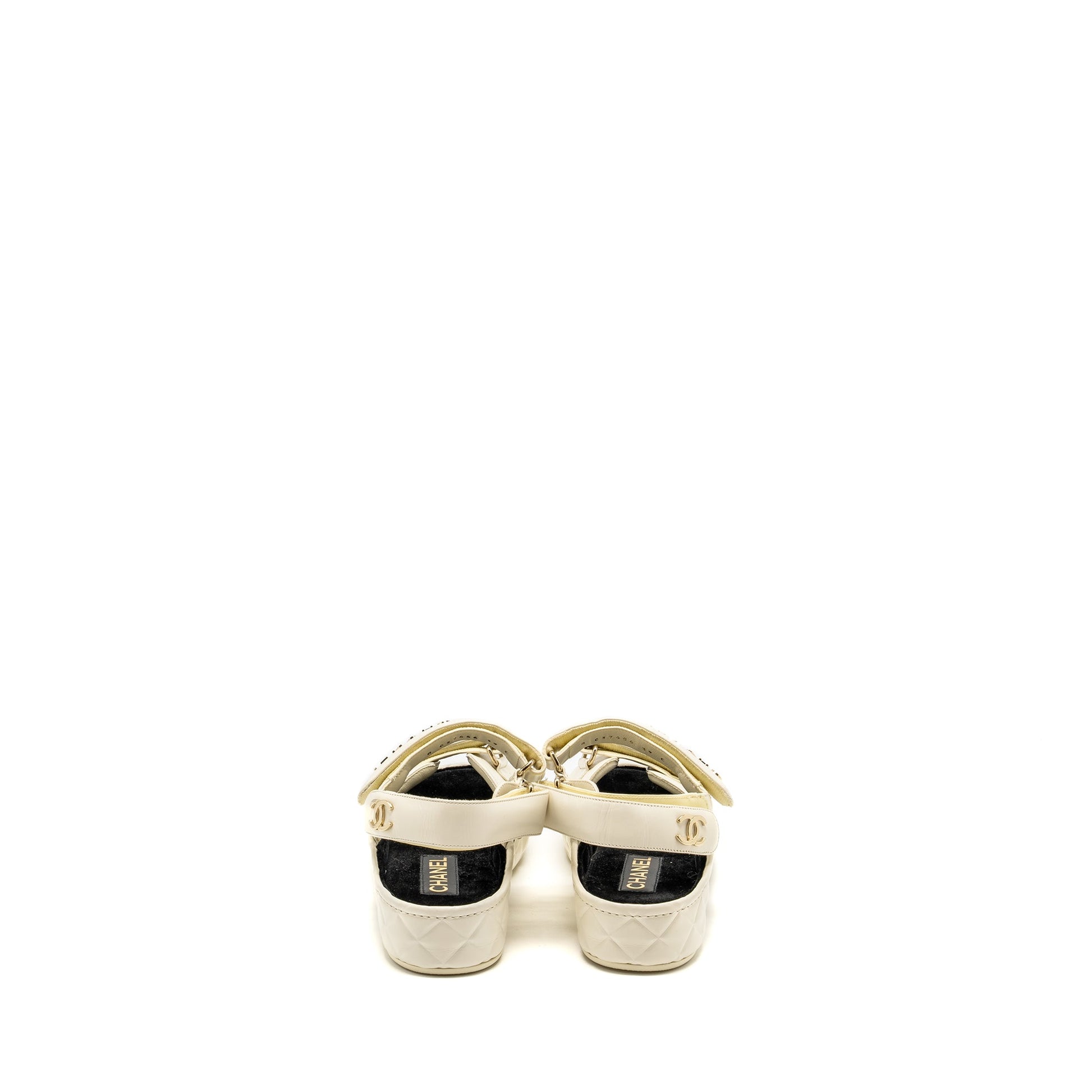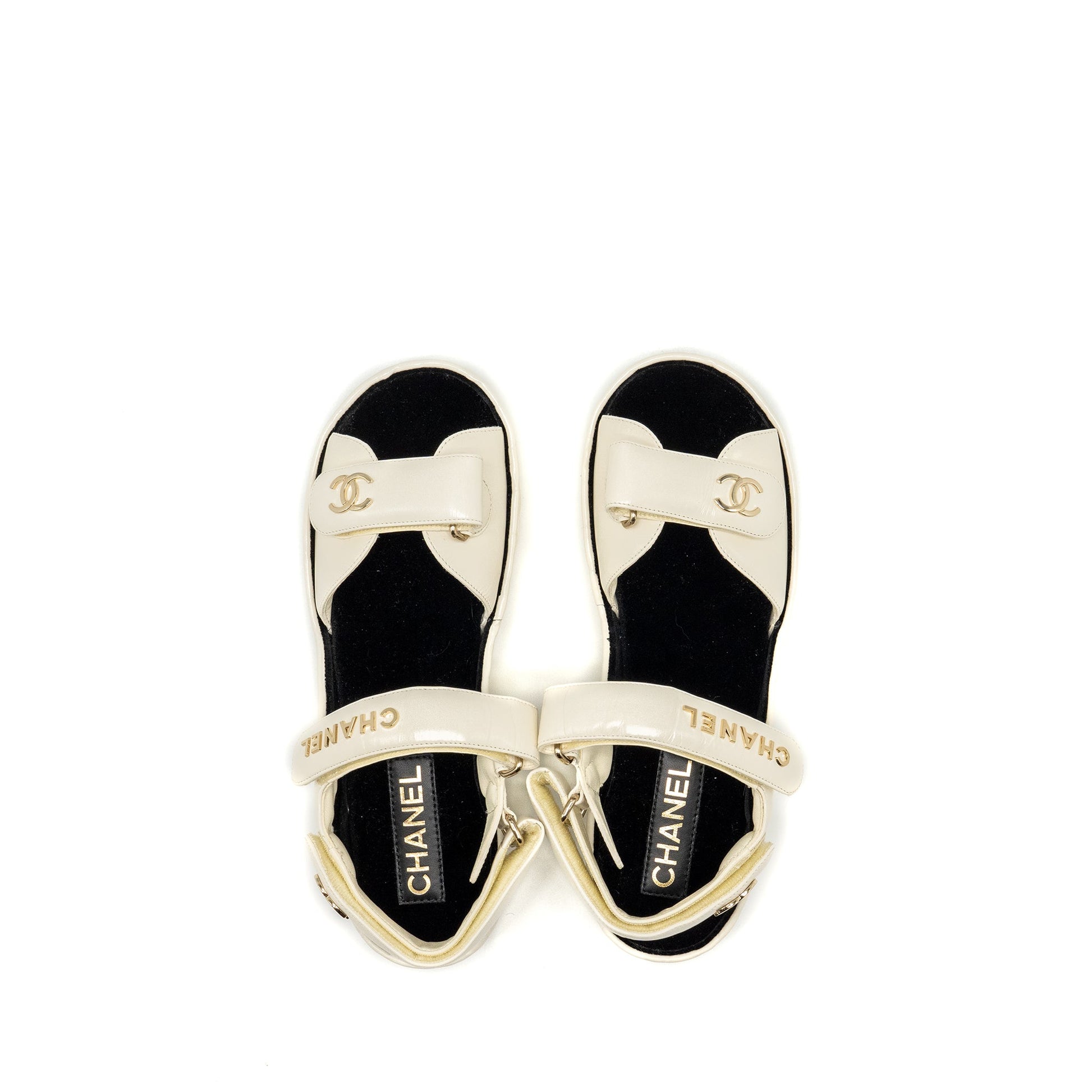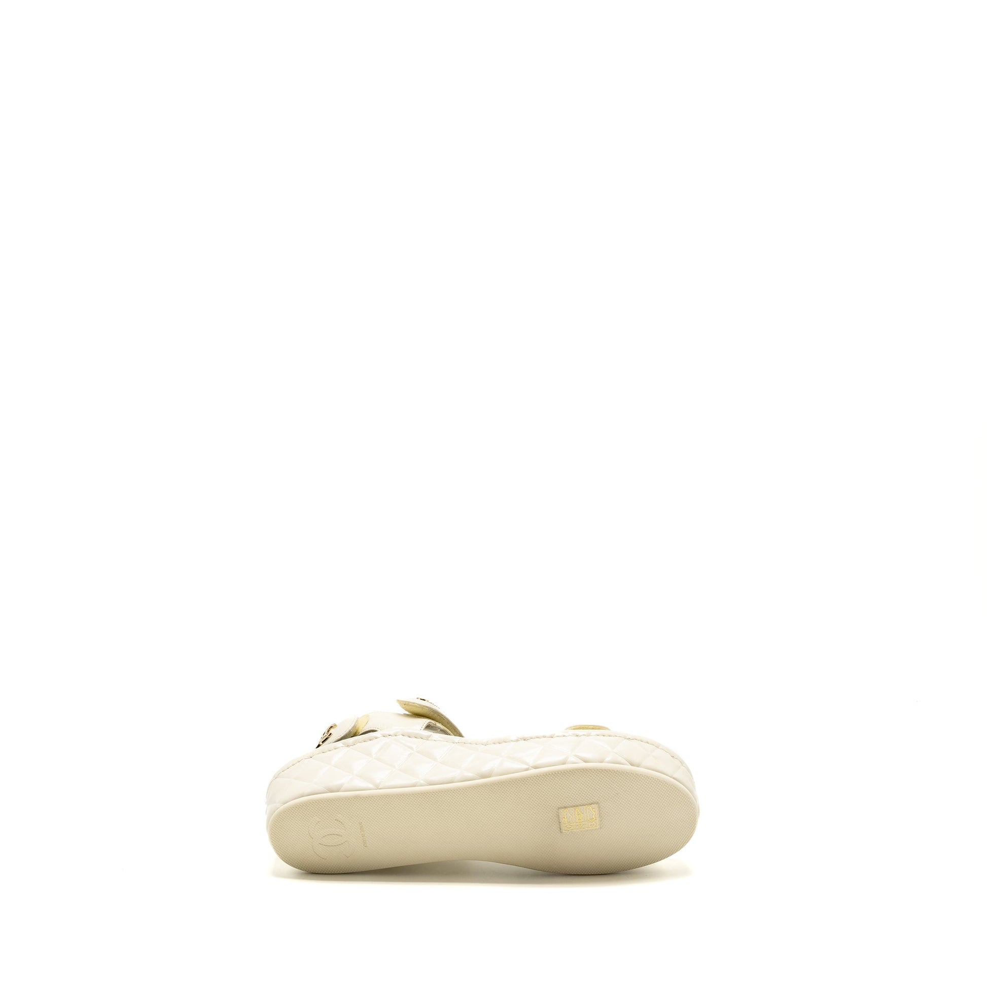 Chanel Size 39 21B CC and Letter Logo Sandals Shiny Calfskin Ivory