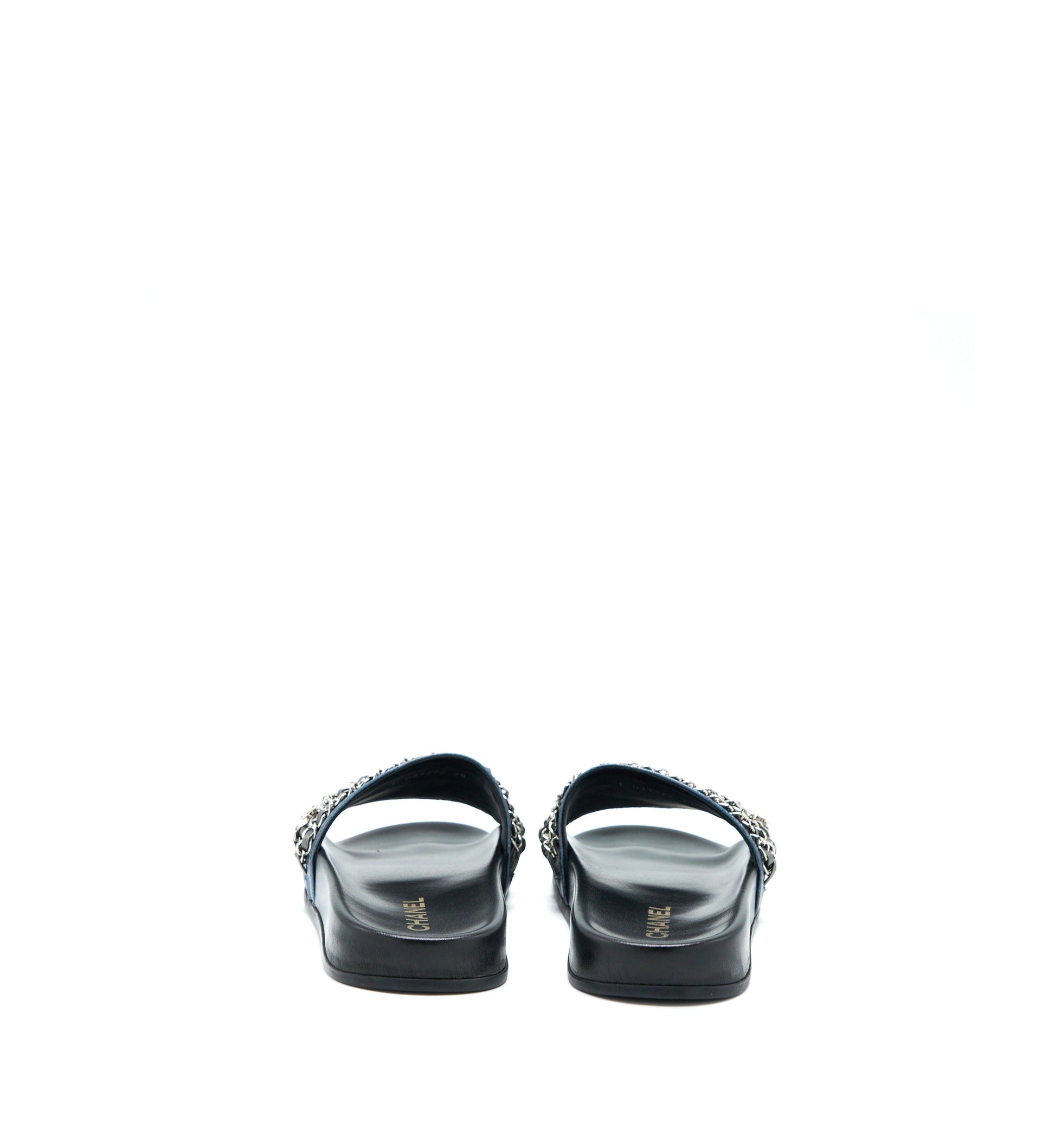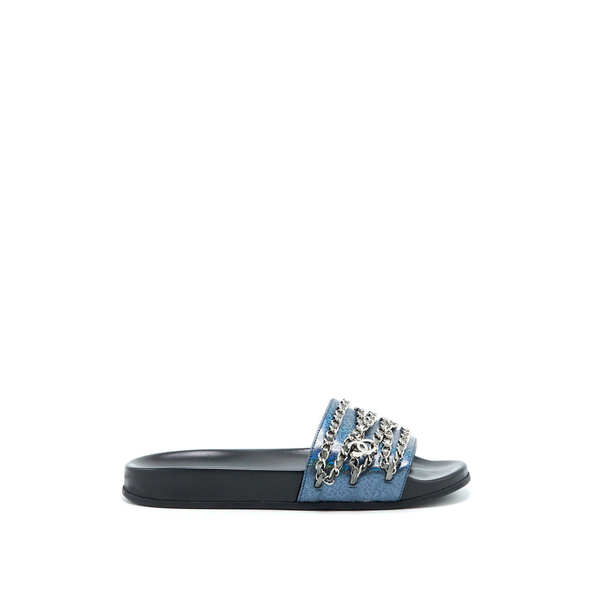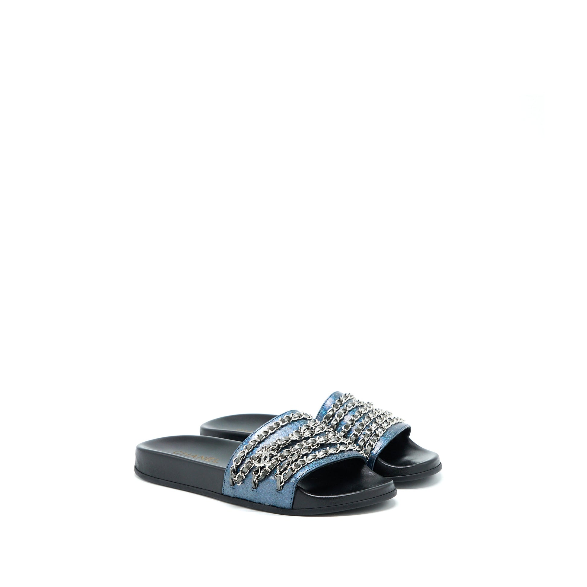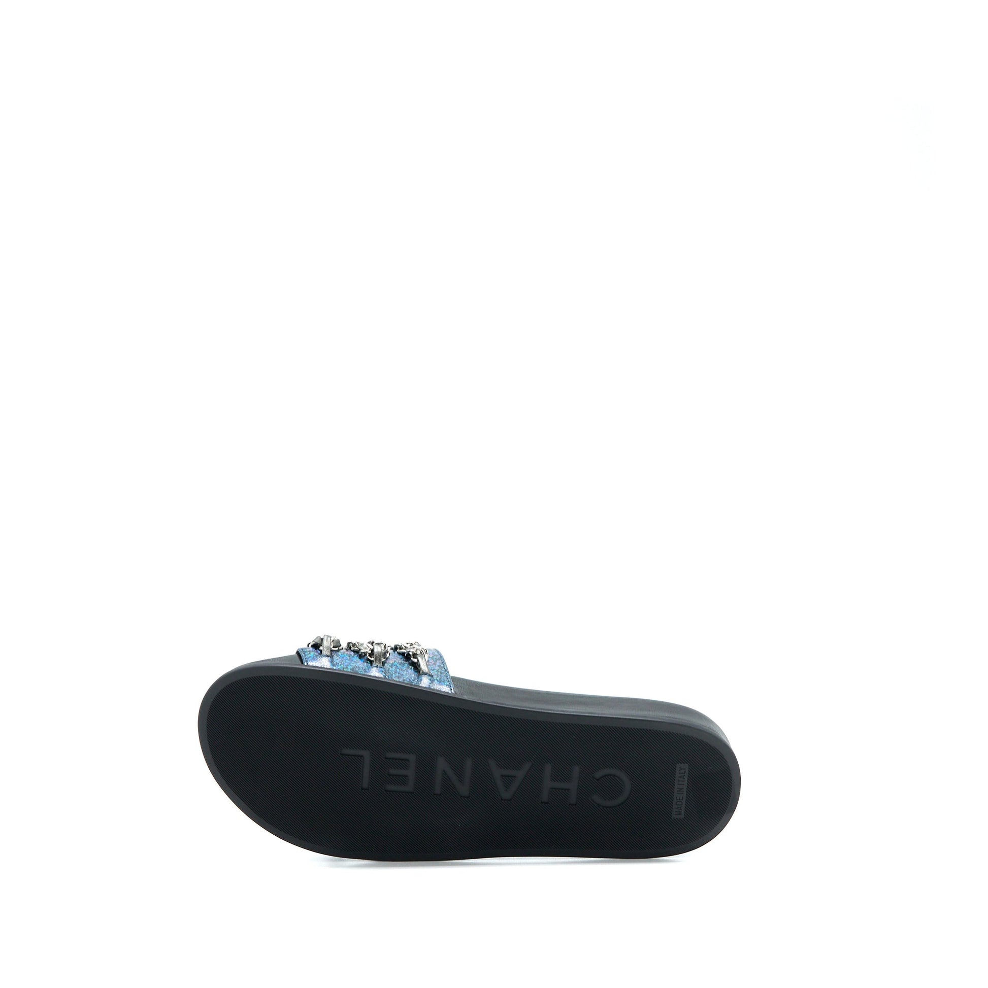 Chanel Size 39 CC Logo Dropped/Leather Chain Sandals Multicolour