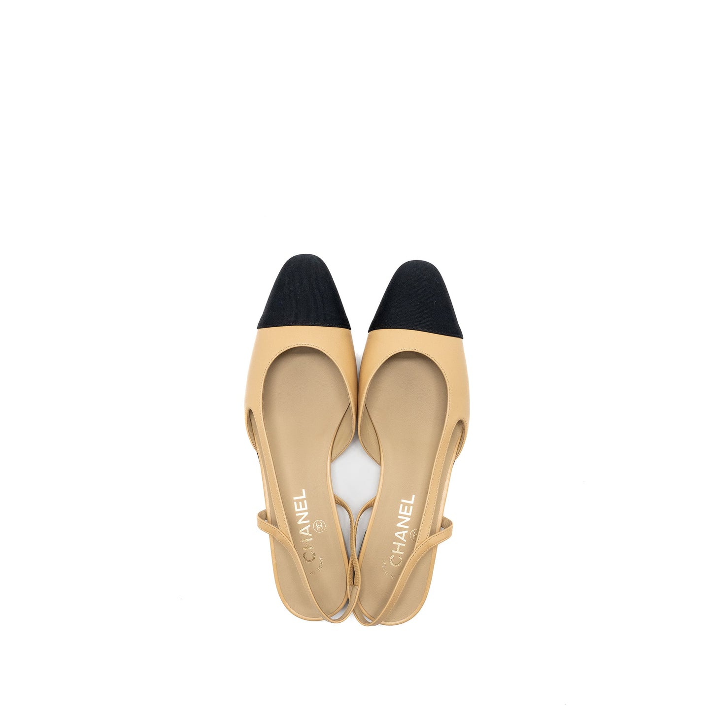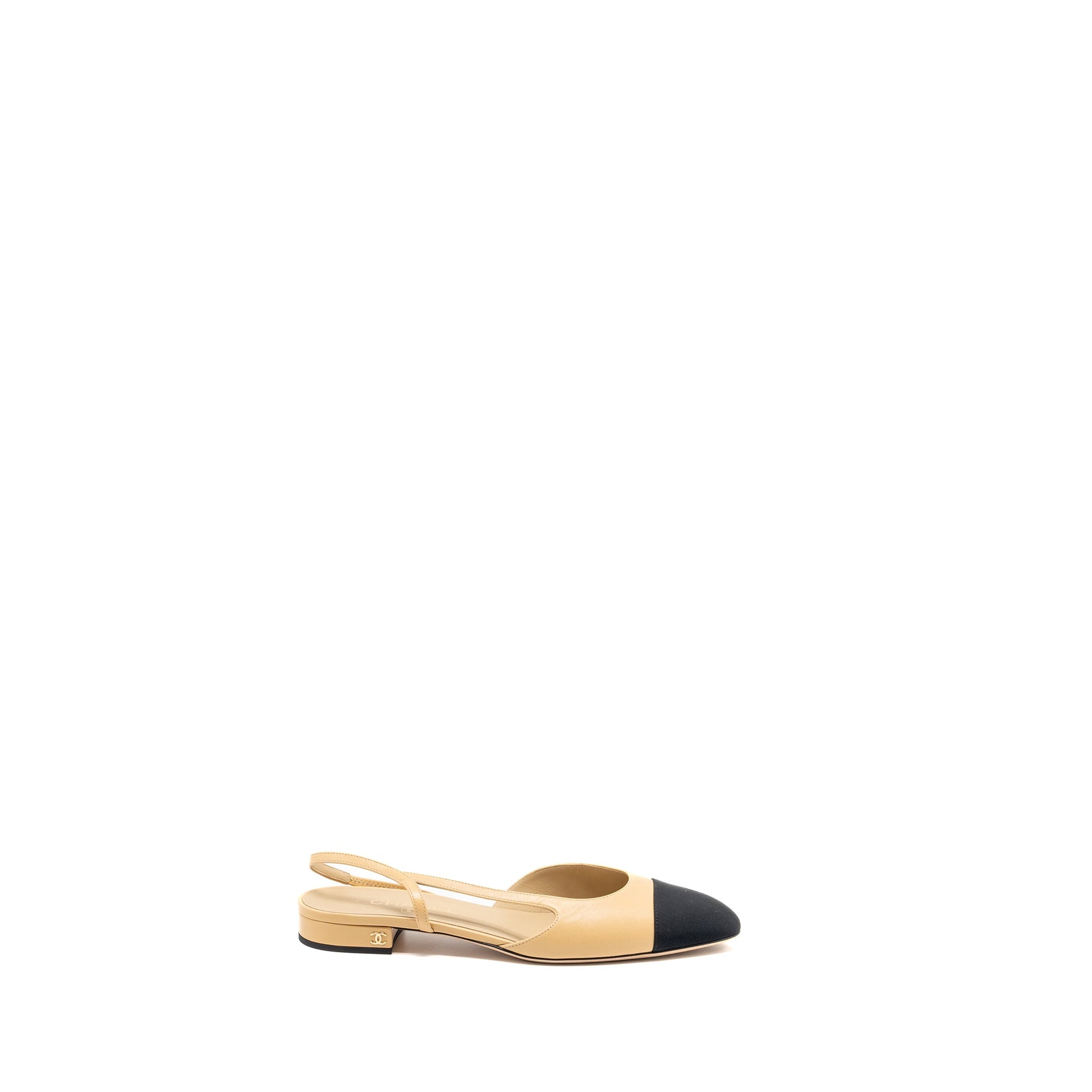 Chanel Size 41.5 Slingback Flats Calfskin Beige/Black