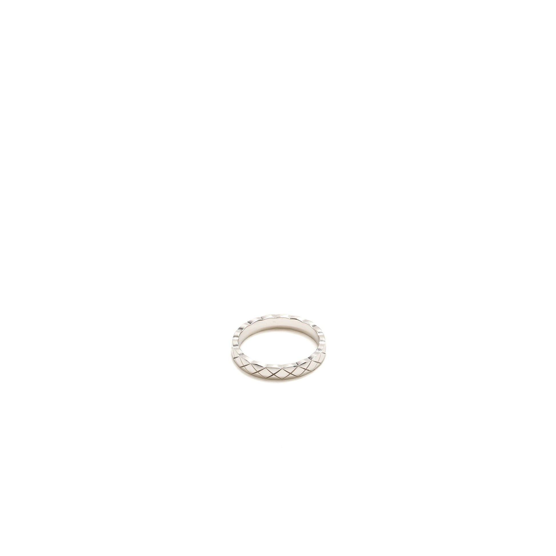 CHANEL Size 52 Coco Crush Ring, Mini Version Quilted Motif White Gold