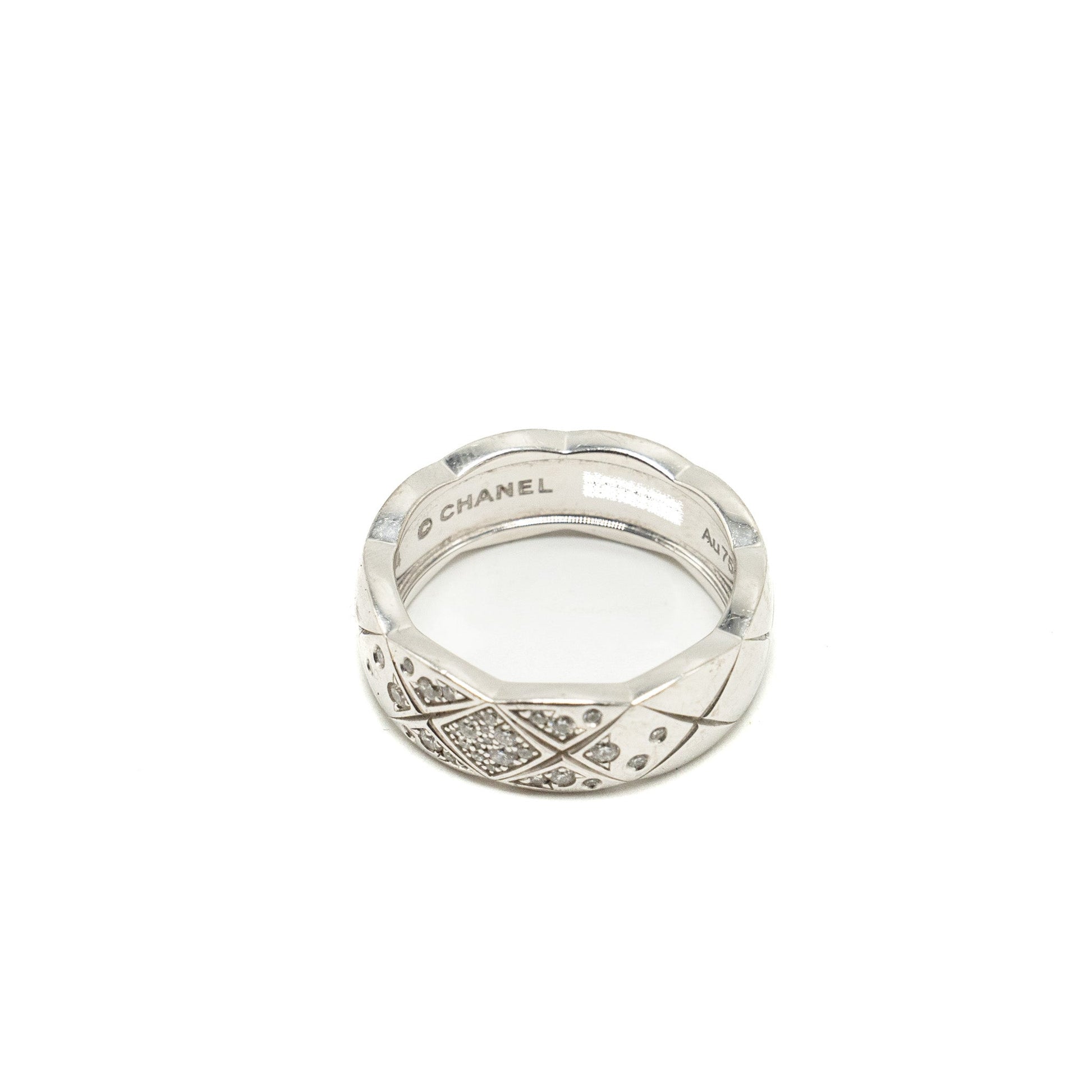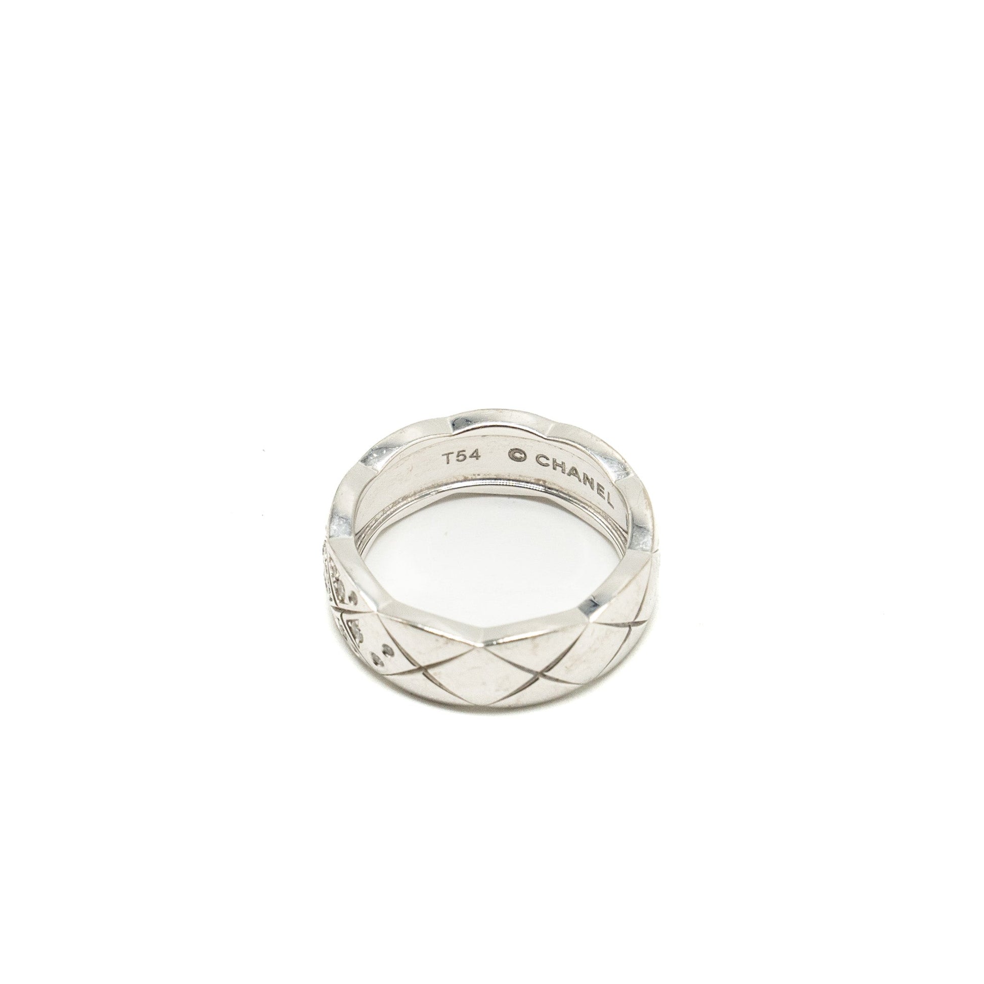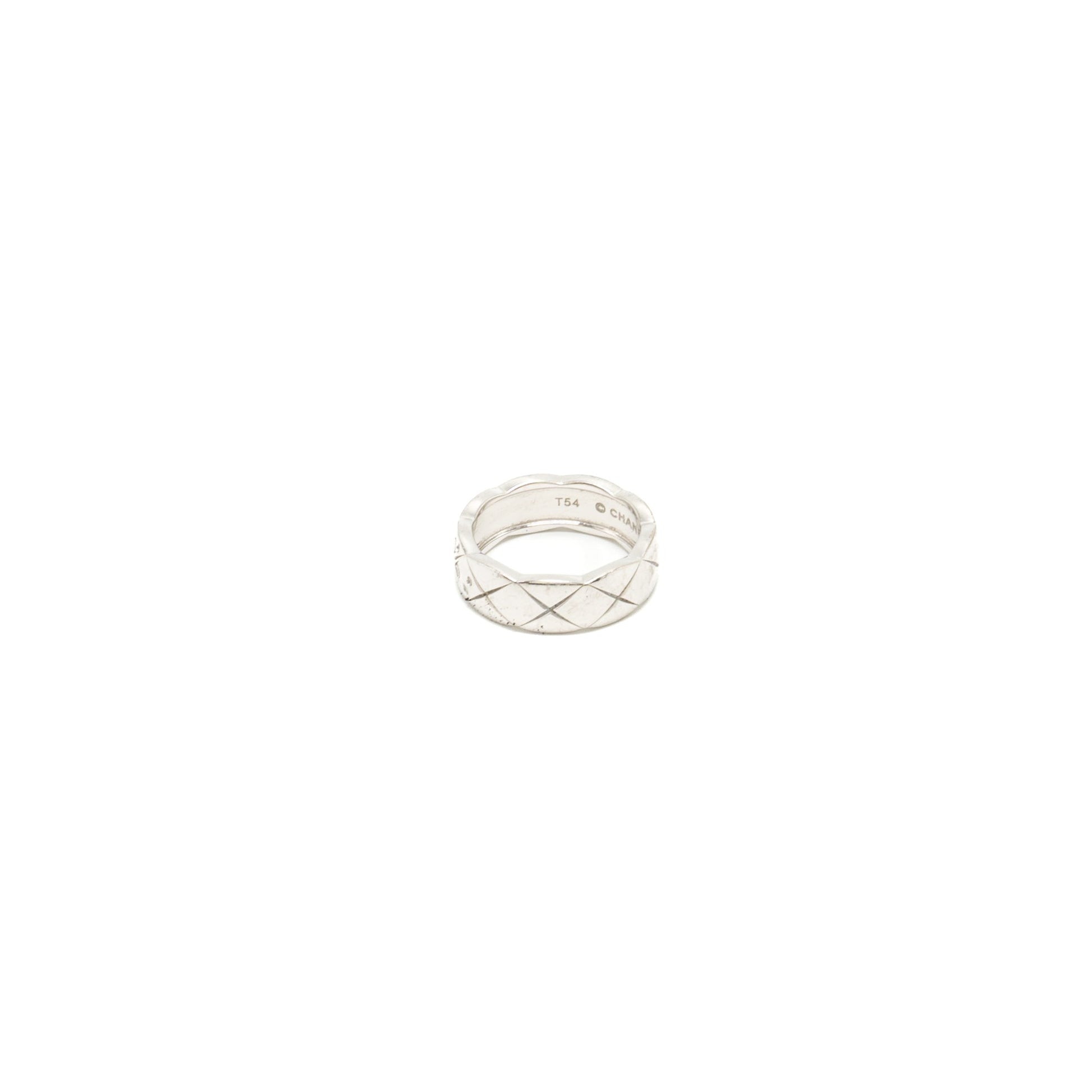 Chanel Size 54 Coco Crush Ring Small Version Quilted Motif White Gold, Diamonds