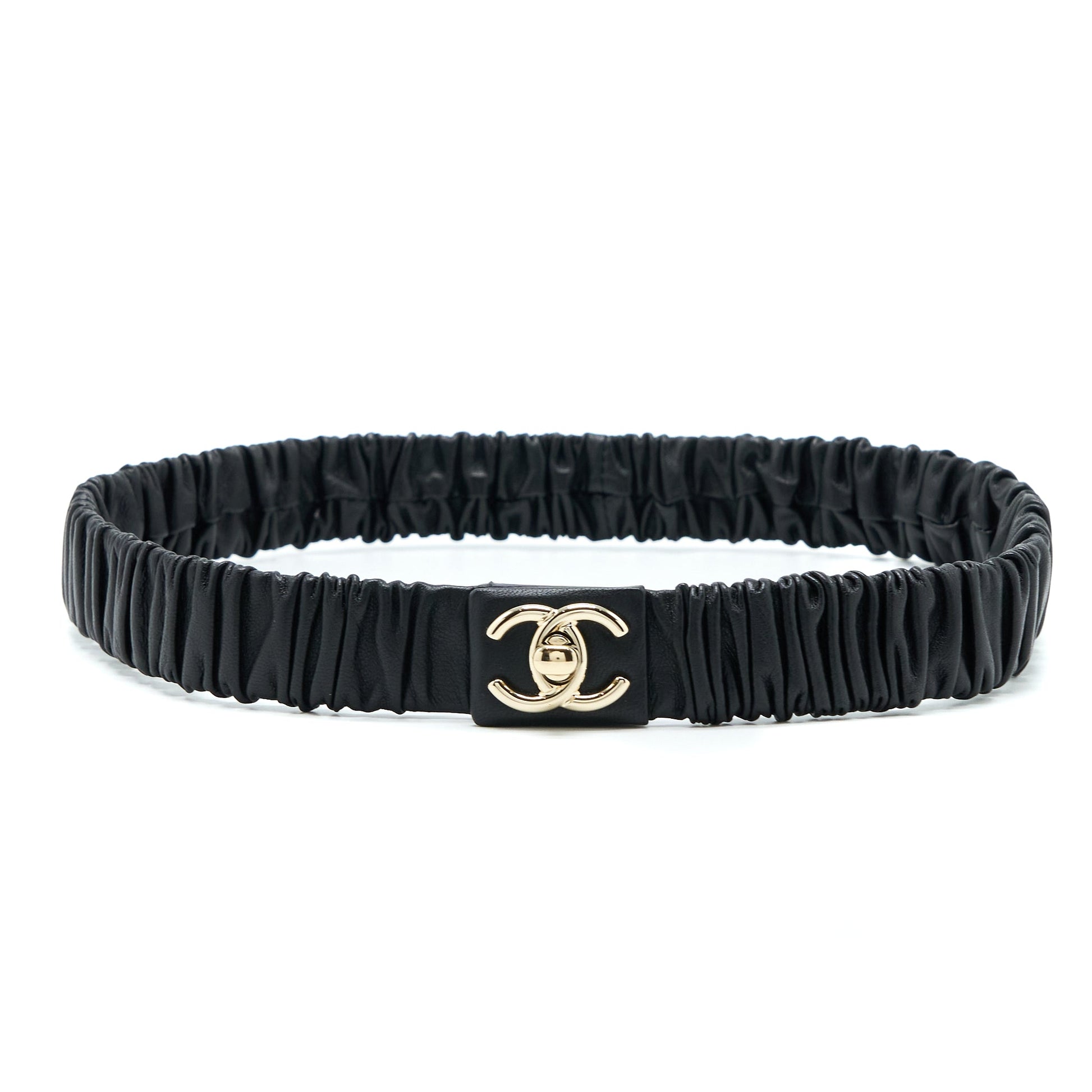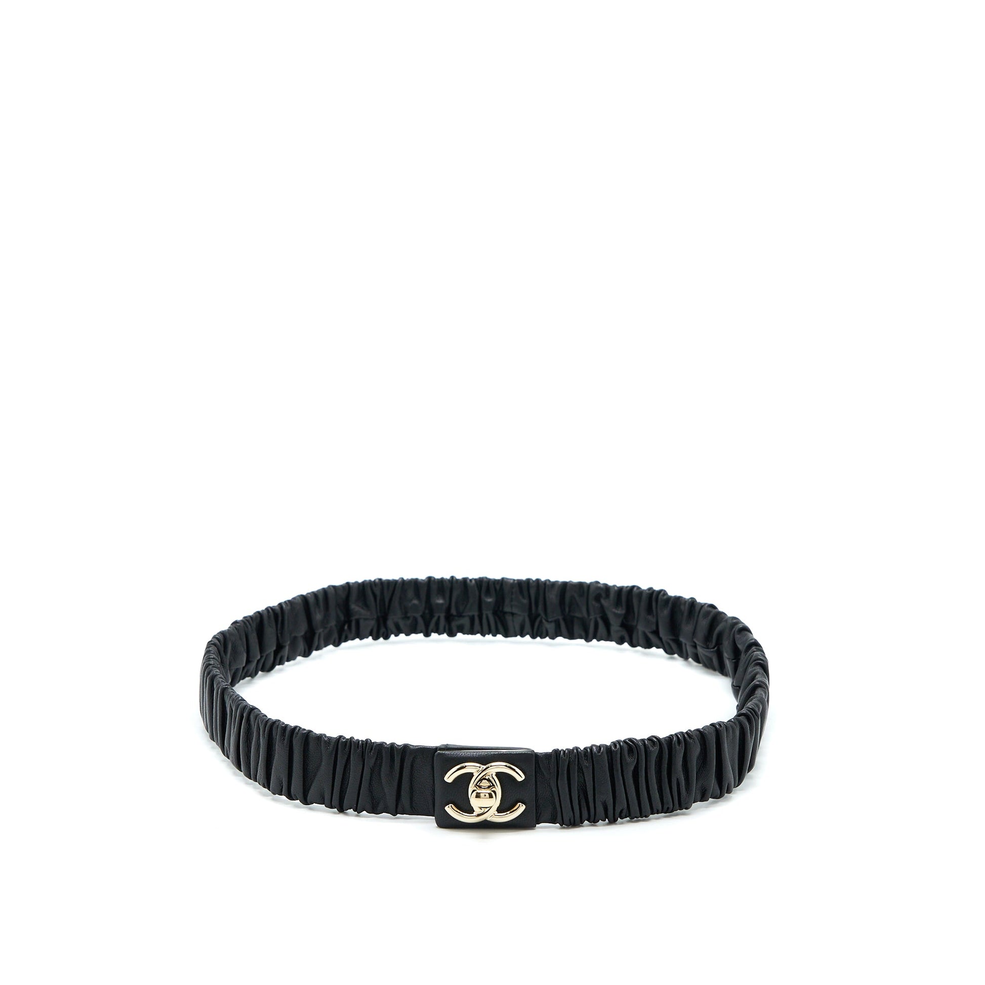 Chanel Size 75 CC Logo Belt Lambskin Black Light Gold Tone