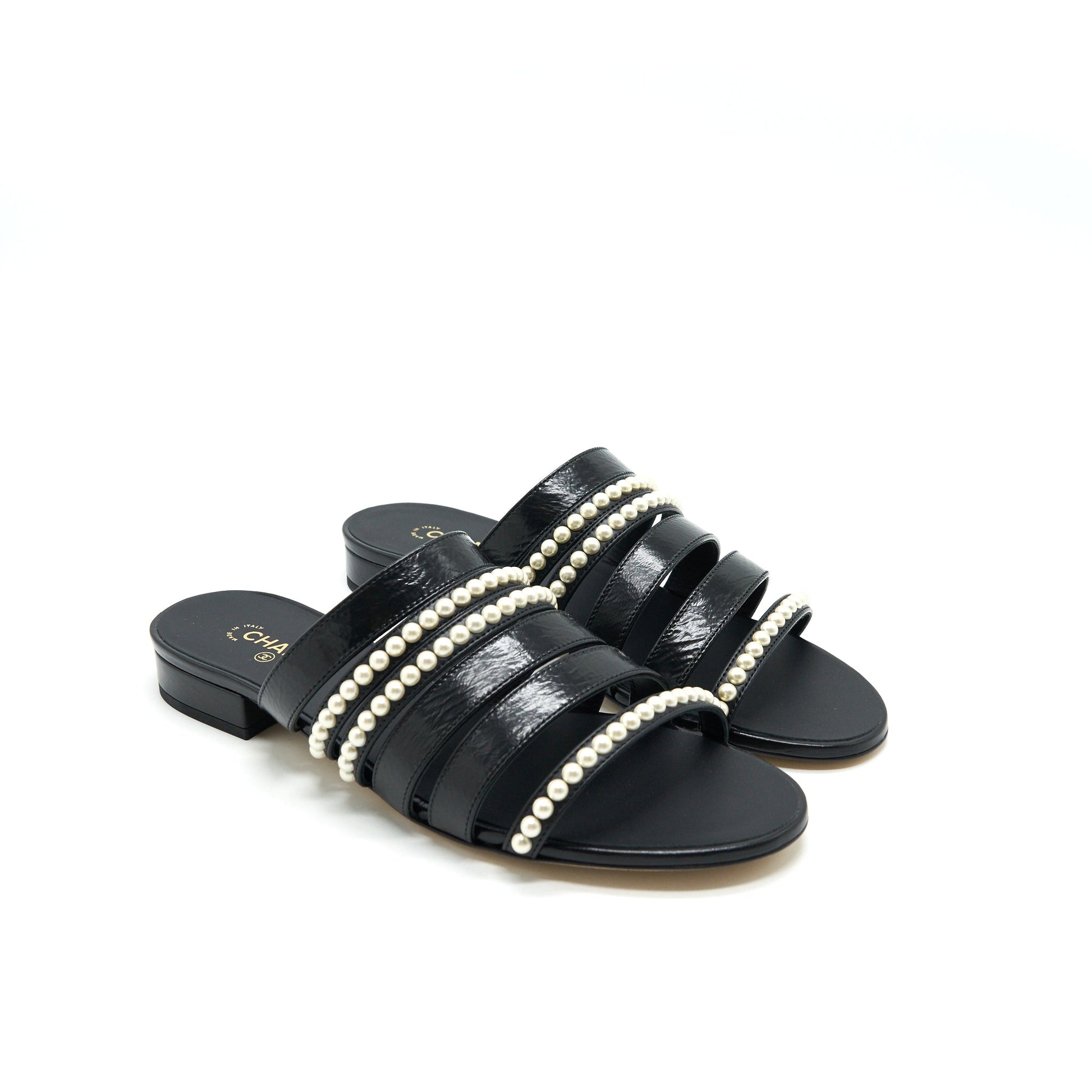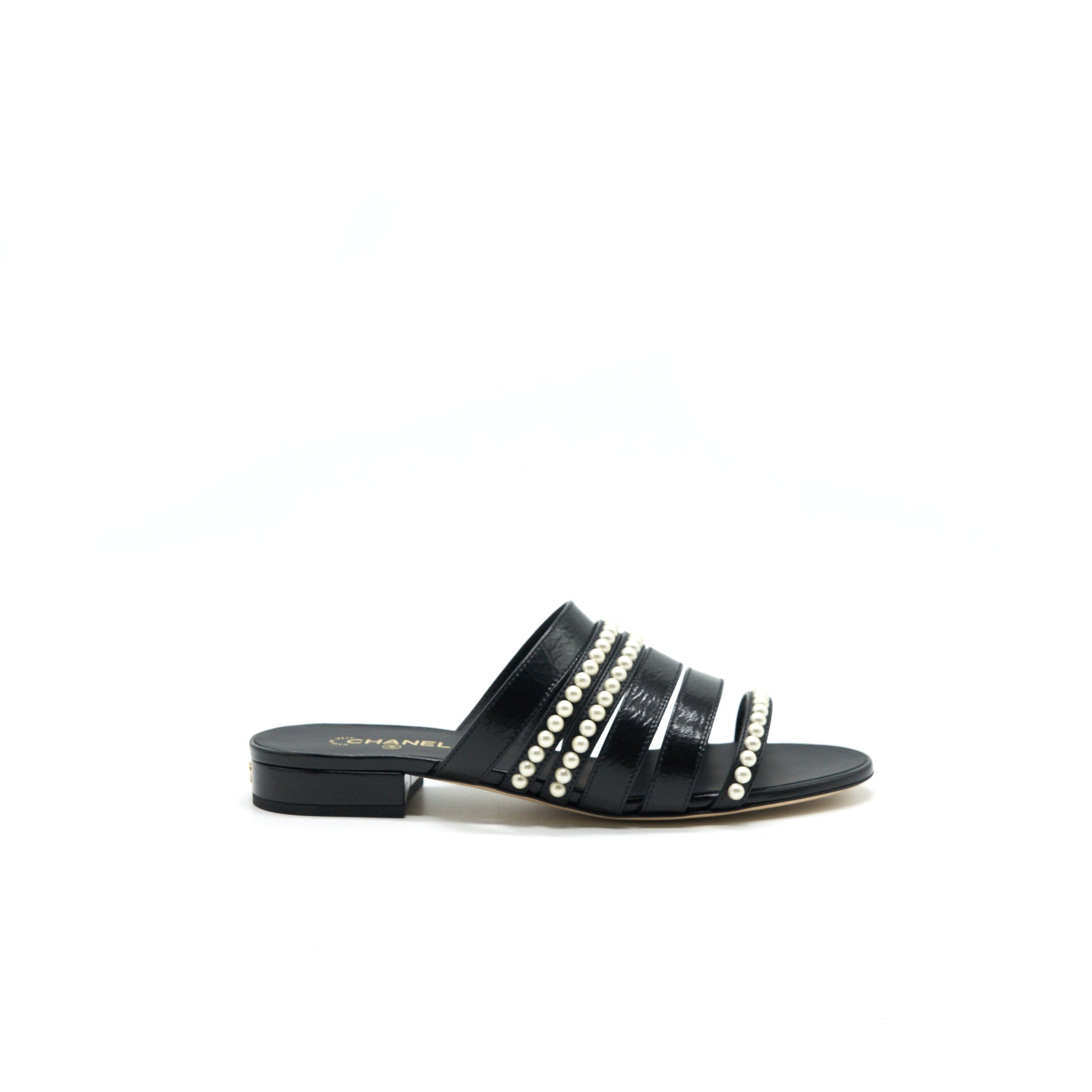 Chanel size37 Leather and pearl sandal black