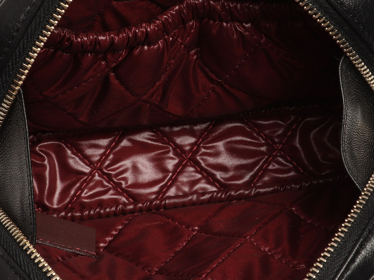 Let your makeup take a walk on the sexy side with this Chanel Small Black Lambskin Curvy Cosmetic Case! Made of buttery-soft diamond-quilted lambskin, it's paired with silver-tone hardware in the CC detail on the front face and top zipper that opens to burgundy washable-fabric lining with one slide inside. In great condition from 2016, it comes with a box and card and has a few marks on the leather bottom. This super-cute carry does double duty as a clutch!