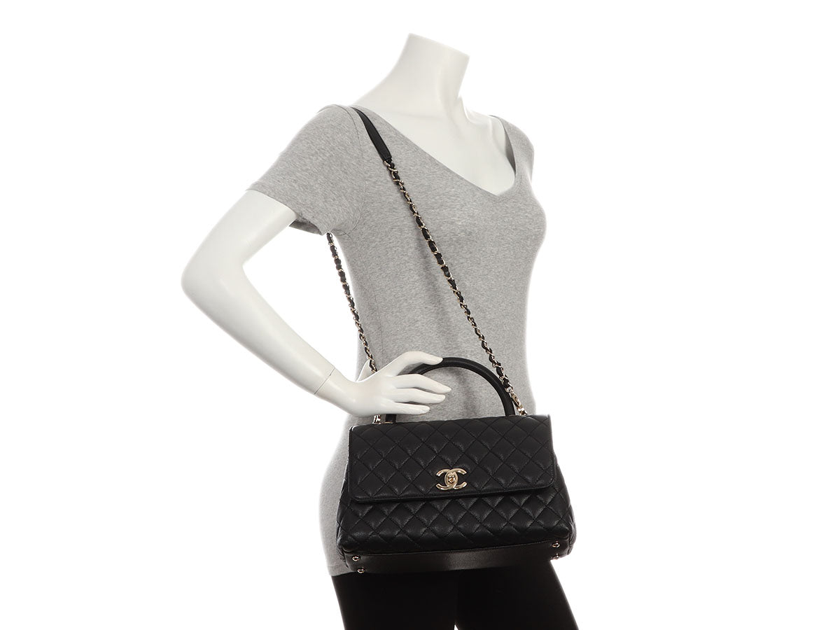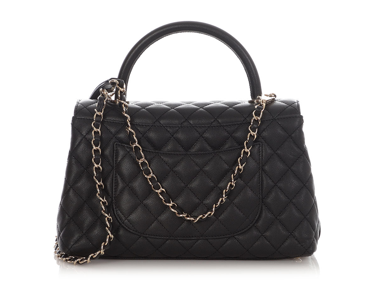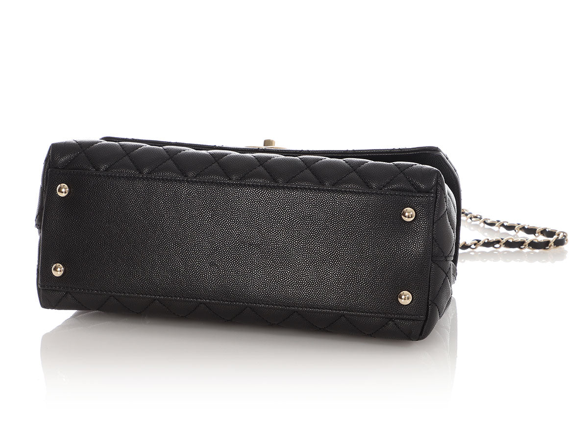 This Chanel Small Black Quilted Caviar Coco Top Handle gives you the best of both worlds—a top handle and a crossbody strap all rolled into one gorgeous carry! Crafted from diamond-quilted Caviar leather with light gold hardware, it features a structured top handle with a 3-inch drop and a detachable leather-through-chain strap with a generous 18-inch drop. The flap secures with a CC logo turnlock and opens to a burgundy leather interior with a center zippered section, two slide pockets in the front, and one zipped pocket in the back. You’ll also find one slide pocket on the back face for quick-access essentials. In great condition from 2024, it comes with a dustbag and box, and has wear on the turnlock and hardware, and a little wear inside. It’s a Coco-approved look no matter how you style it!