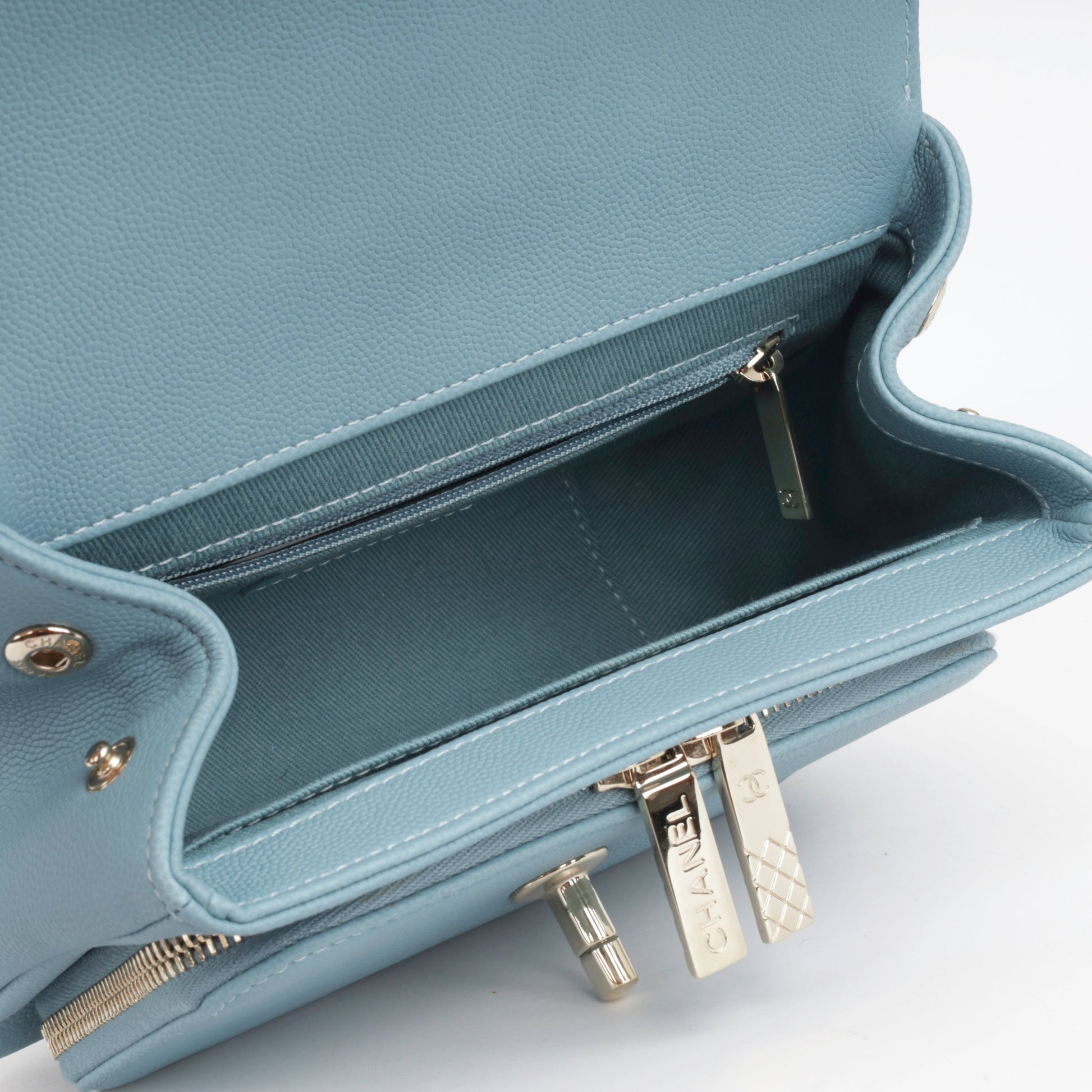For timeless elegance and Parisian-chic, there is no better label to wear than Chanel. This stunning small Affinity Business bag has a sophisticatedly elegant and feminine design. With a crossbody chain, it is comfortable to wear and in the timeless combination of matte teal caviar leather and champagne gold hardware, it will never go out of style.