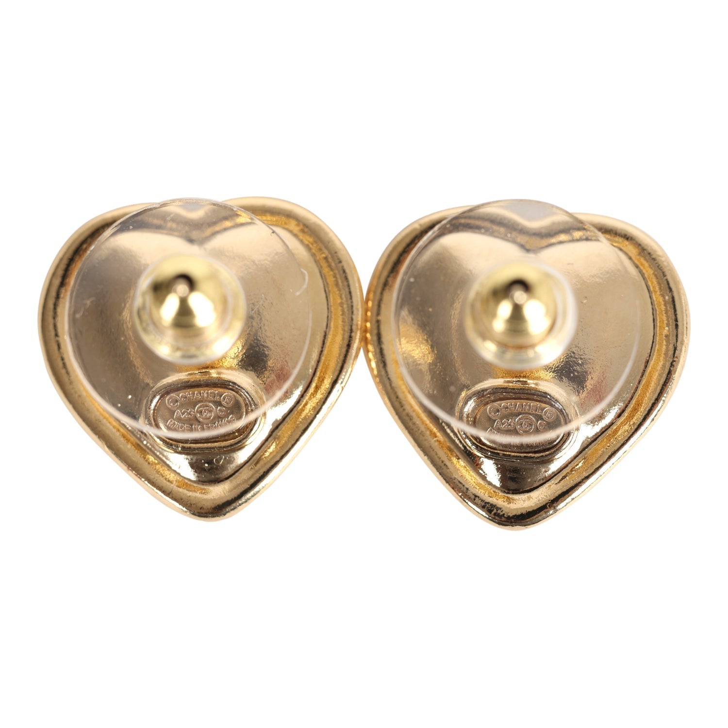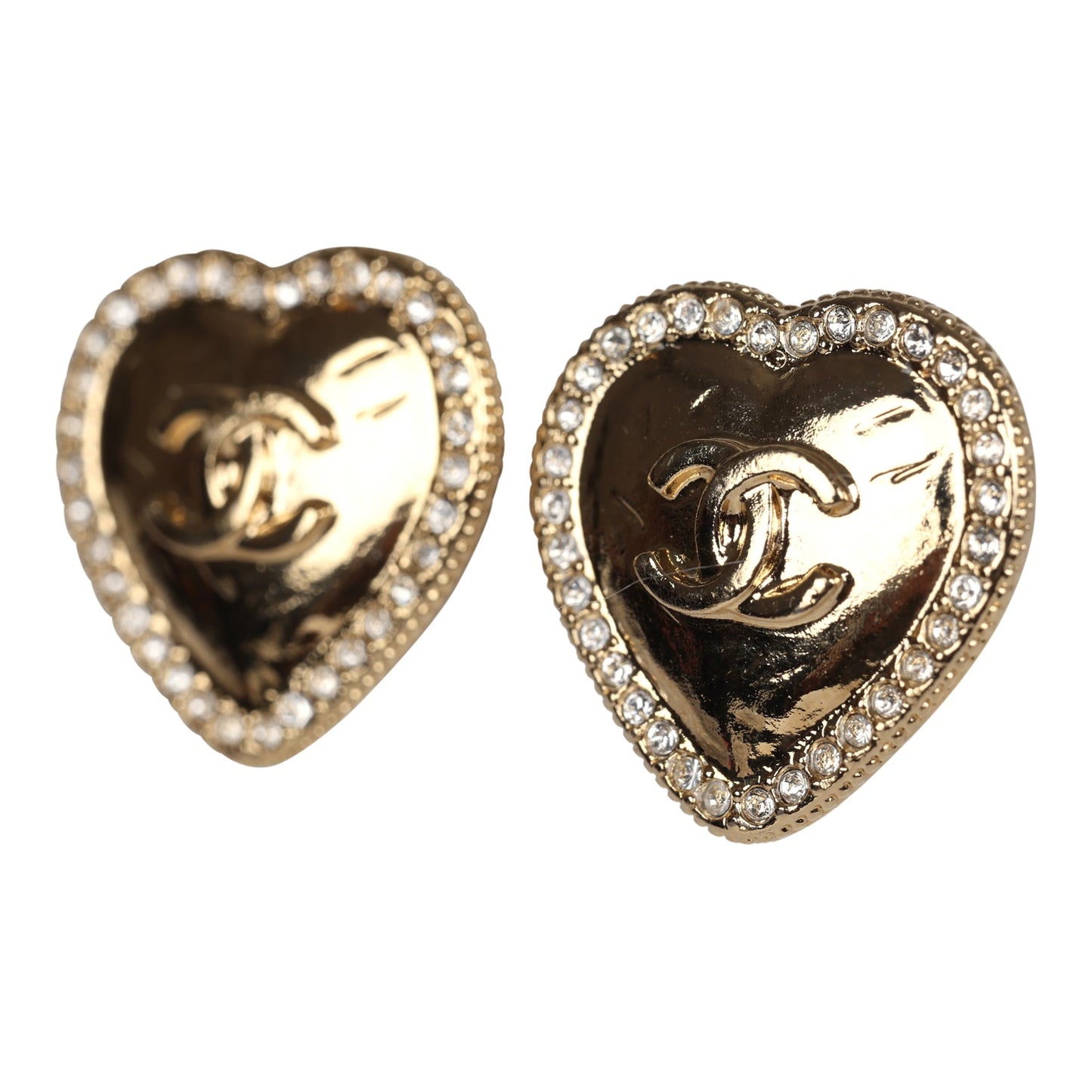 Chanel Small CC Crystal Heart Earrings Gold Hardware