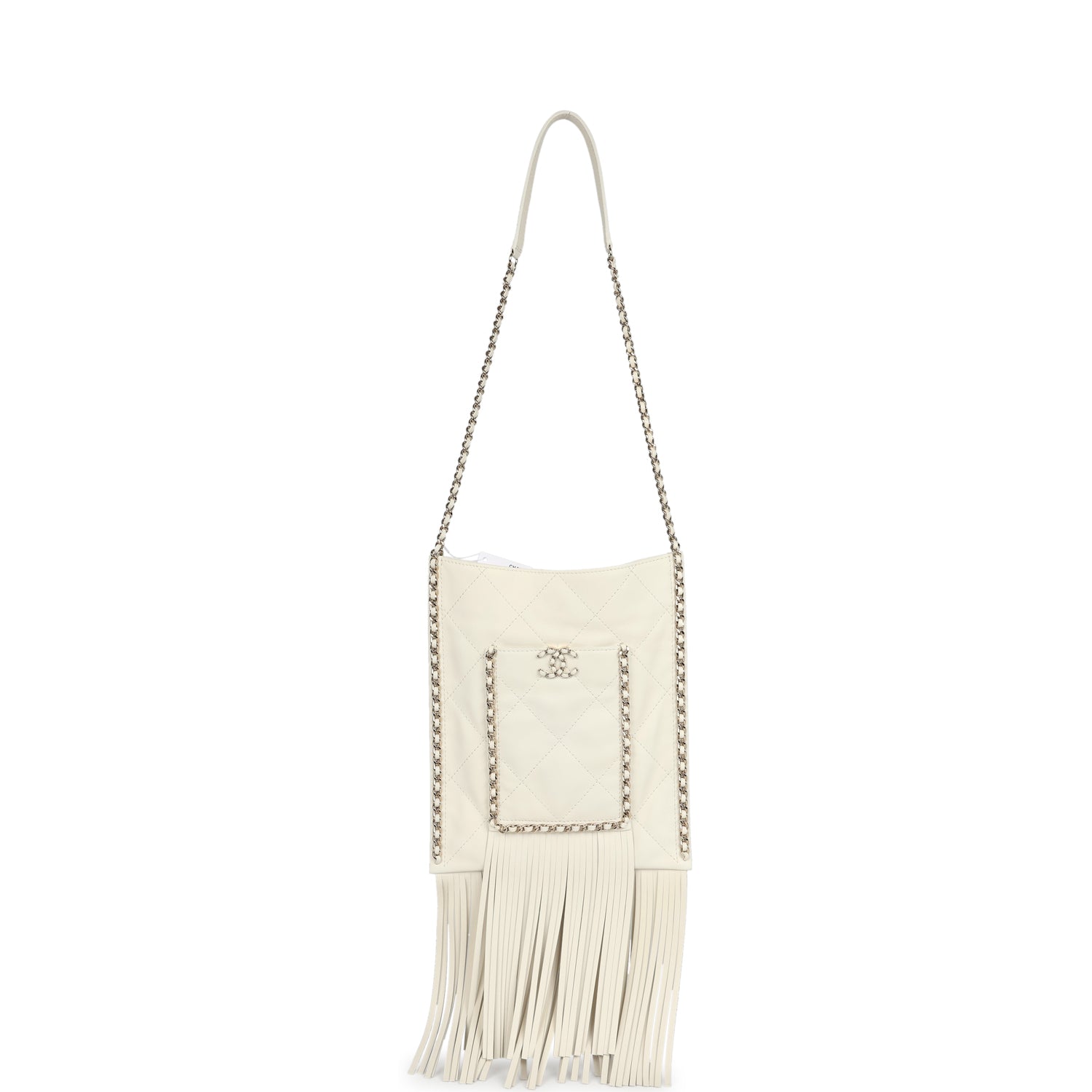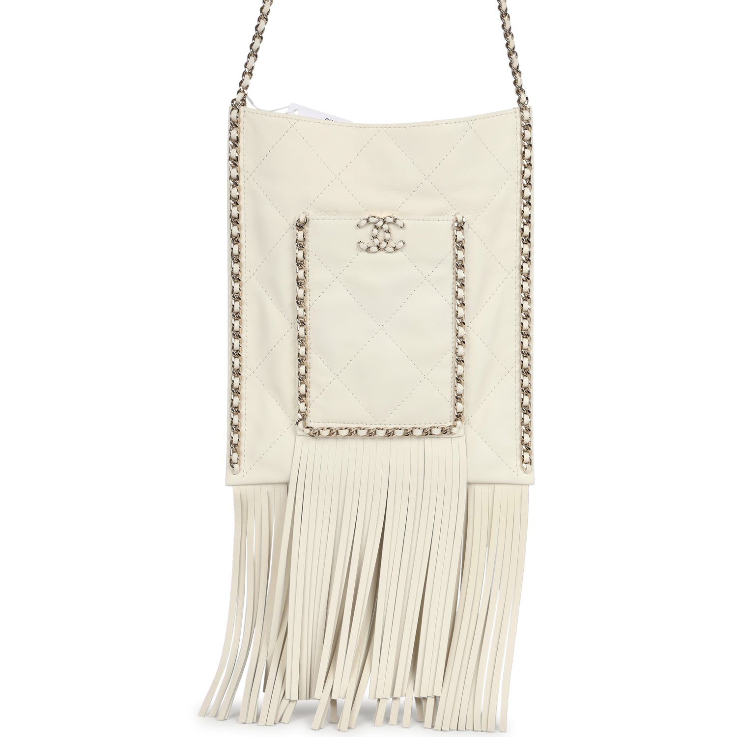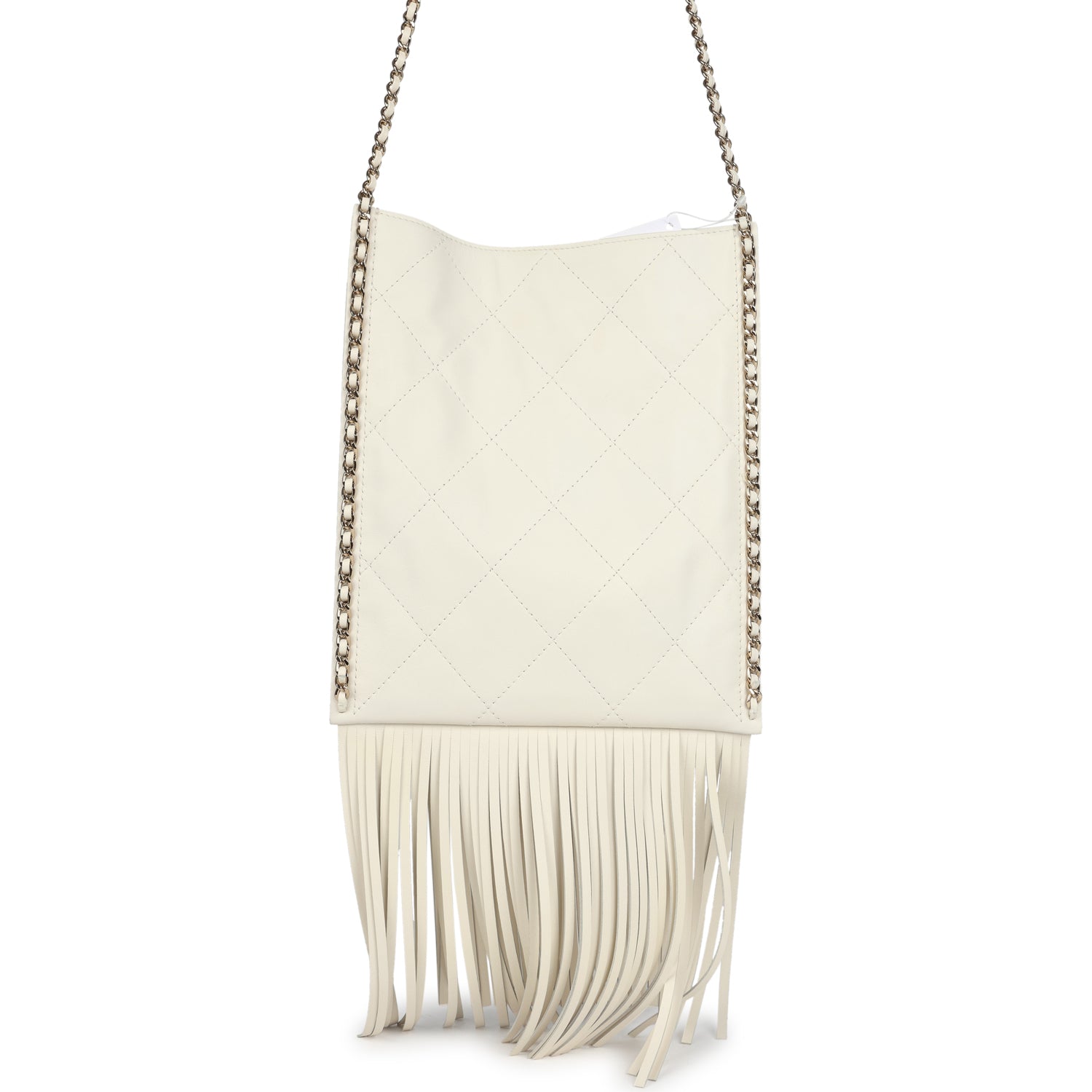 Chanel Small CC Fringe Shopping Bag White Calfskin Light Gold Hardware