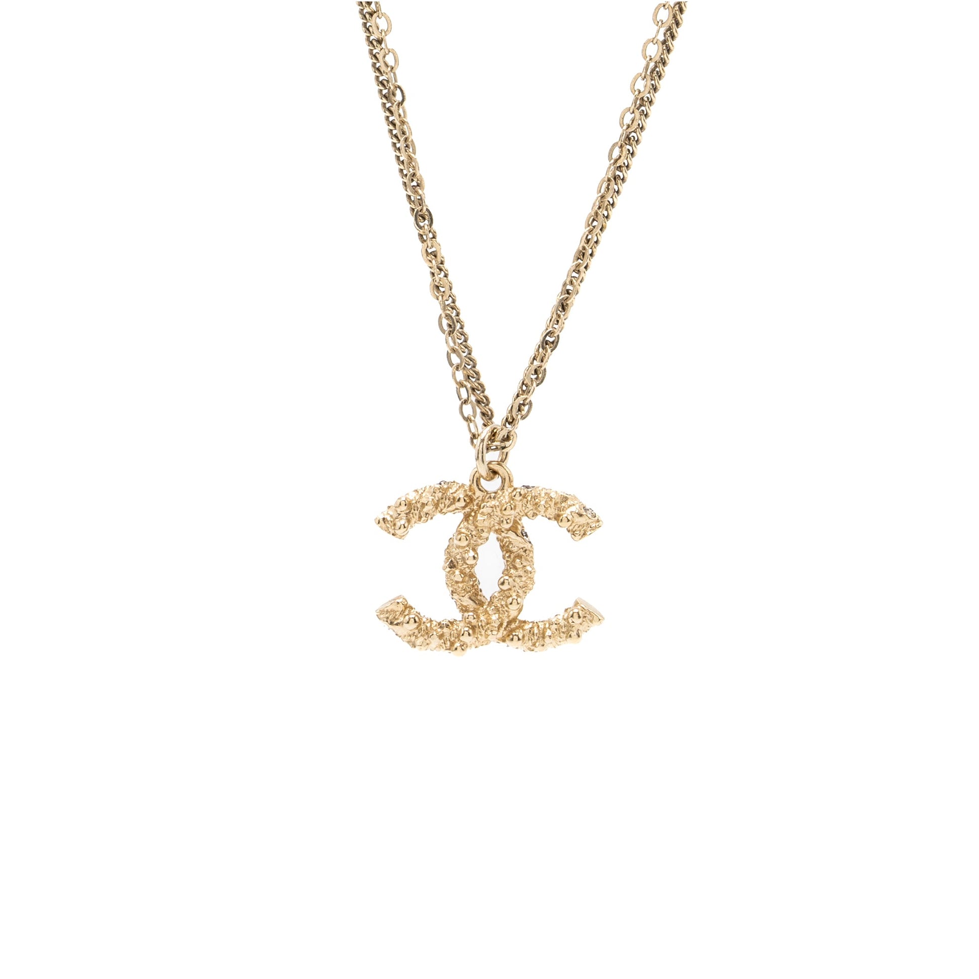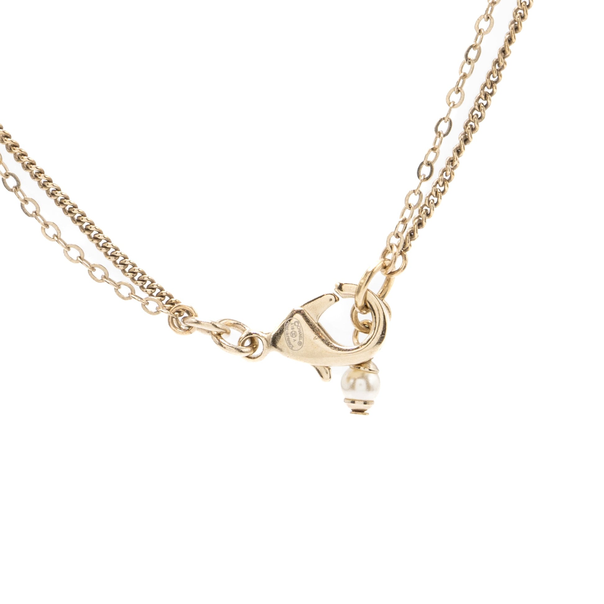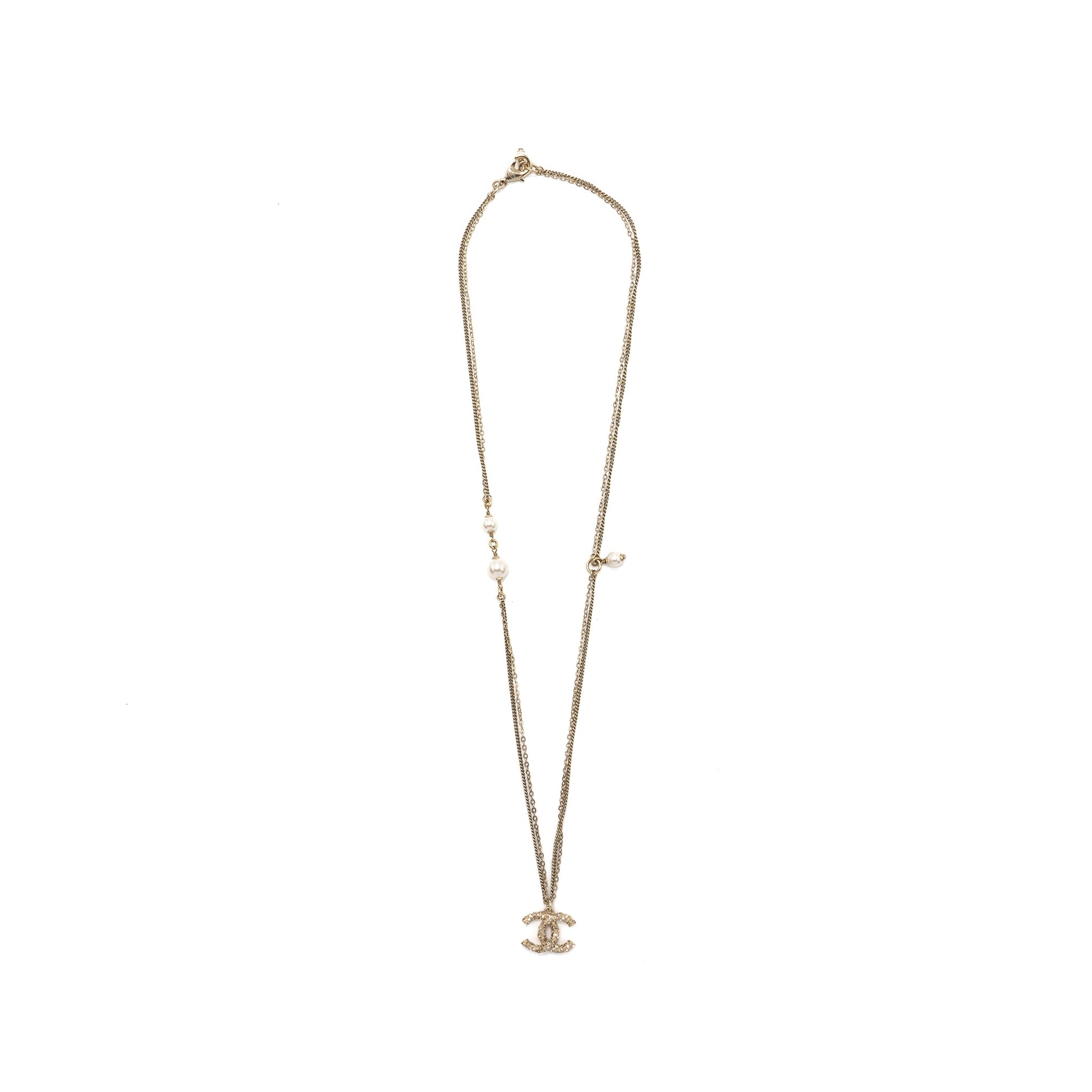 Chanel small CC logo and pearl necklace light gold tone
