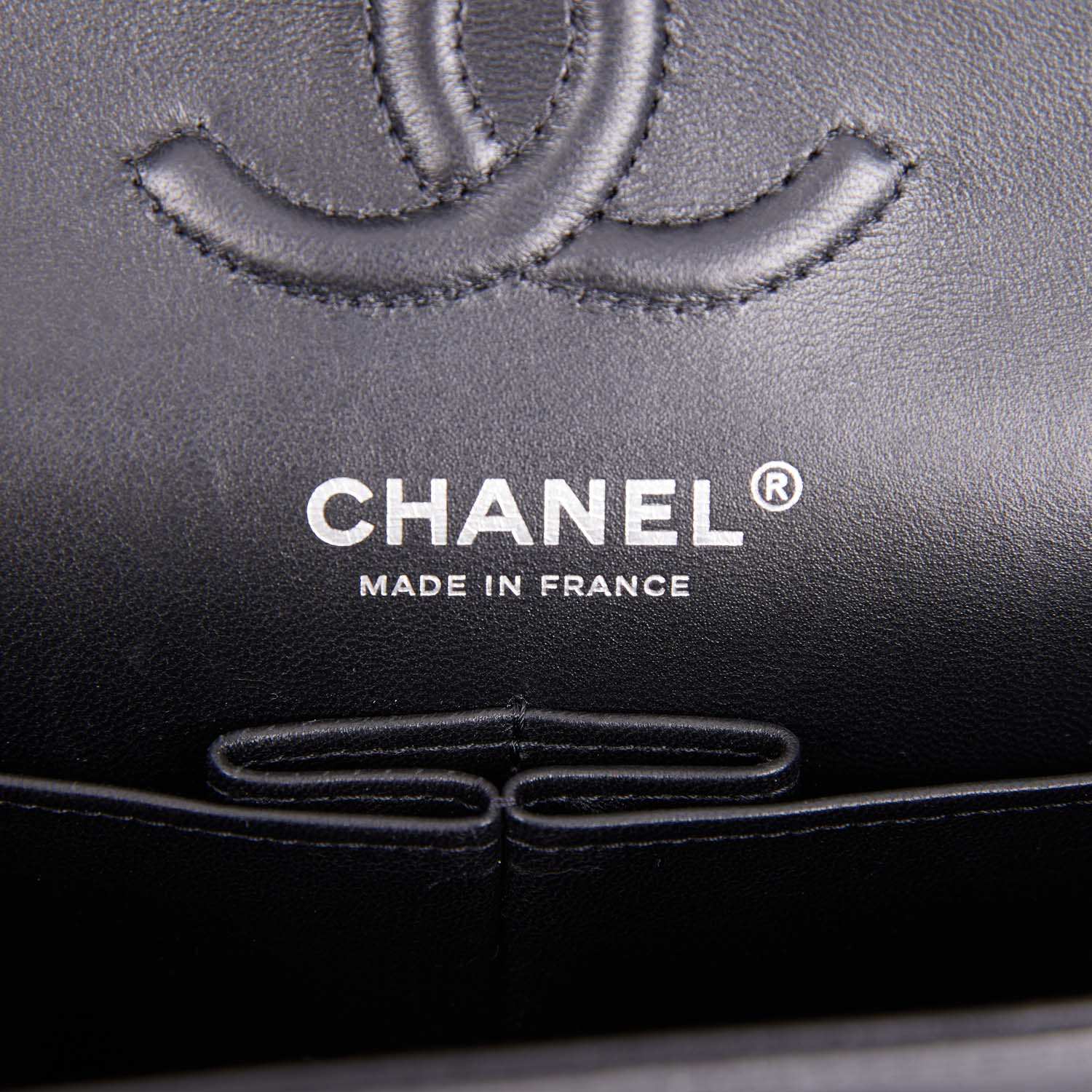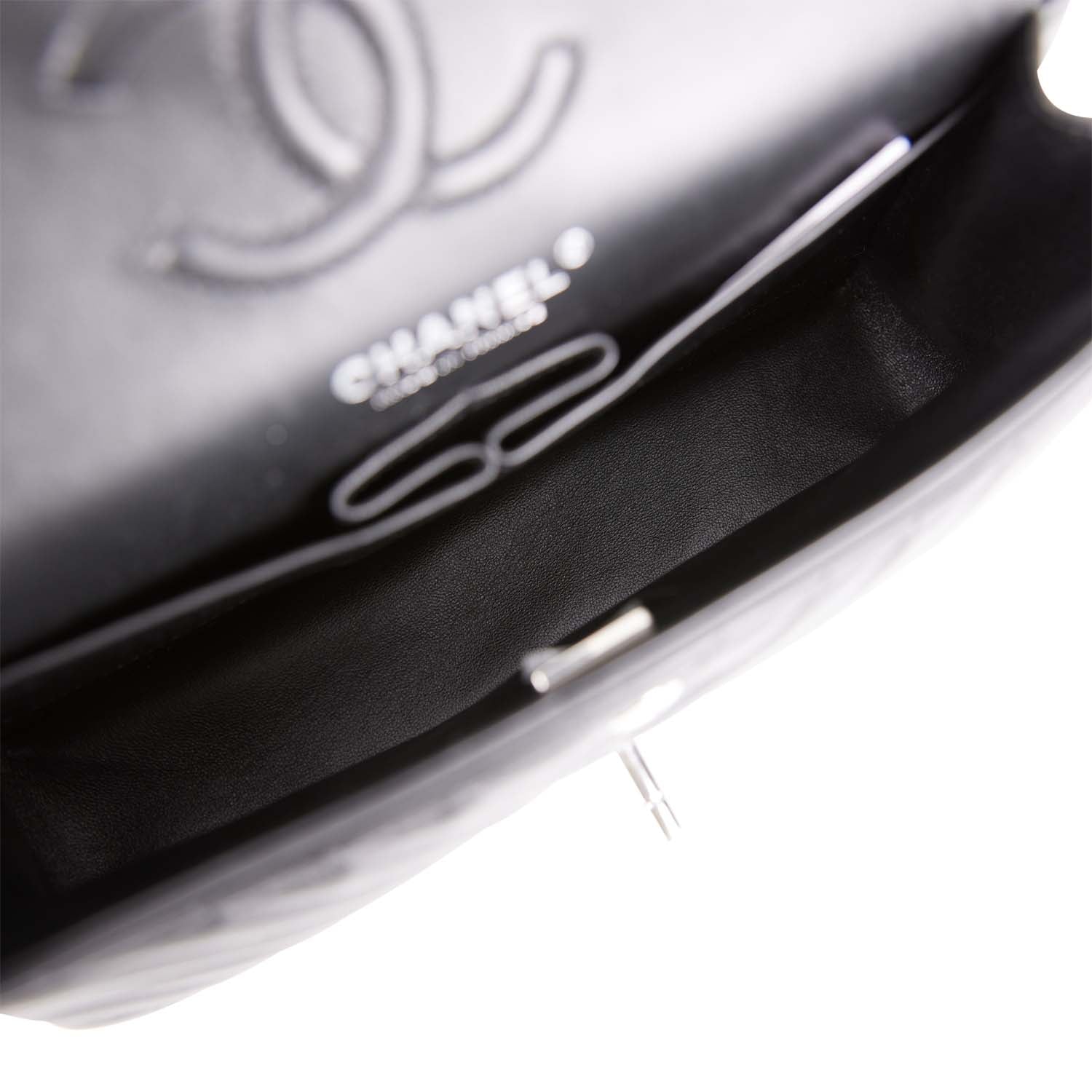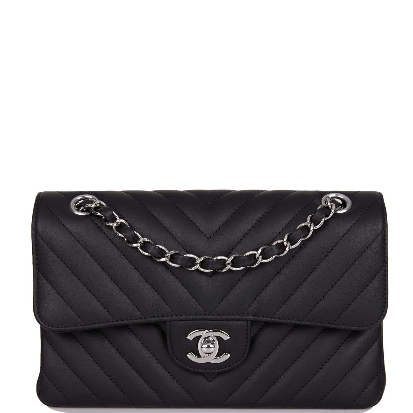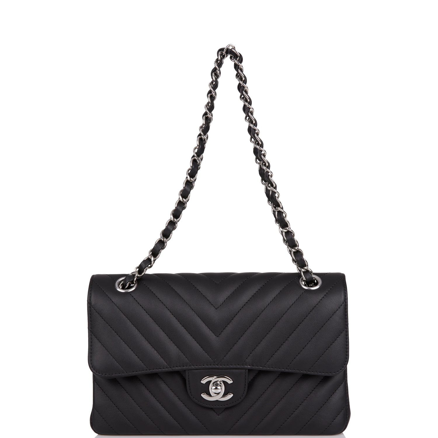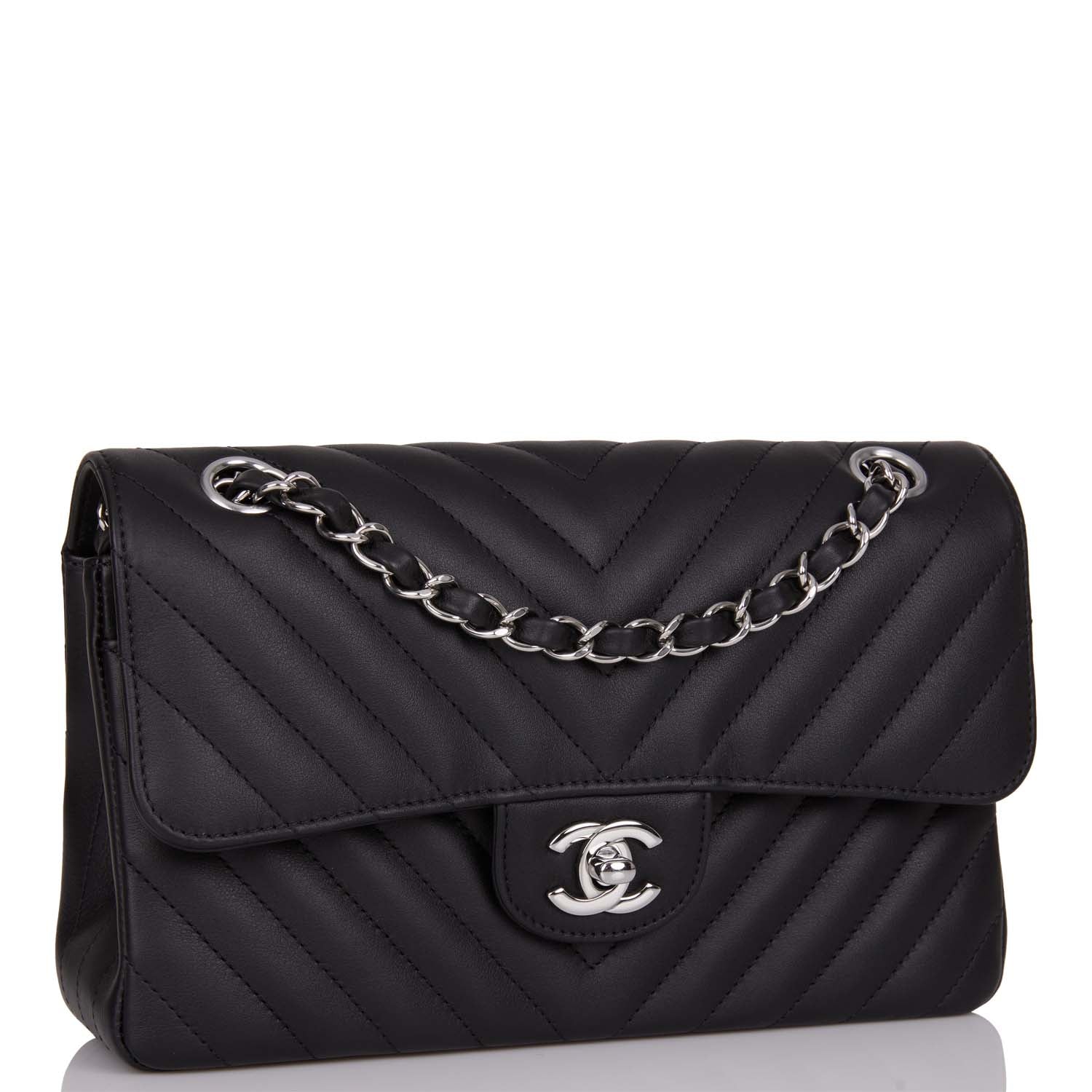 Chanel Small Chevron Classic Double Flap Black Calfskin Silver Hardware