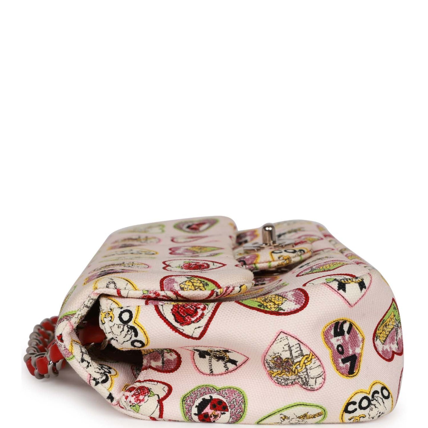 Chanel Small Classic Coco Heart Motif Flap Bag Multicolor Canvas Silver Hardware