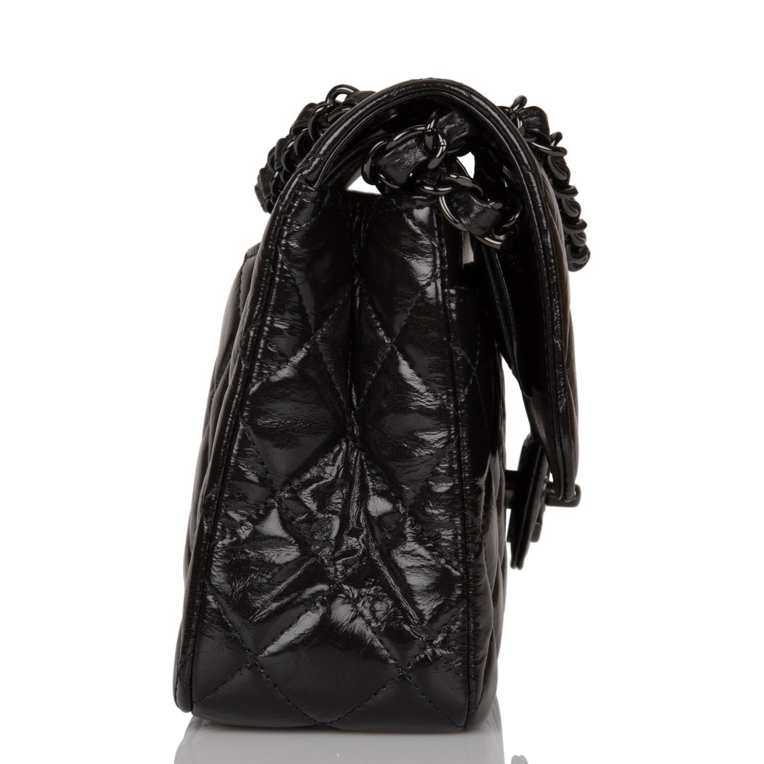 Chanel Small Classic Double Flap Shiny SO Black Crumpled Calfskin Black Hardware