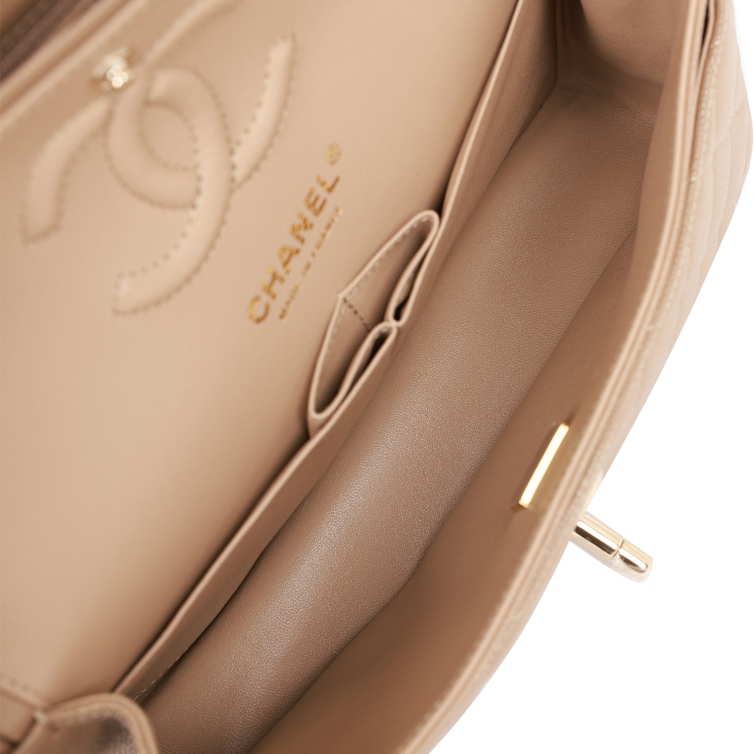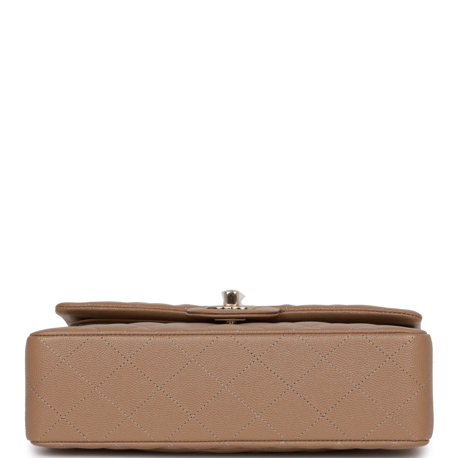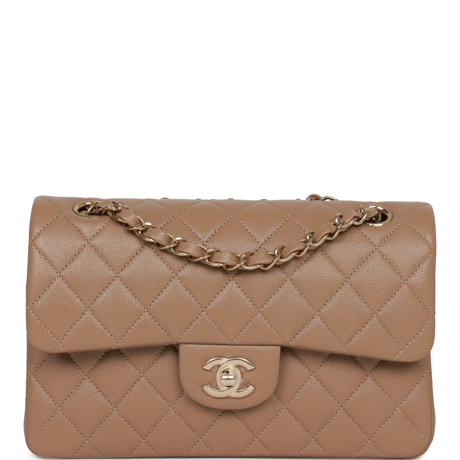 Chanel Small Classic Double Flap Dark Beige Caviar Light Gold Hardware