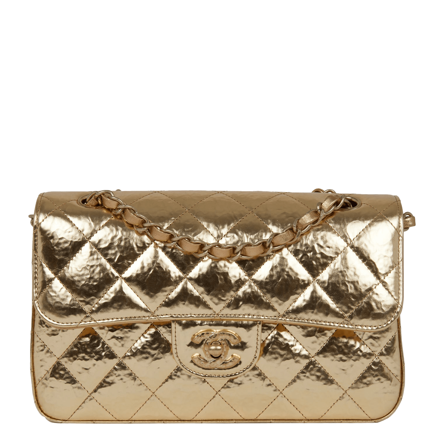 Chanel Small Classic Double Flap Hammered Gold Metallic Calfskin Gold Hardware