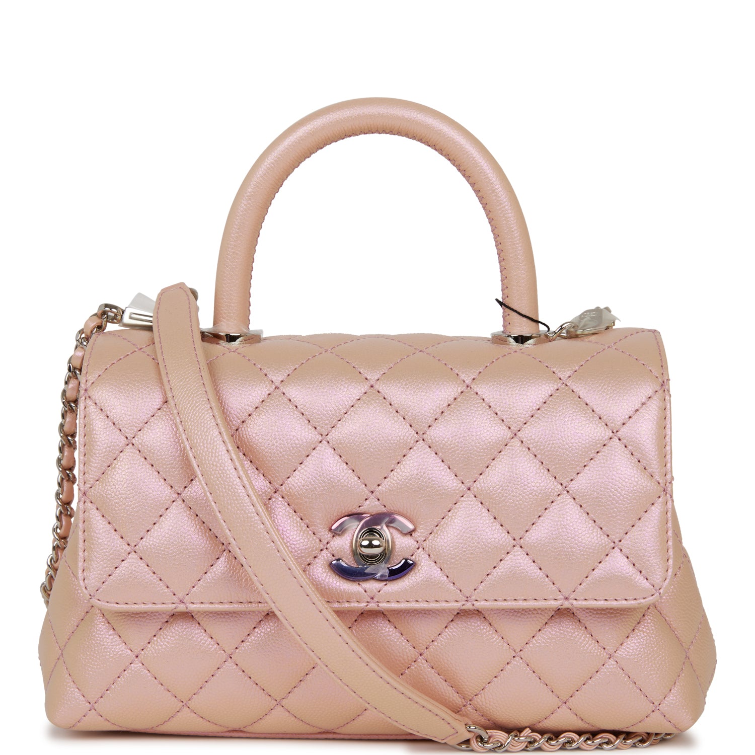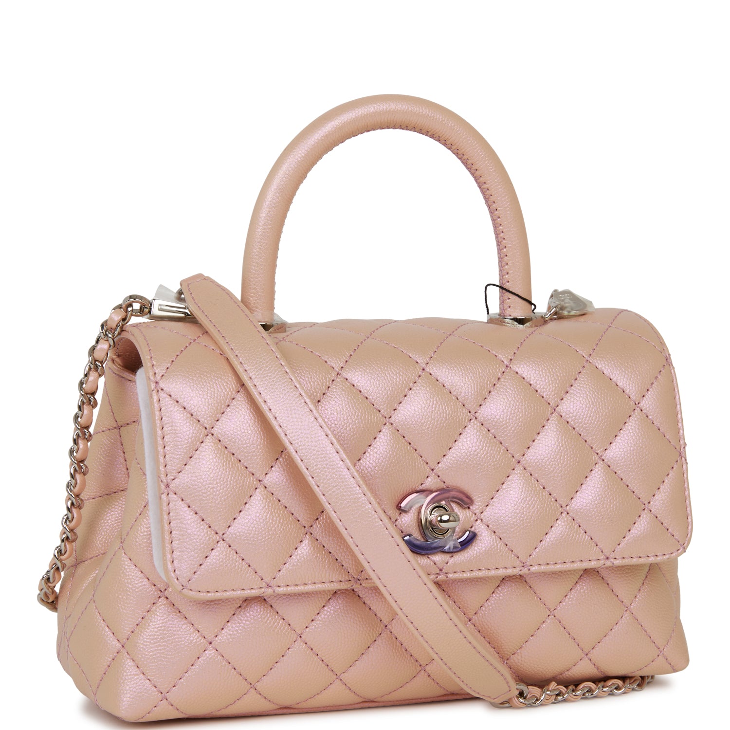 Chanel Small Coco Handle Flap Bag Pink Iridescent Caviar Silver Hardware