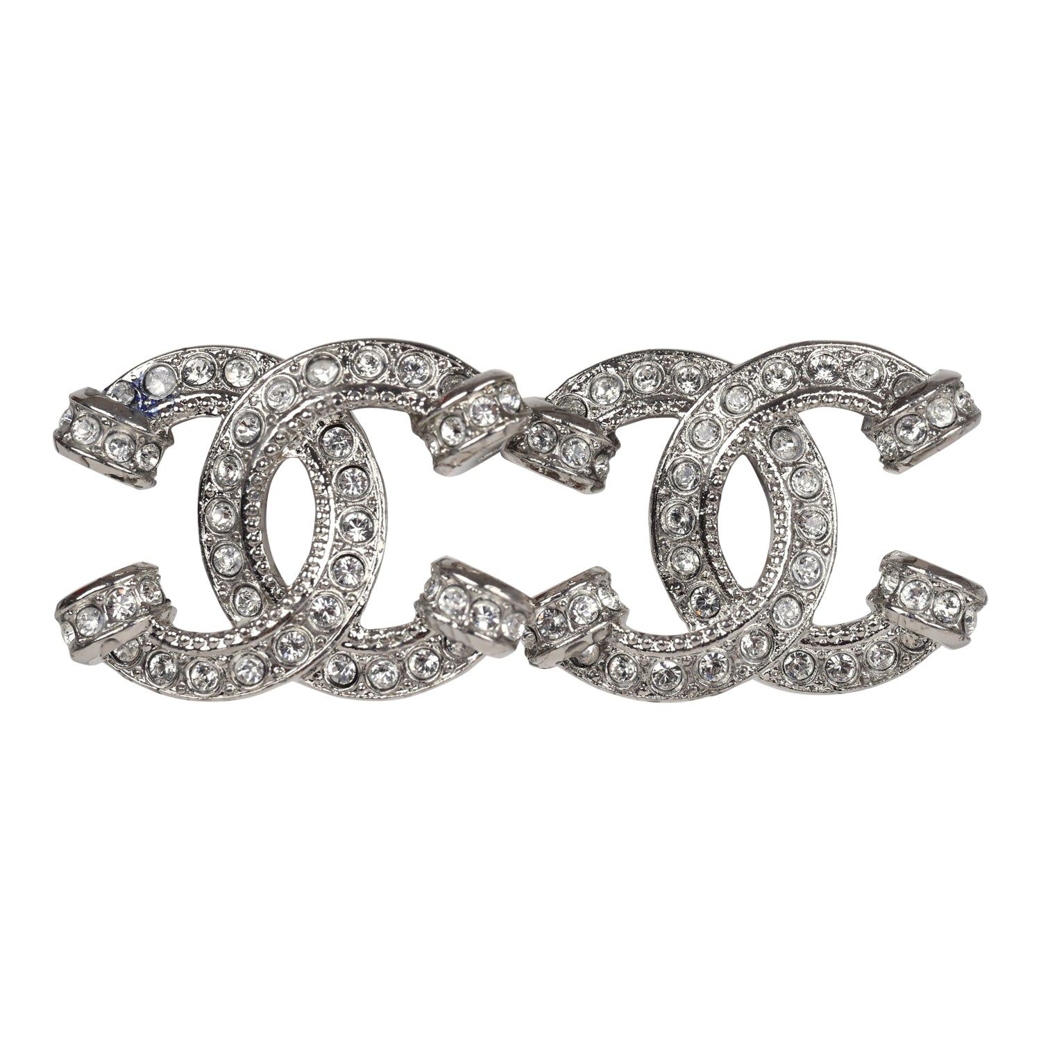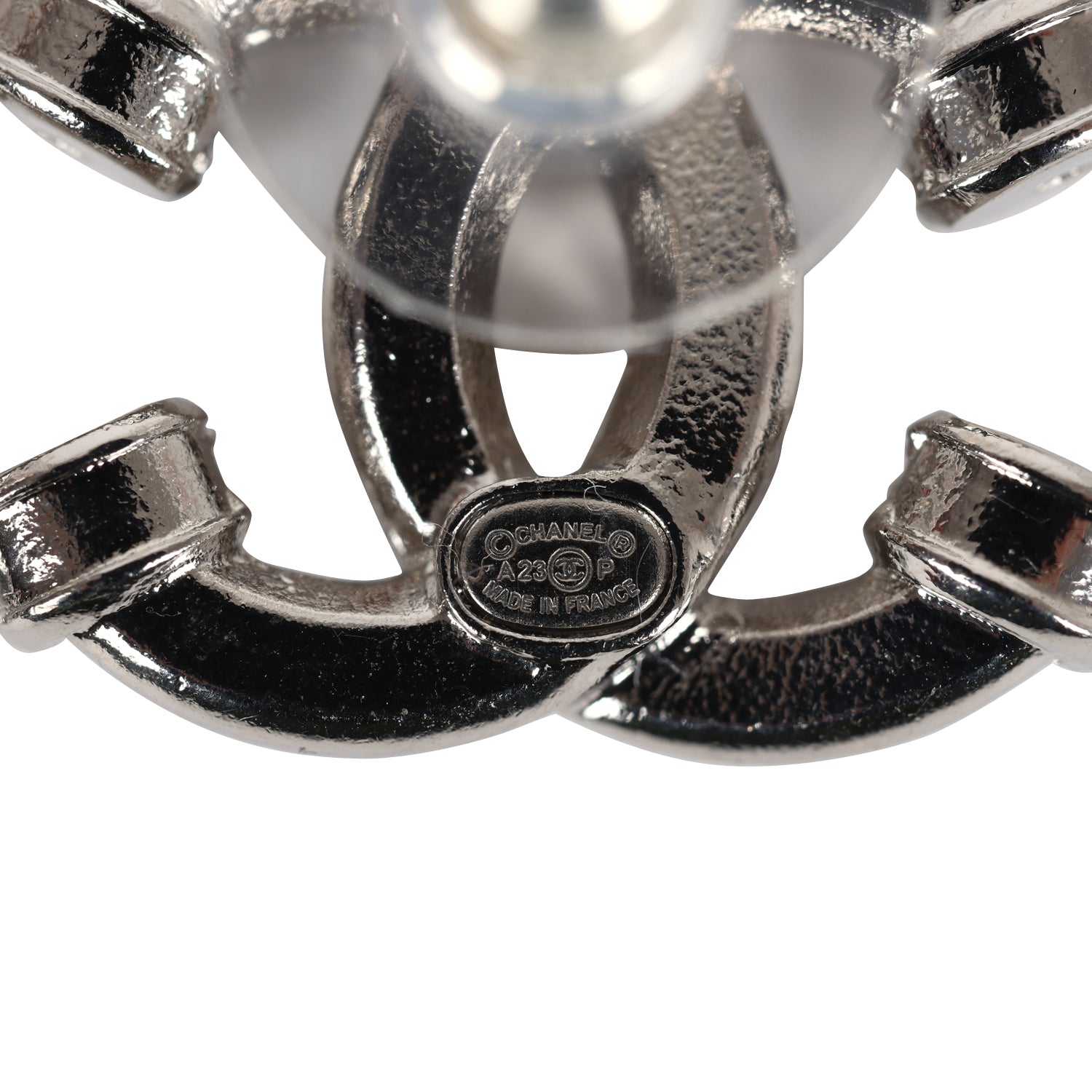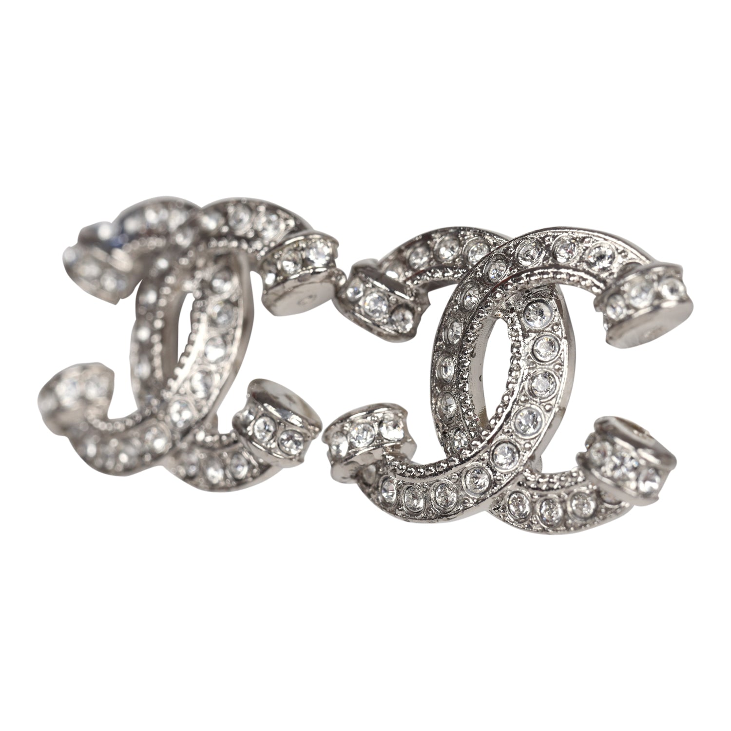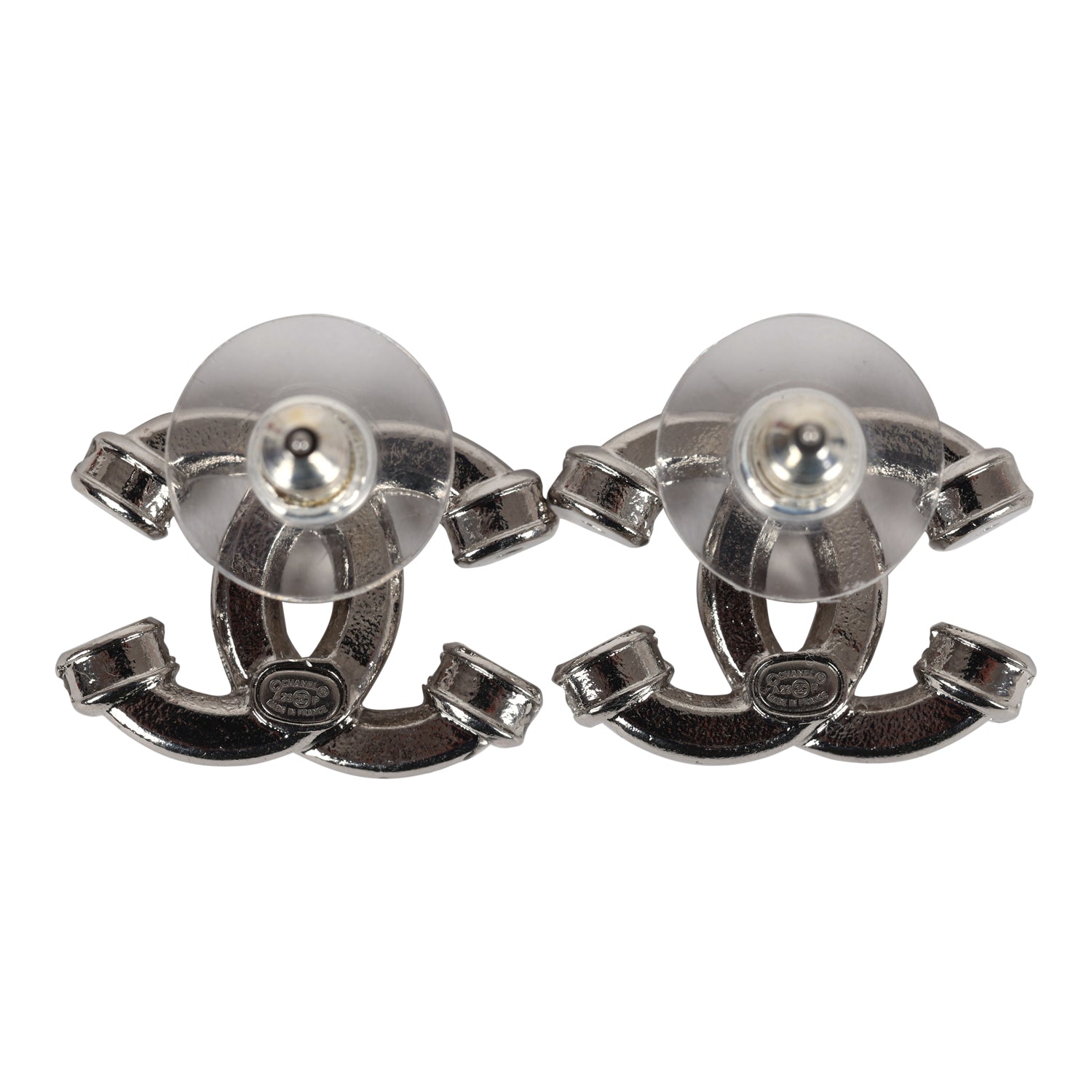 Chanel Small Crystal CC Stud Earrings Silver Hardware